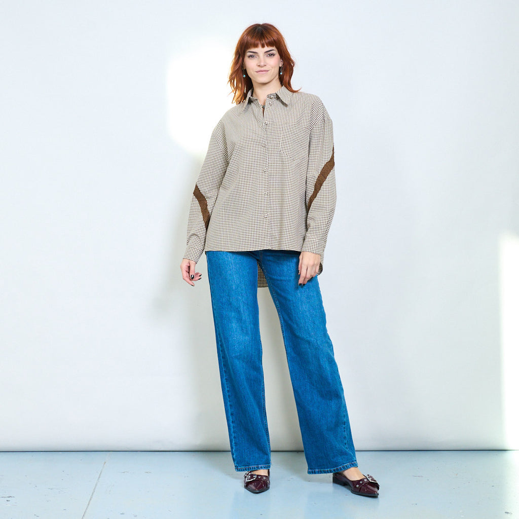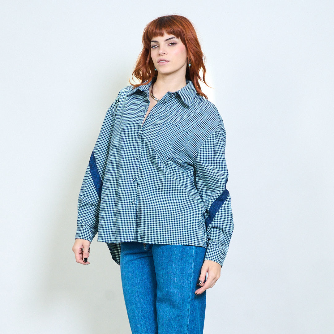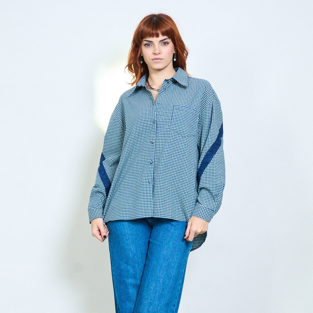 Sprzedam hurtową koszulę zapinaną na guziki z haftowanym wzorem w kratkę „Love”.