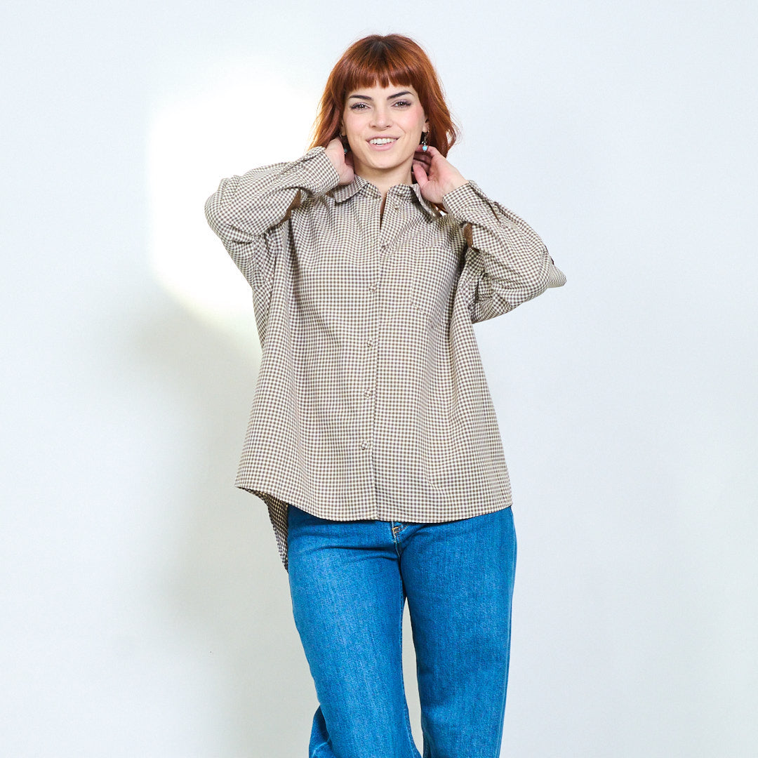 • Klasyczny kołnierzyk i zapięcie na guziki z przodu zapewniają ponadczasową sylwetkę