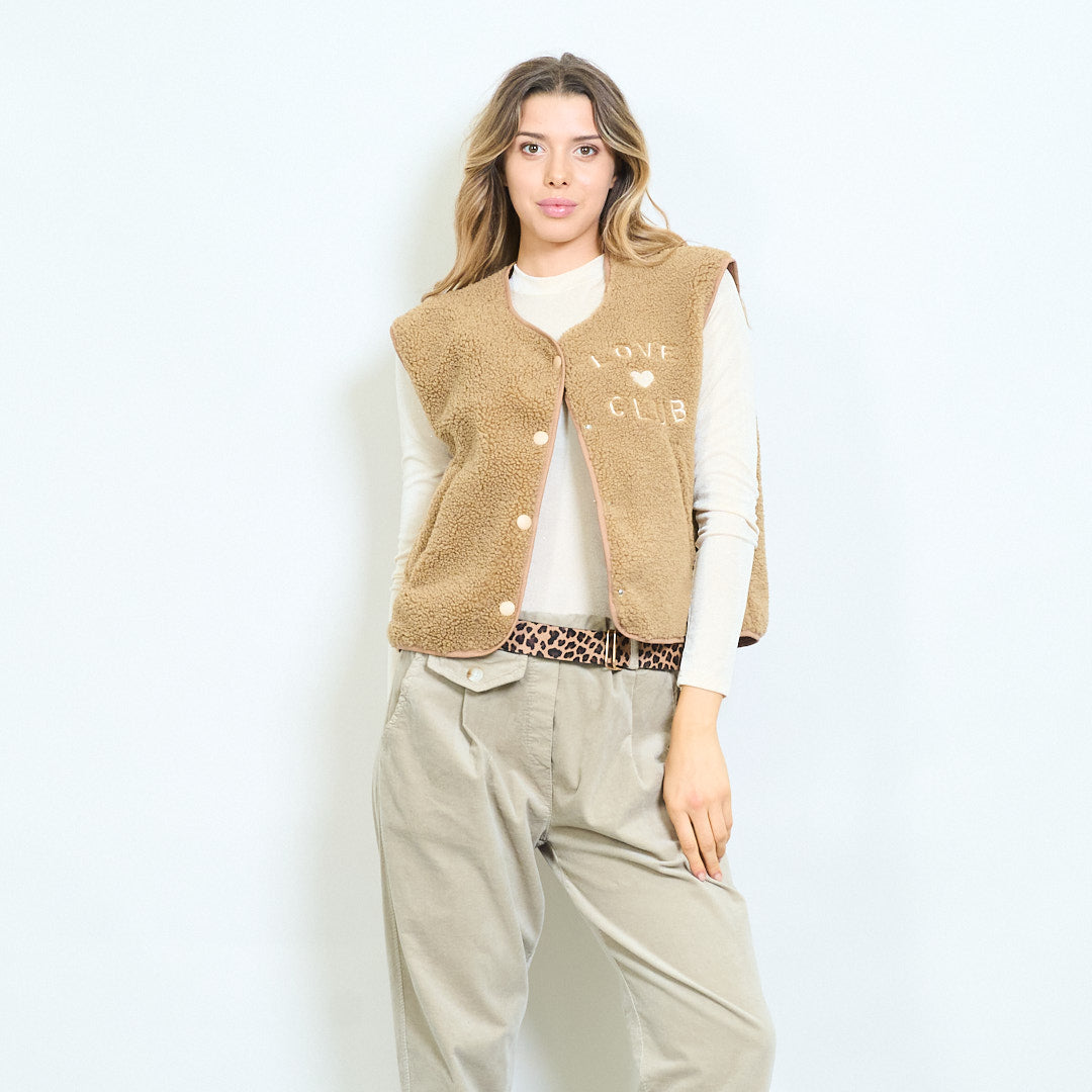 - Wygodna kamizelka bez rękawów z miękką teksturą polaru zapewniającą ciepło i wygodę