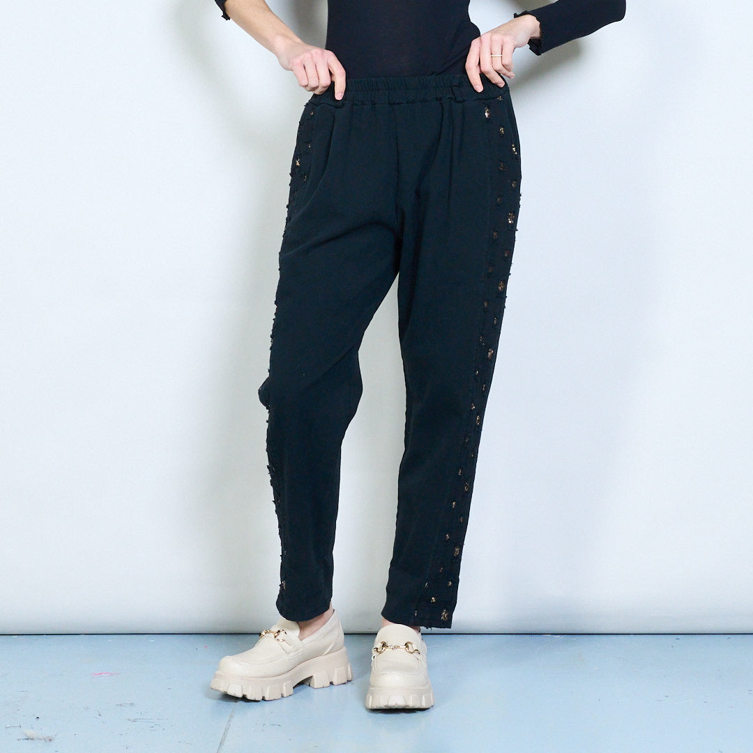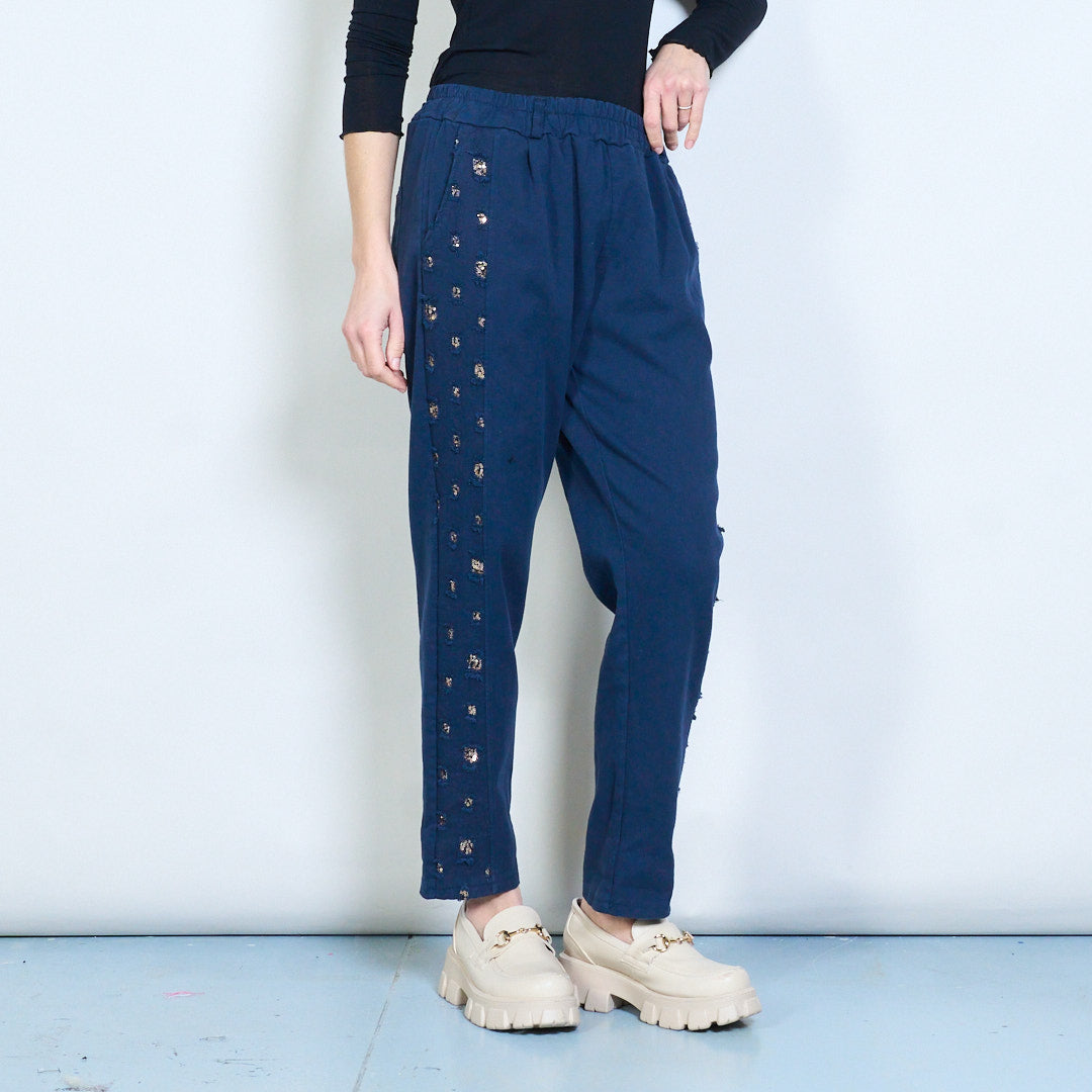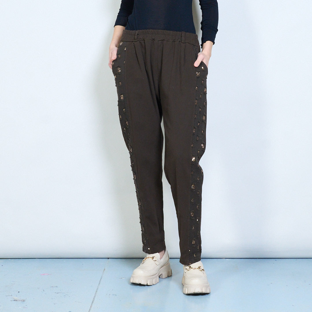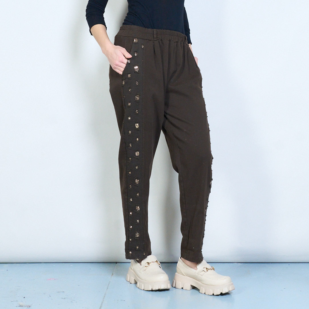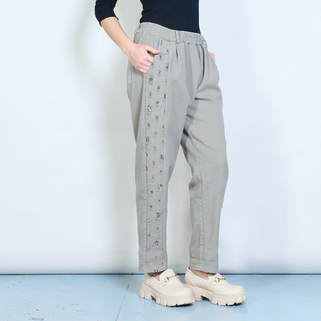Hurtownia luźnych spodni z cekinami i panelami bocznymi, z elastyczną talią