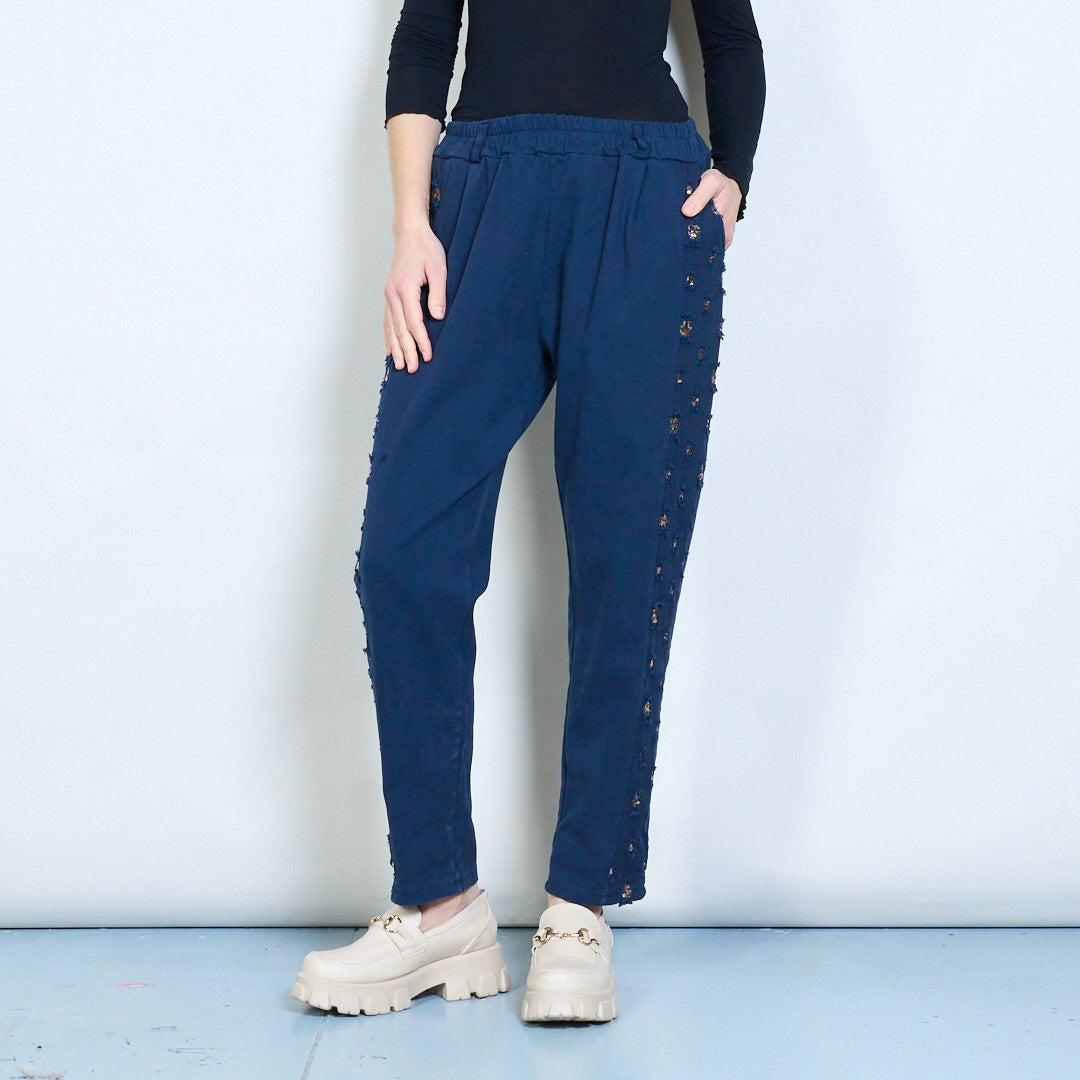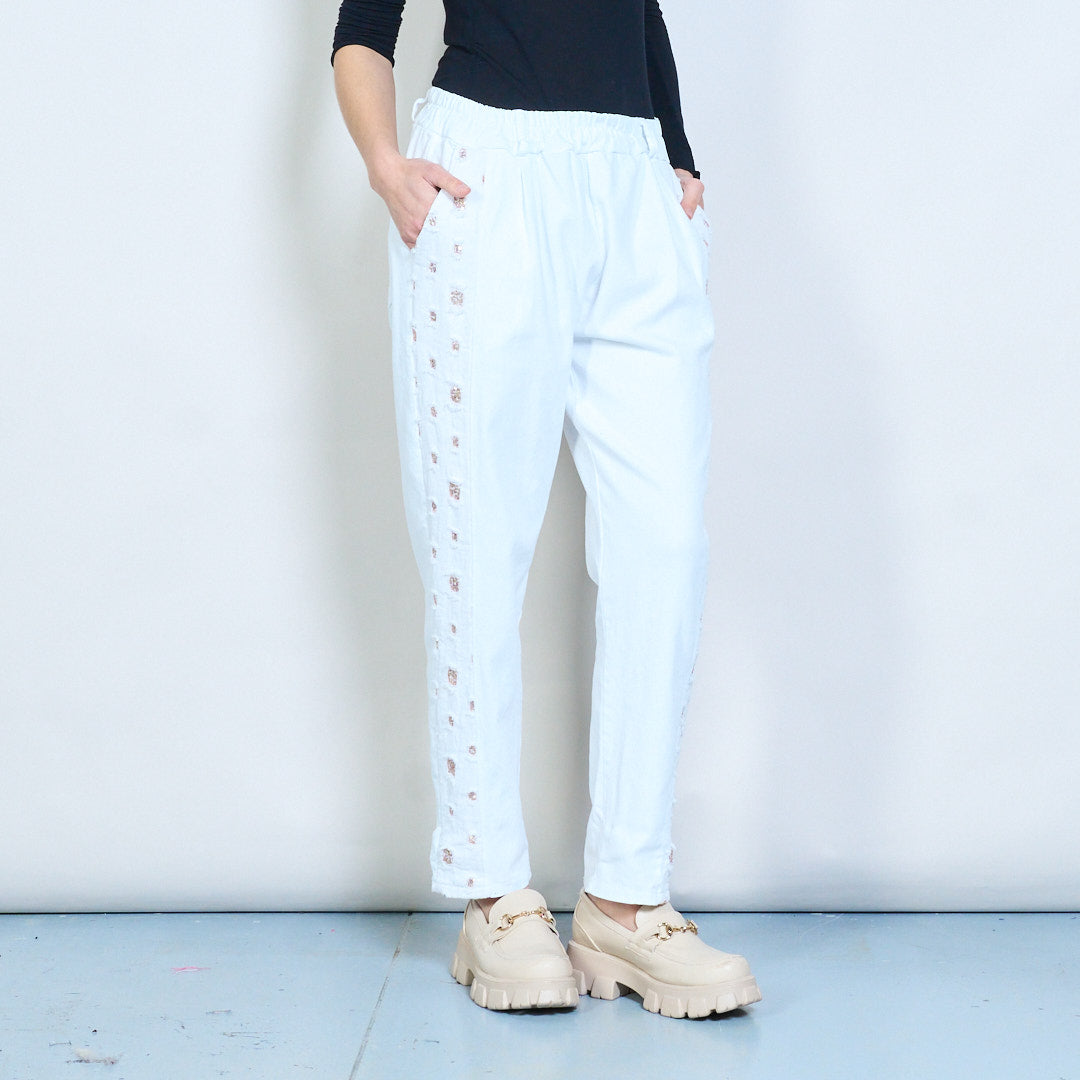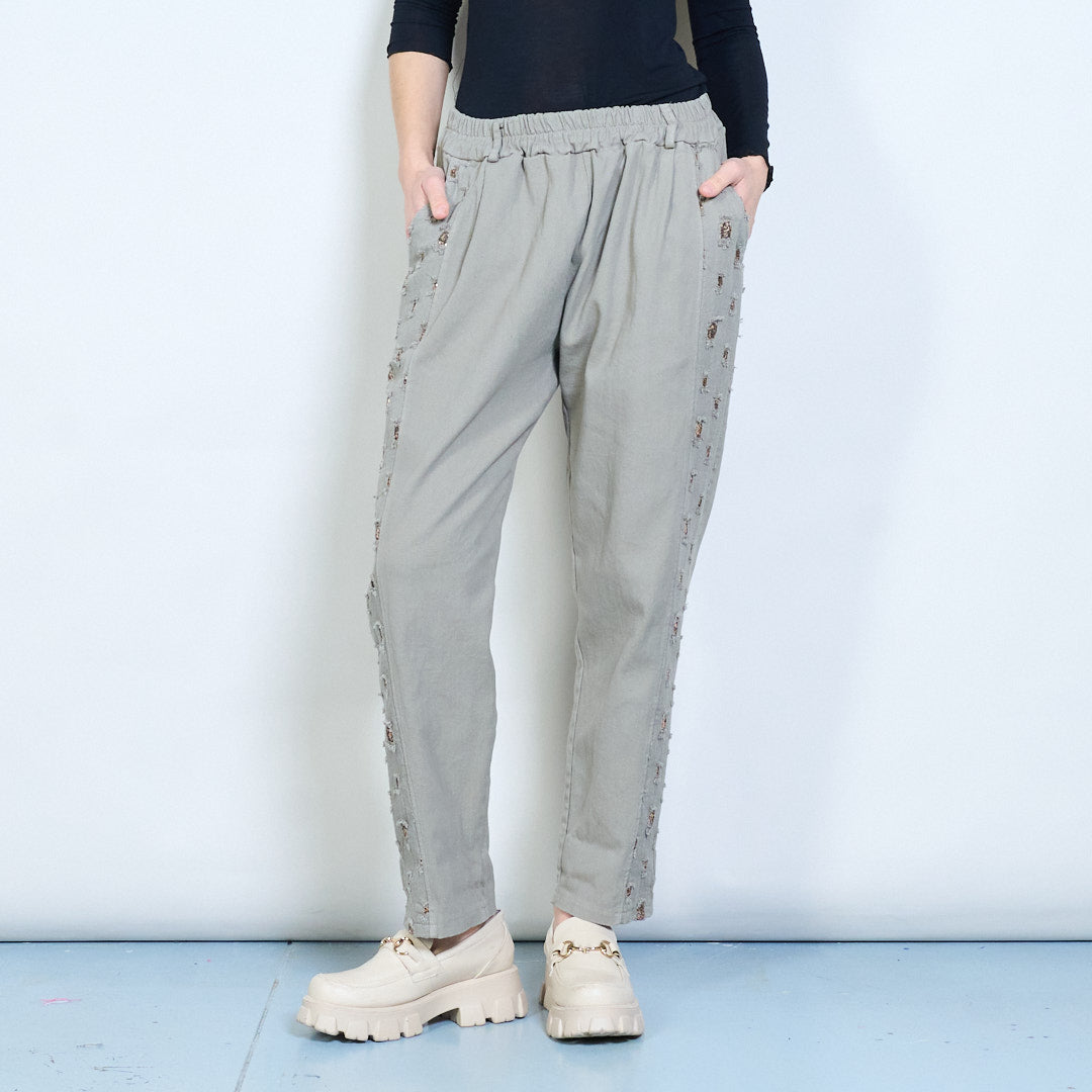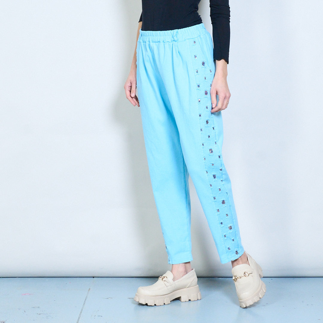 Hurtownia luźnych spodni z cekinami i panelami bocznymi, z elastyczną talią
