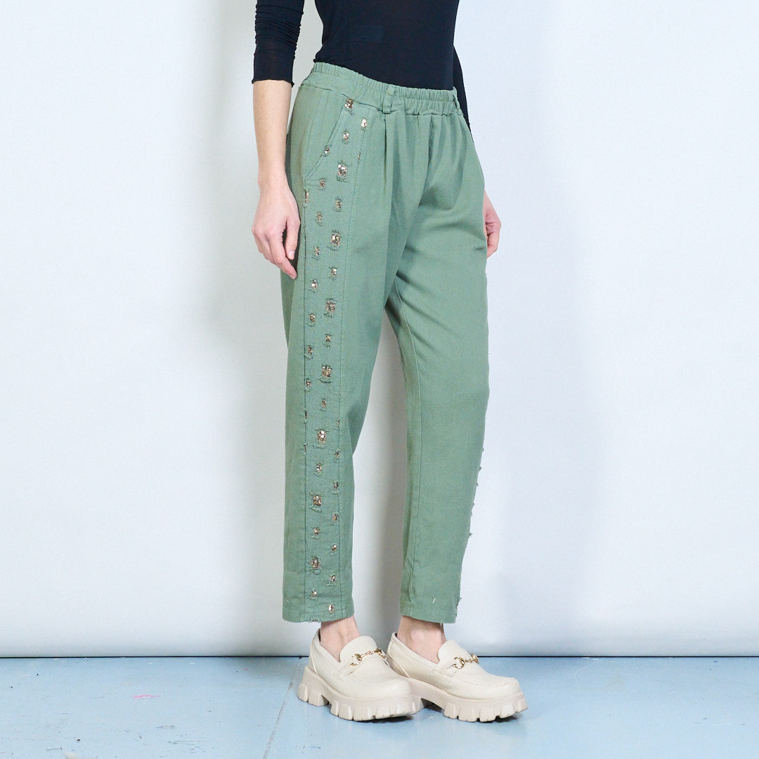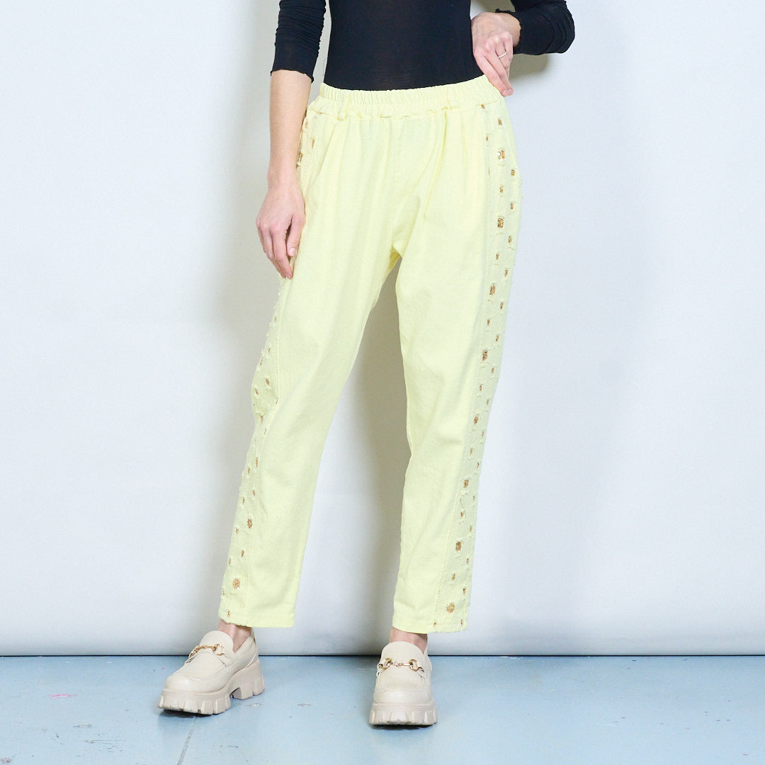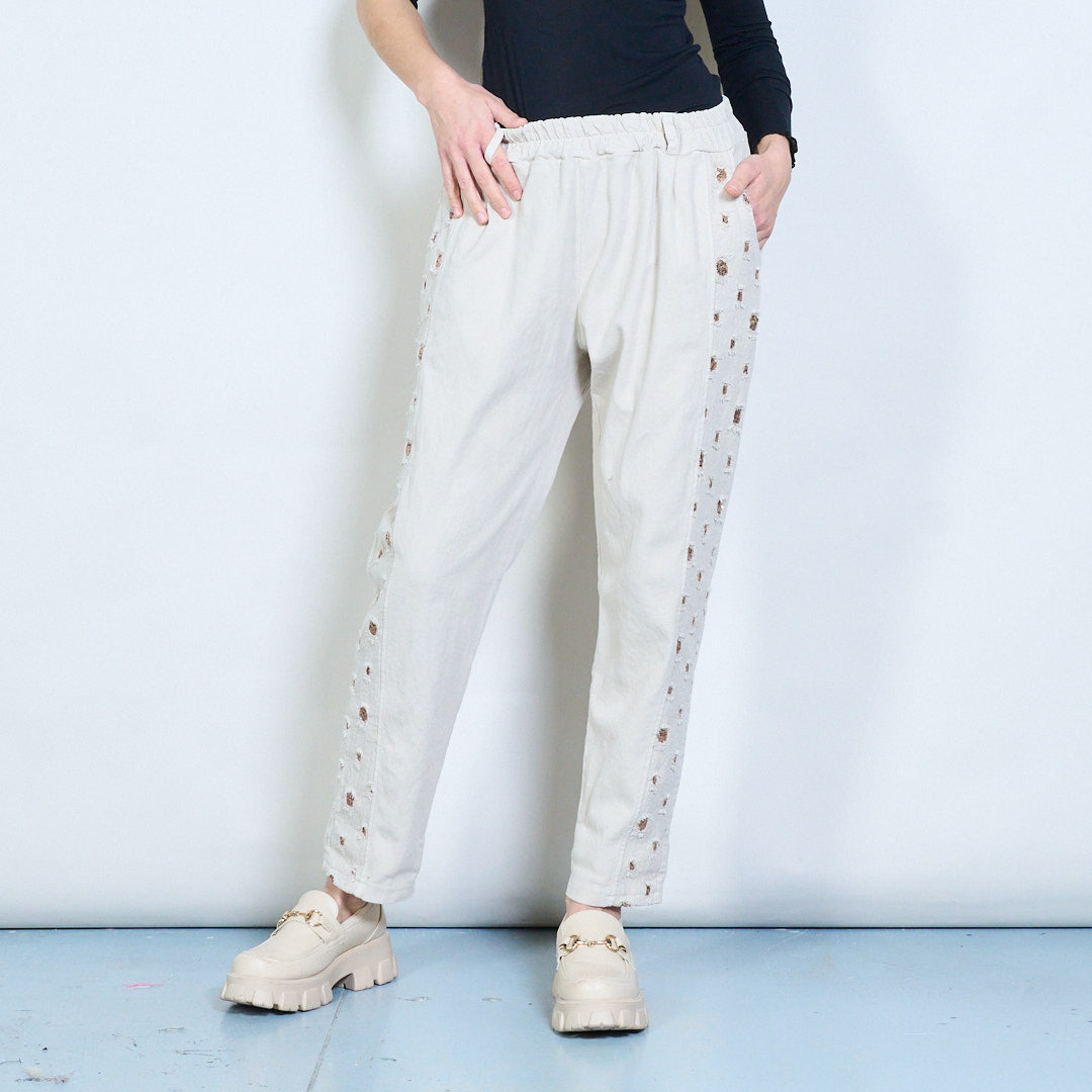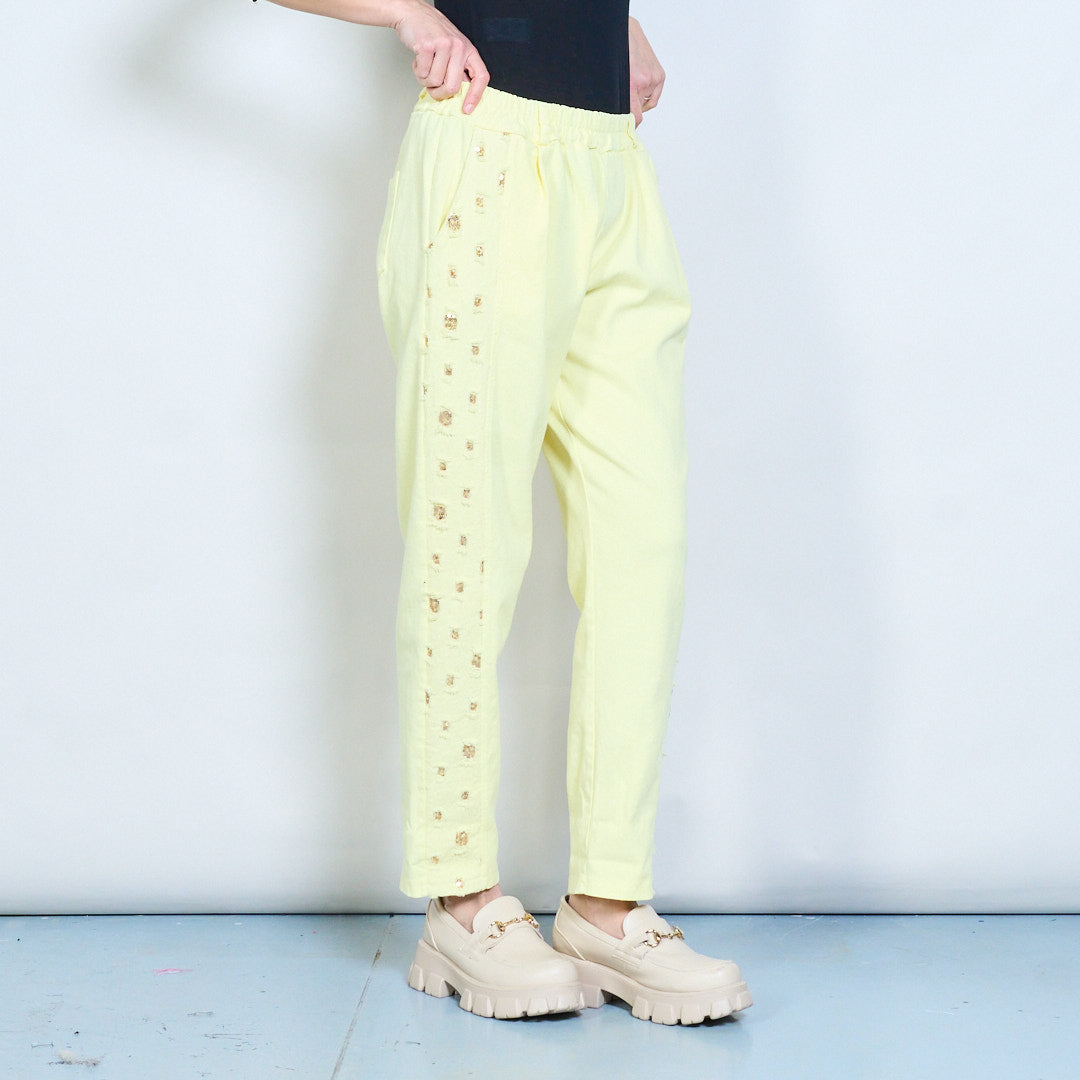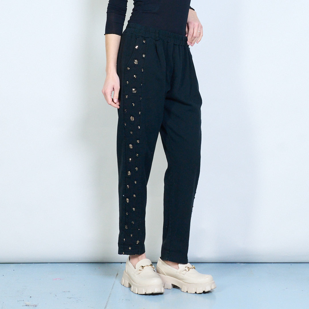 Hurtownia luźnych spodni z cekinami i panelami bocznymi, z elastyczną talią