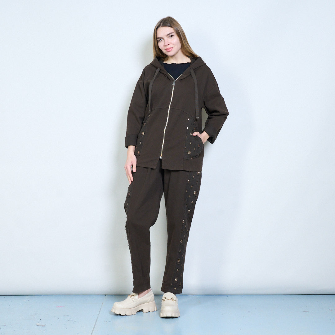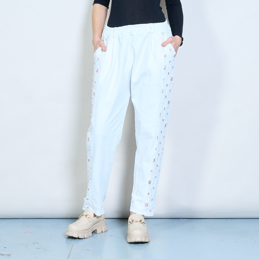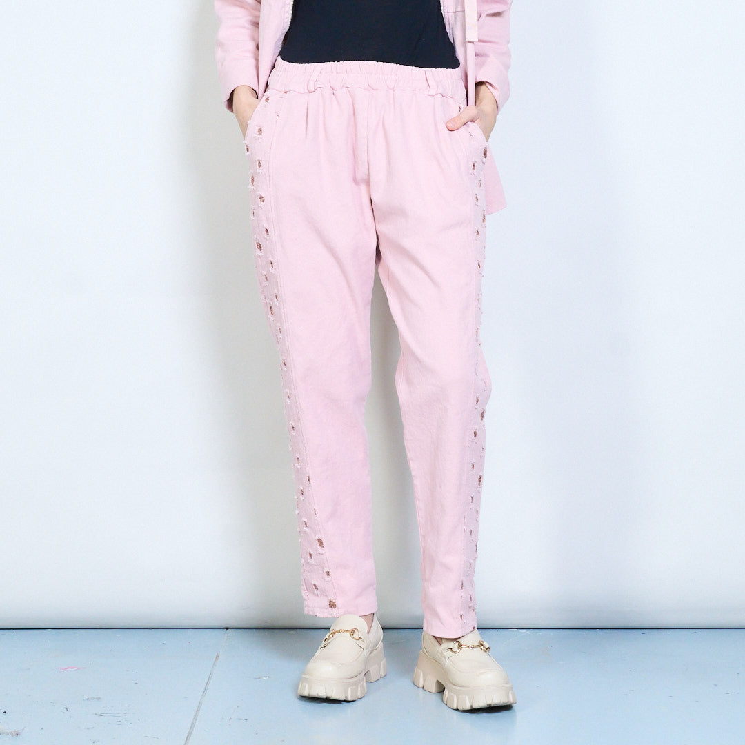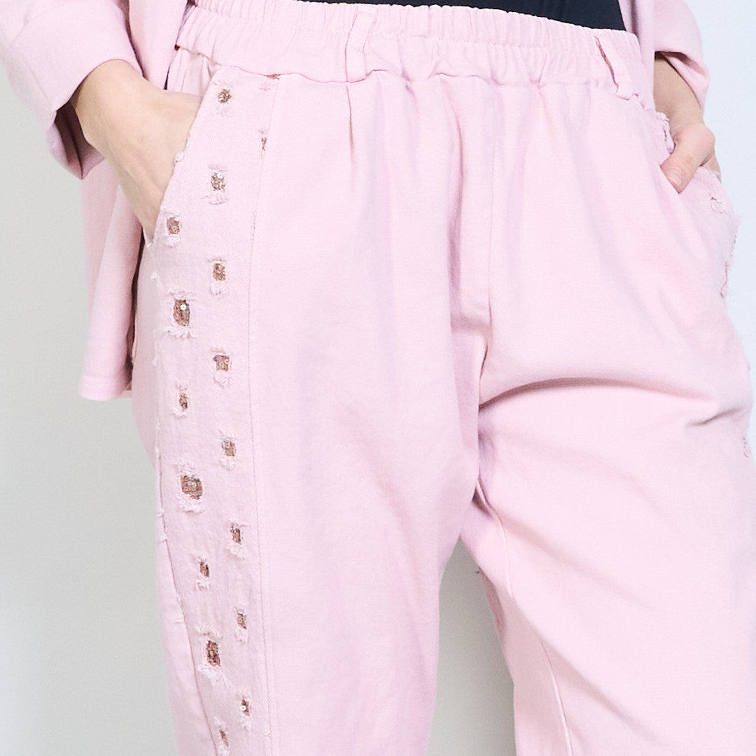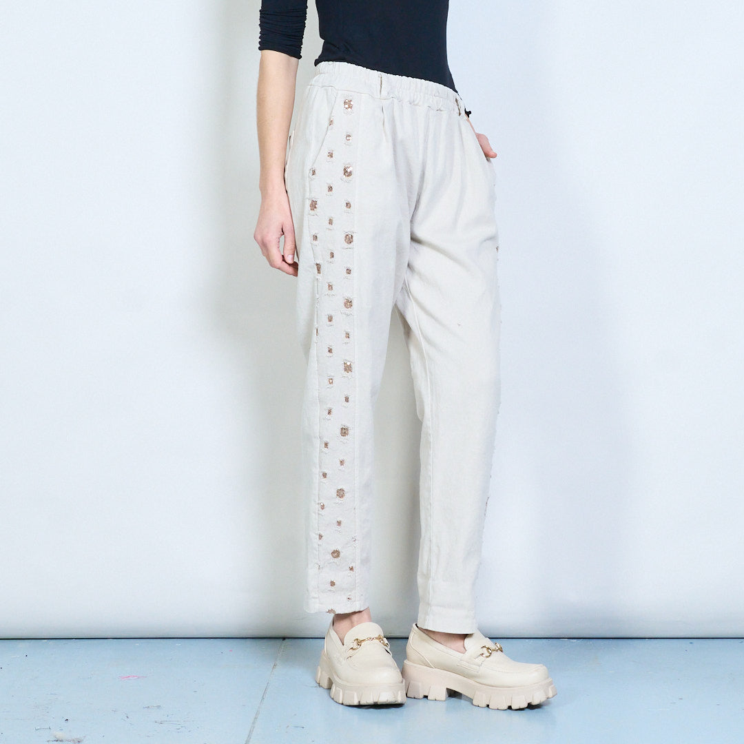 Hurtownia luźnych spodni z cekinami i panelami bocznymi, z elastyczną talią