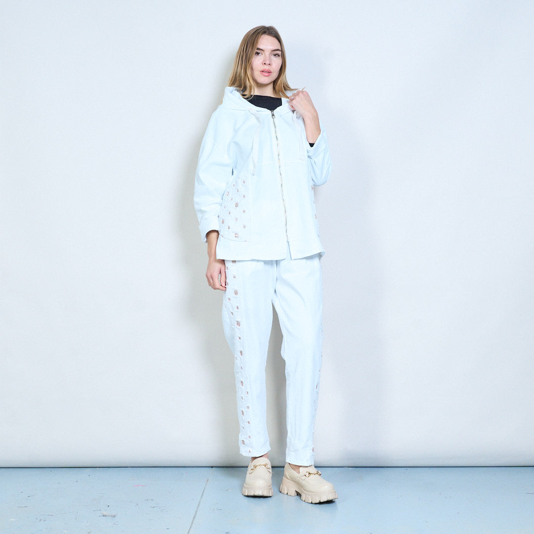 - Prosty kształt nogawek umożliwia swobodne poruszanie się i stylizację