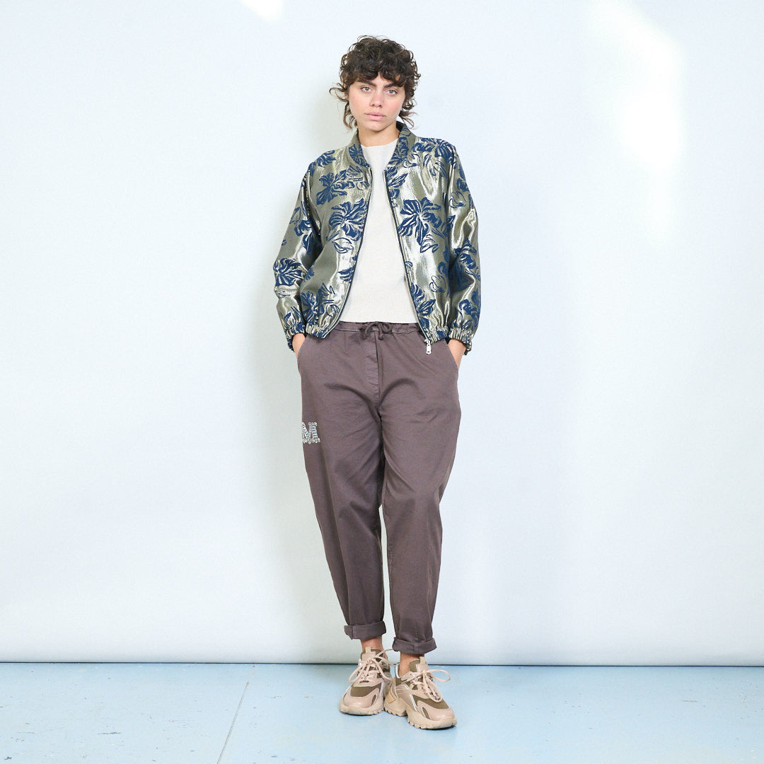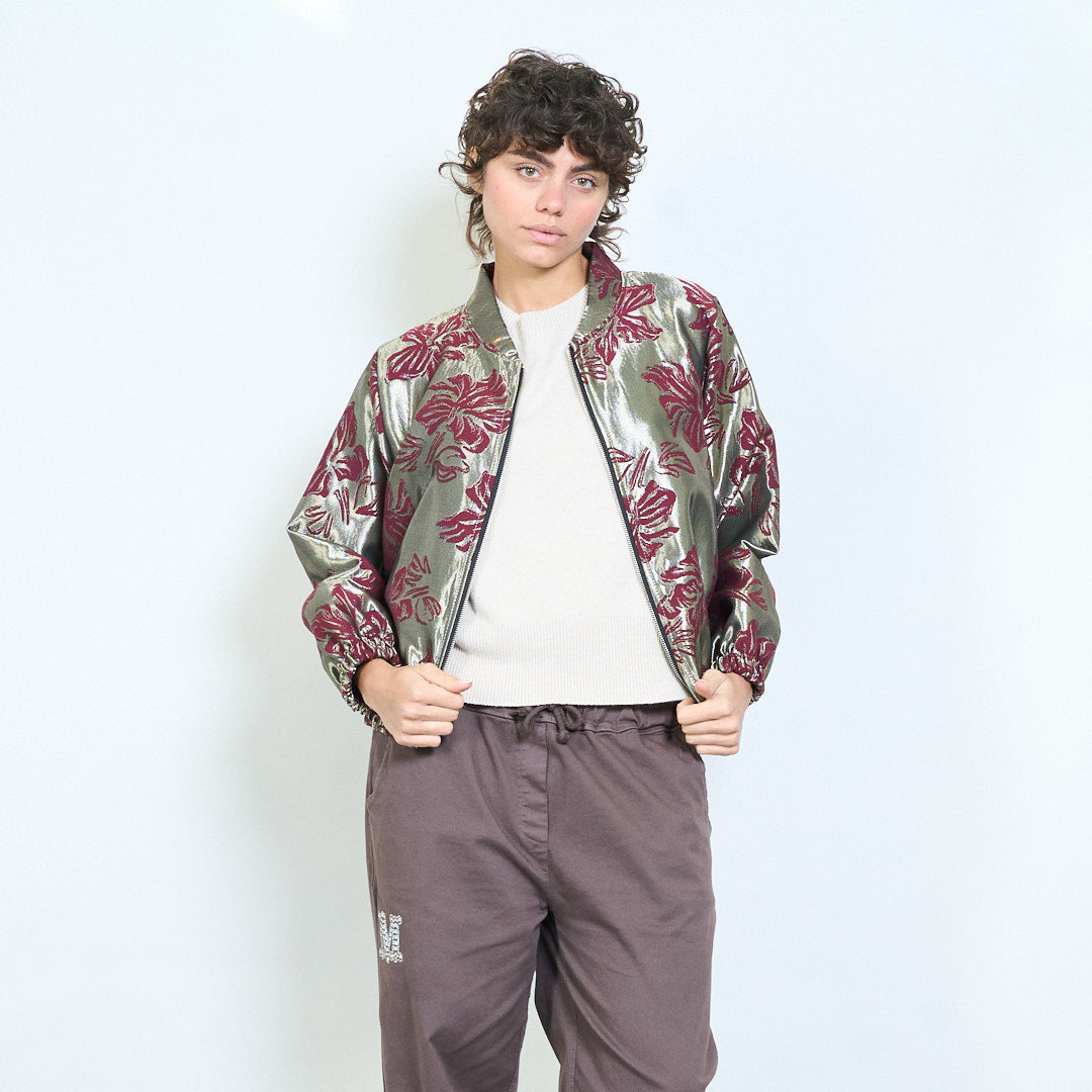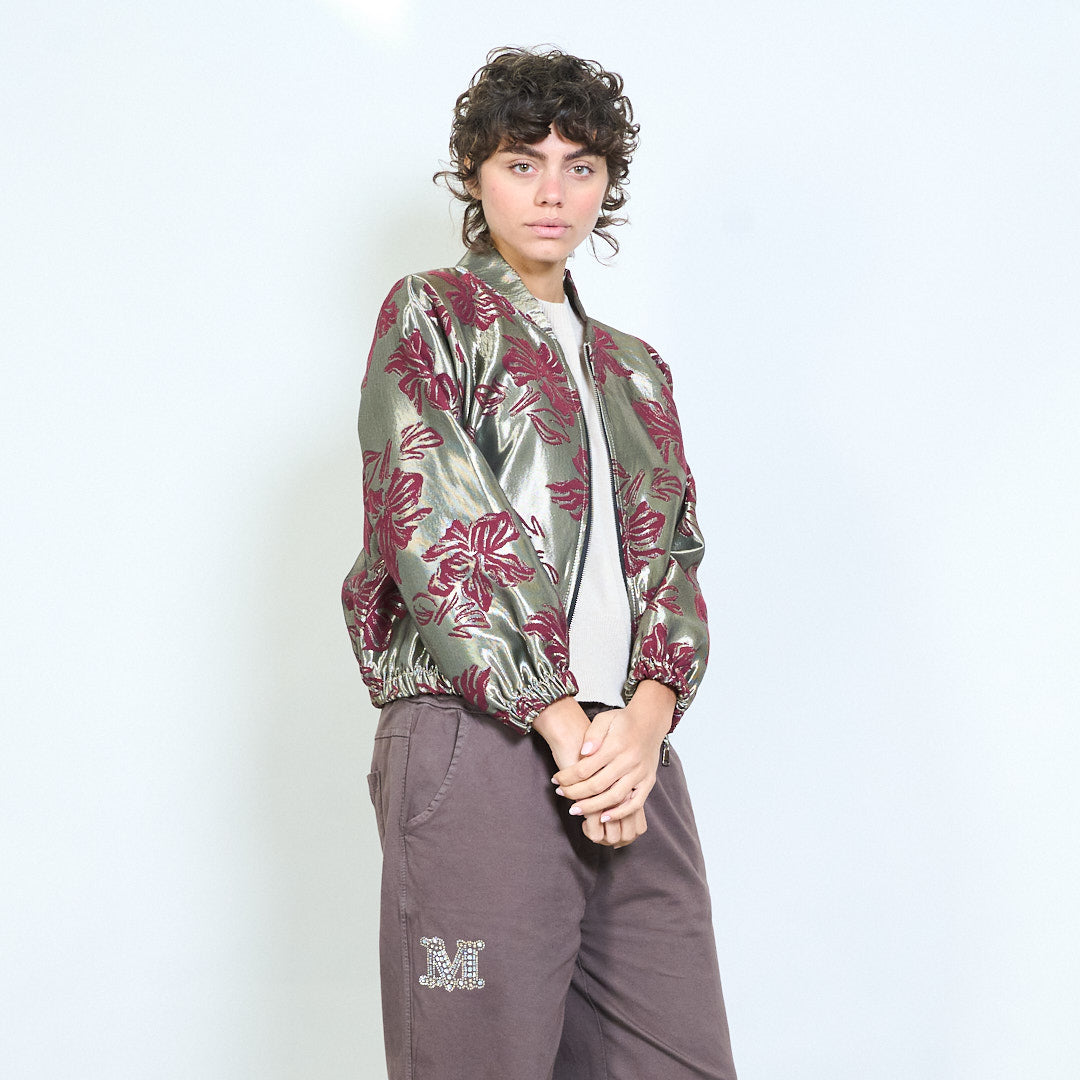 Hurtownia żakardowej kurtki w kwiaty z zamkiem błyskawicznym
