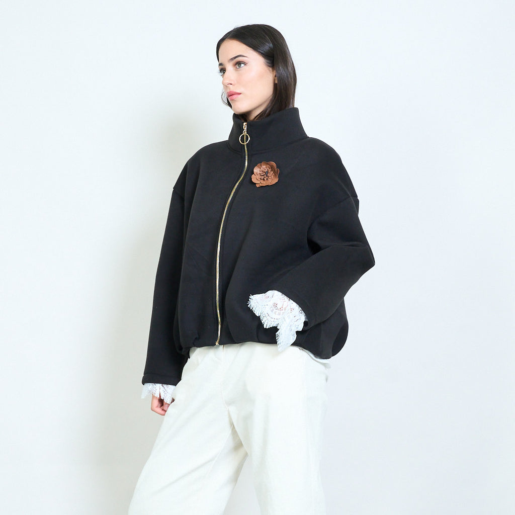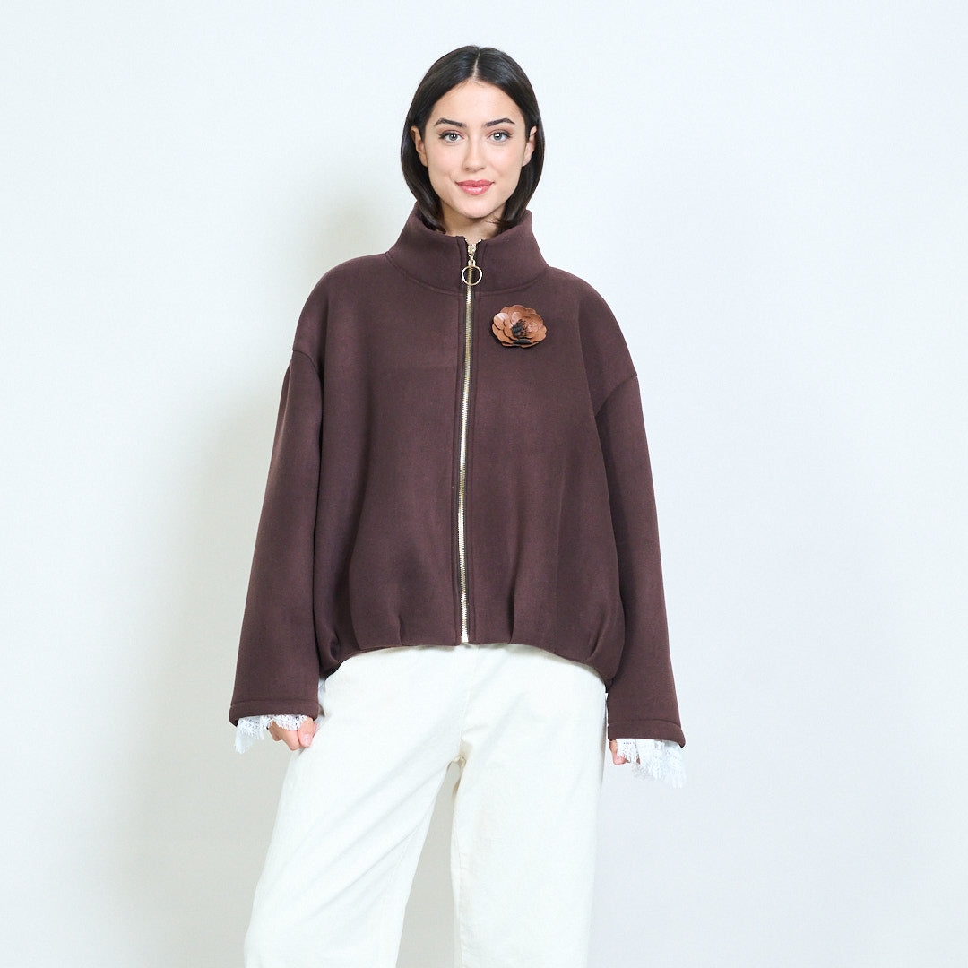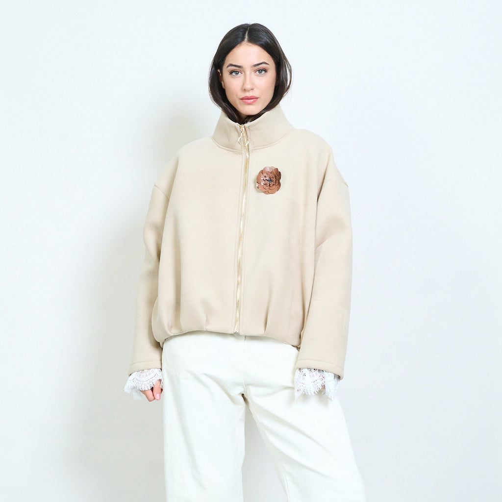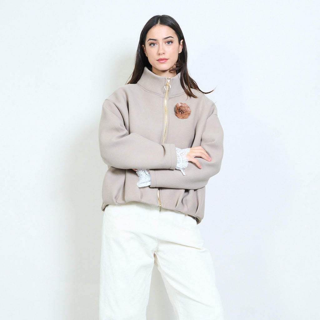 Hurtownia puchowych kurtek zapinanych na zamek z kwiatowym akcentem