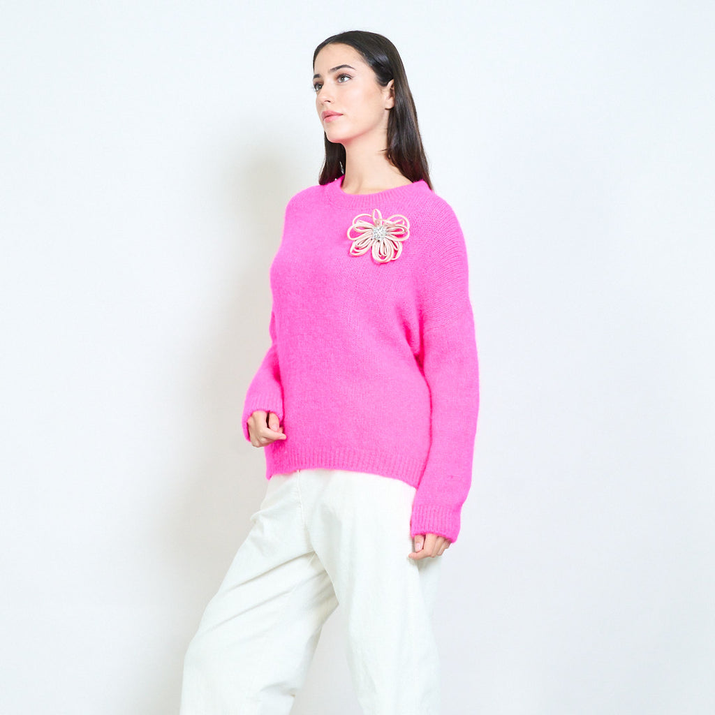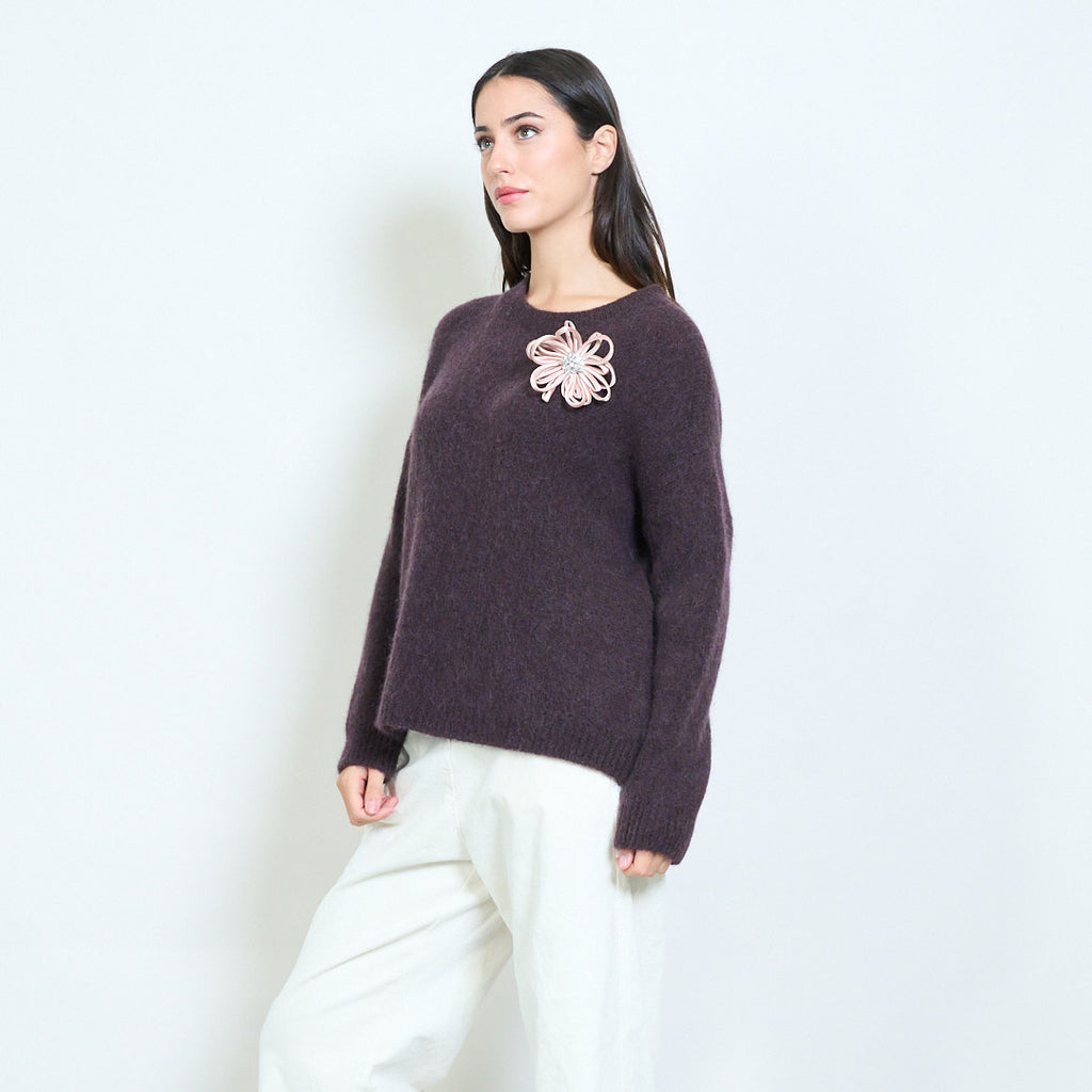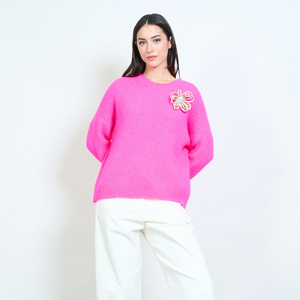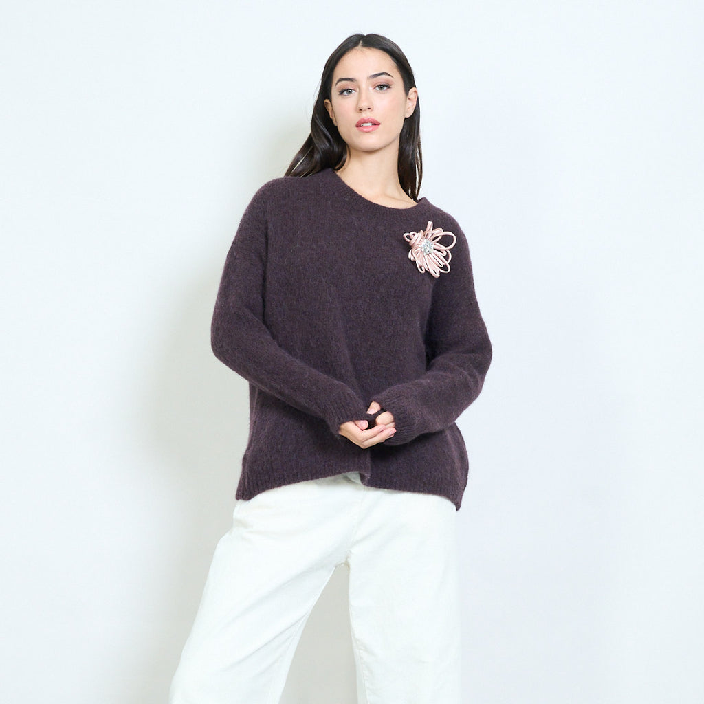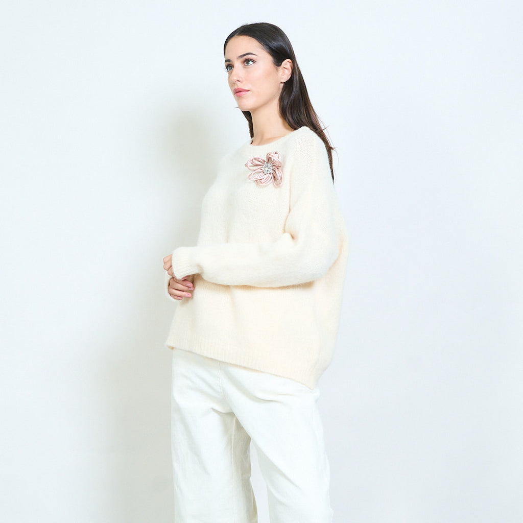 Hurtownia swetra z miękkiej dzianiny w kwiatowe broszki