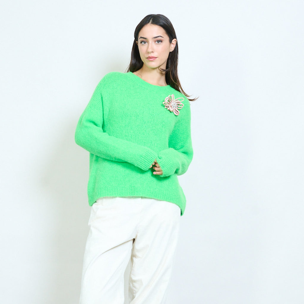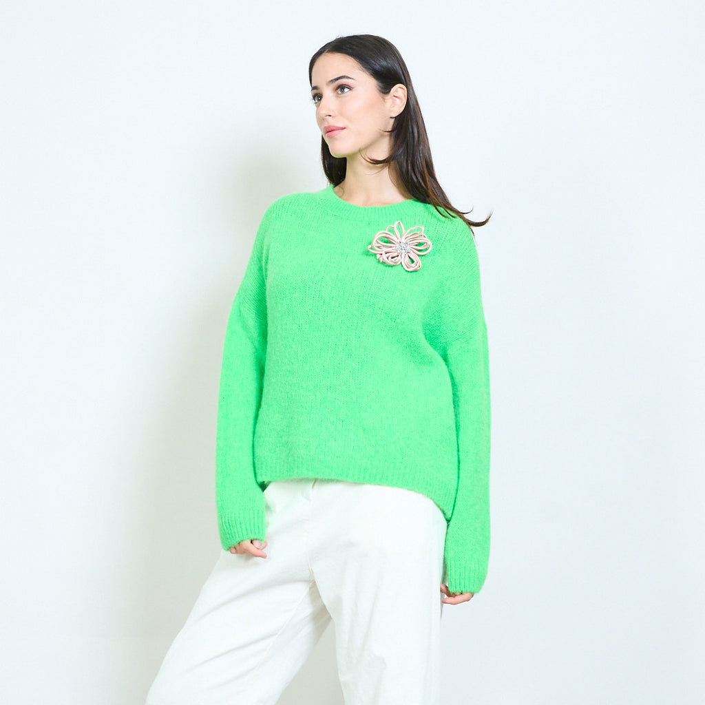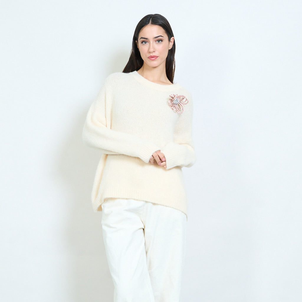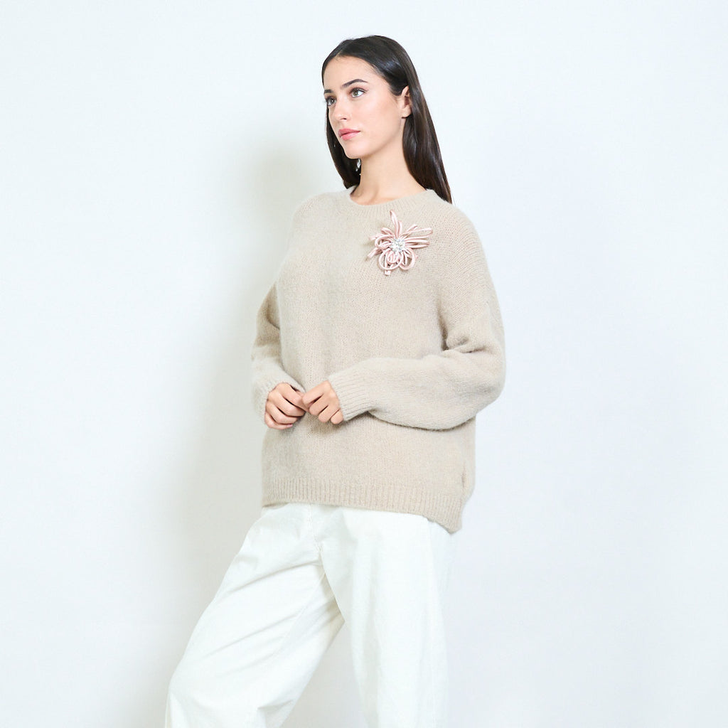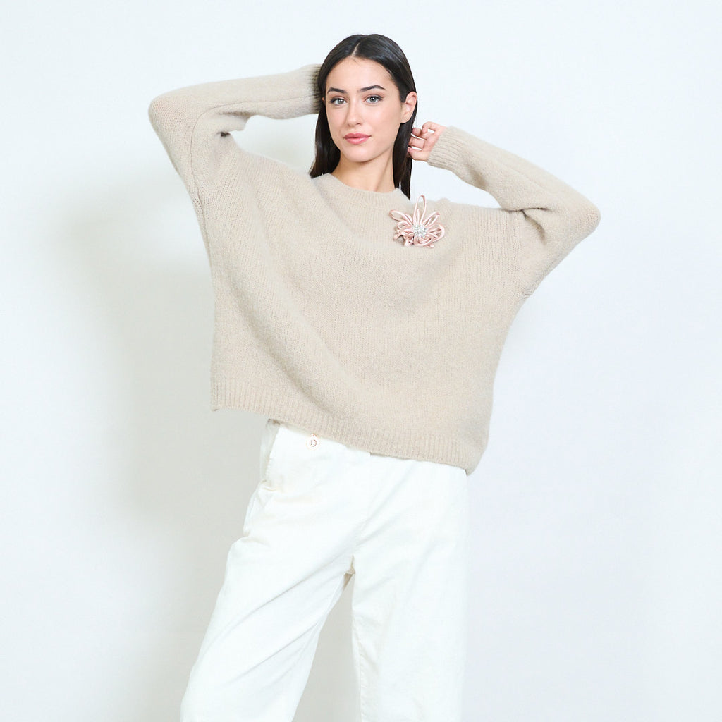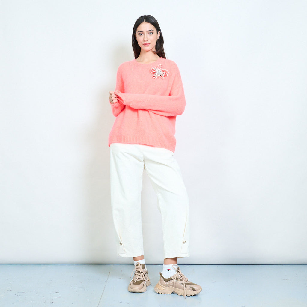 Hurtownia swetra z miękkiej dzianiny w kwiatowe broszki