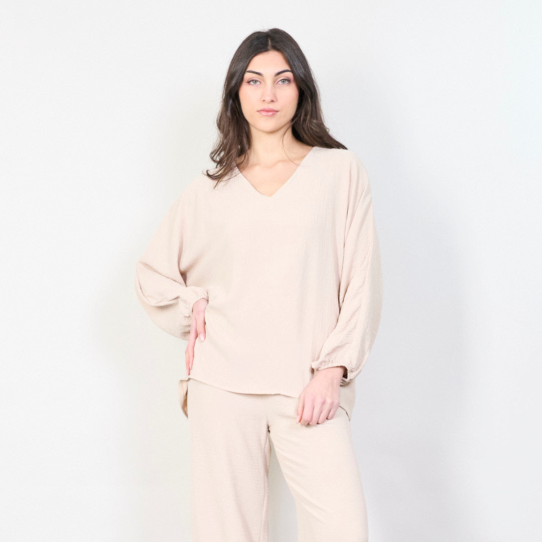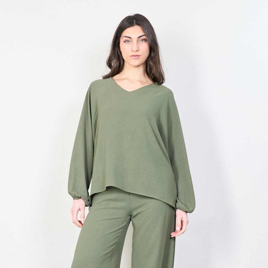 Flow Hurtowa bluzka z długim rękawem w dekolcie