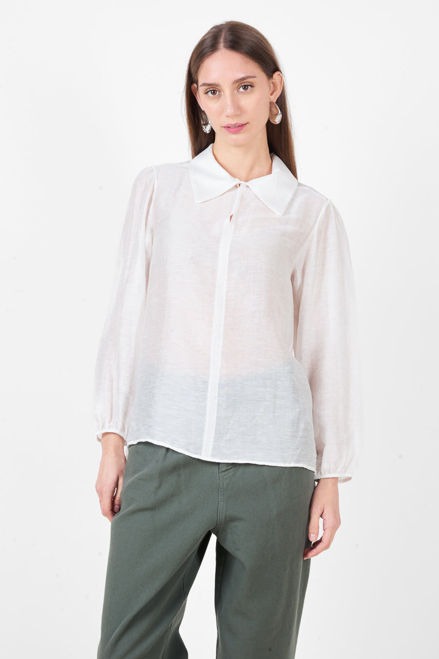 Klasyczna koszula z długim rękawem i kołnierzykiem zapinana z przodu na guziki. Hurtownia luźnej, klasycznej koszuli
