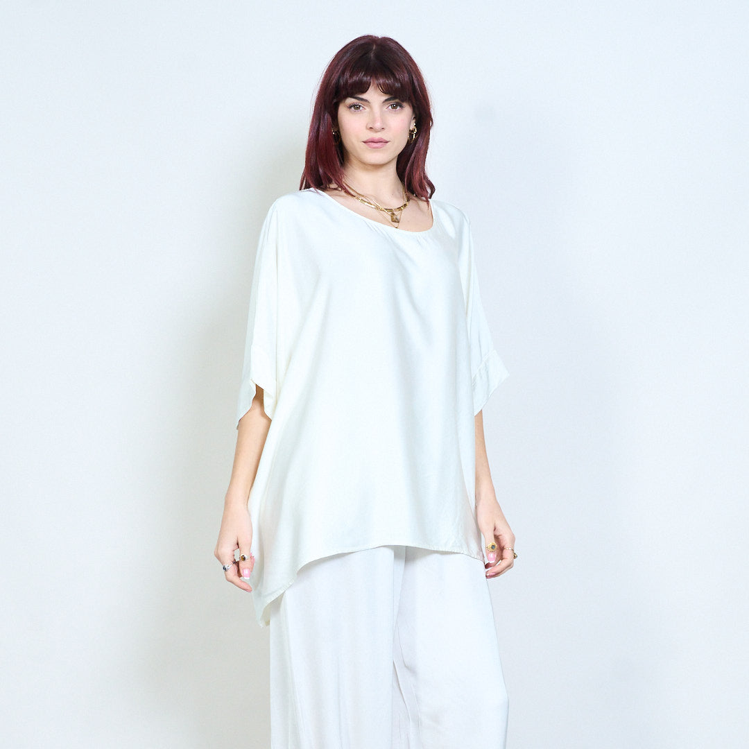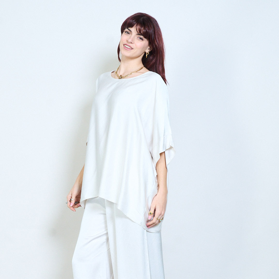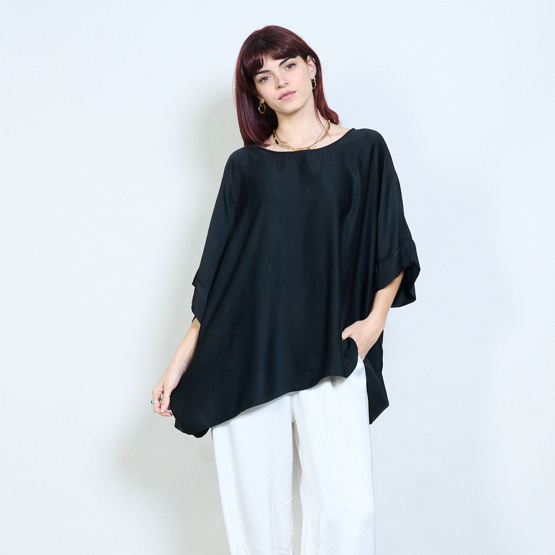 Sprzedam hurtową przezroczystą bluzkę z okrągłym dekoltem i rękawami w kształcie skrzydła nietoperza