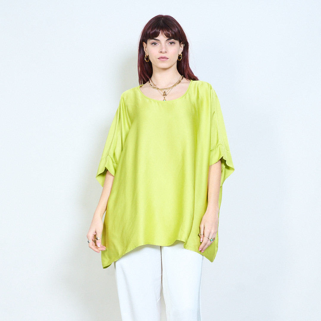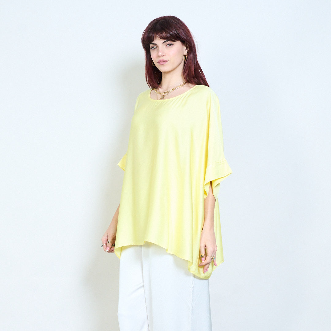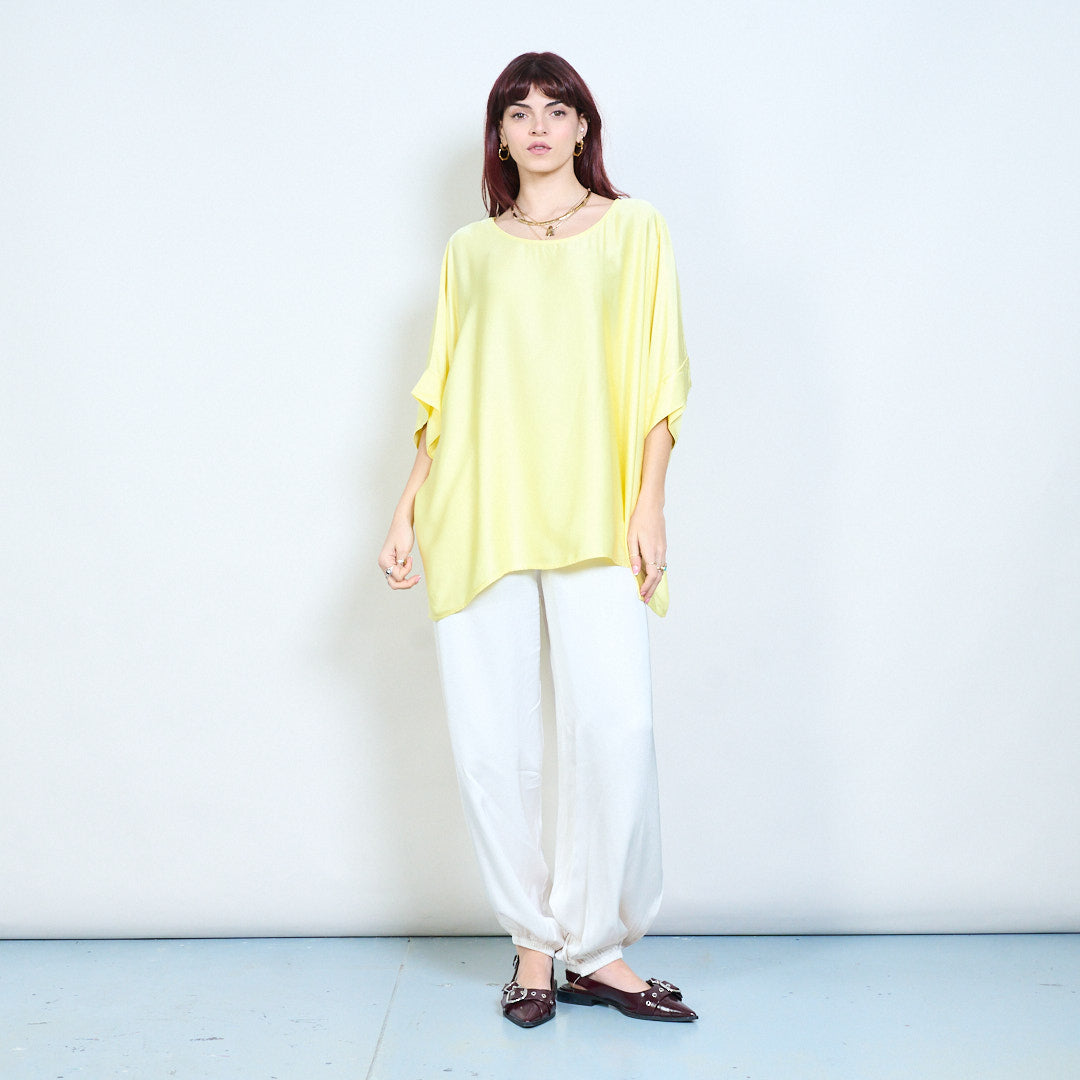 Sprzedam hurtową przezroczystą bluzkę z okrągłym dekoltem i rękawami w kształcie skrzydła nietoperza