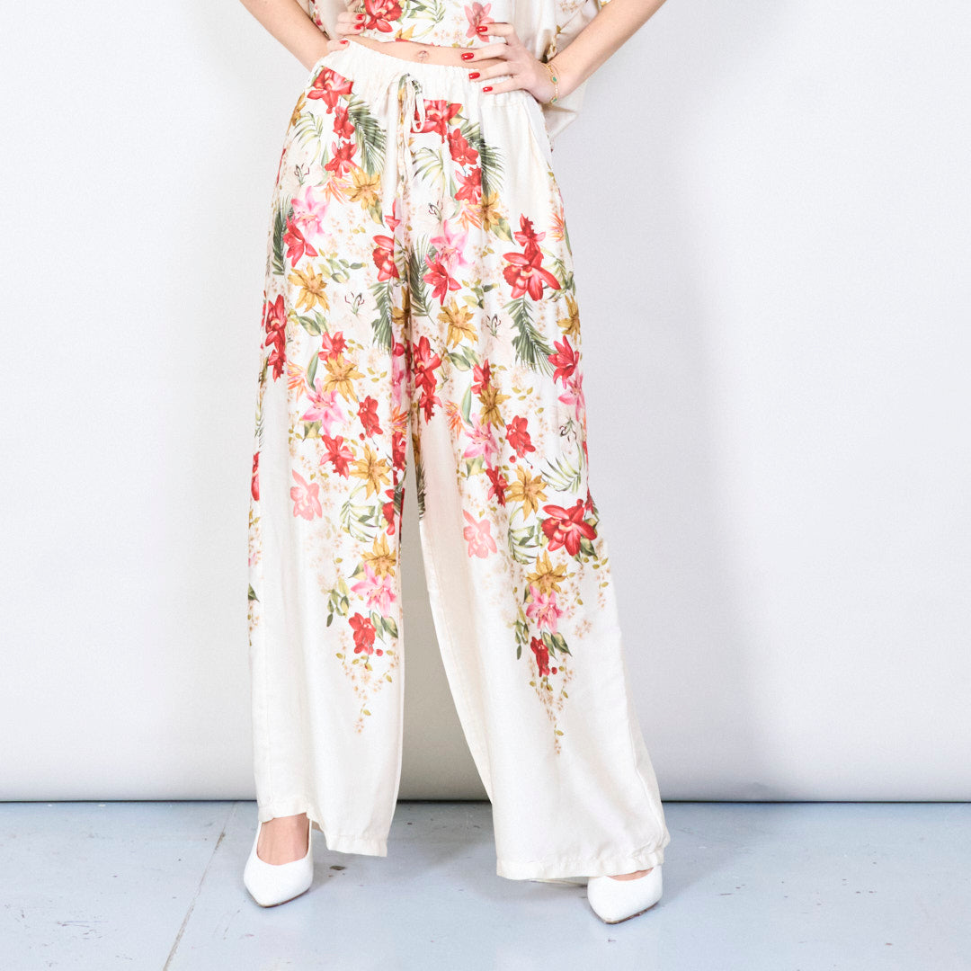Jedwabny dotyk kwiatowe szerokopasmowe spodnie hurtowe