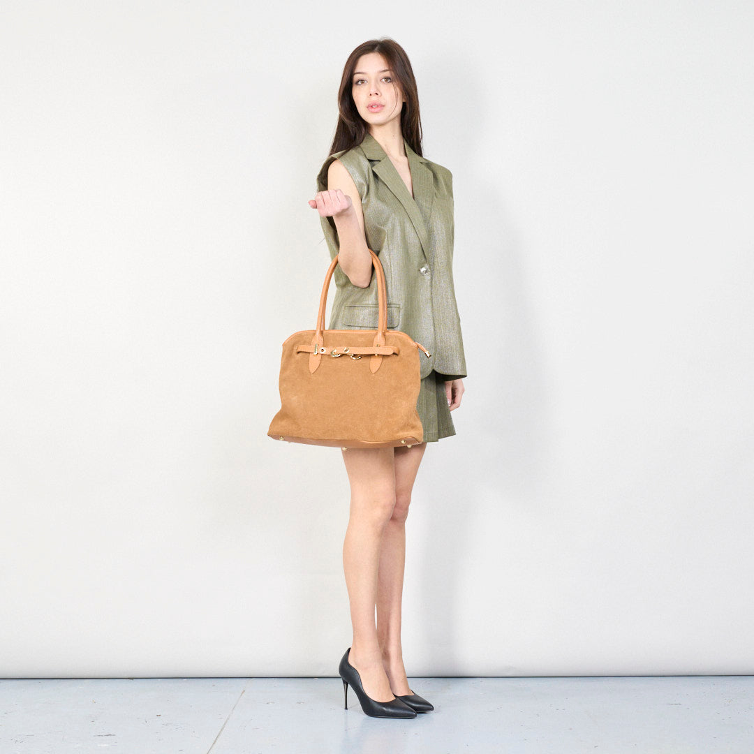 Zamszowa skórzana torebka z górnymi uchwytami hurtowymi