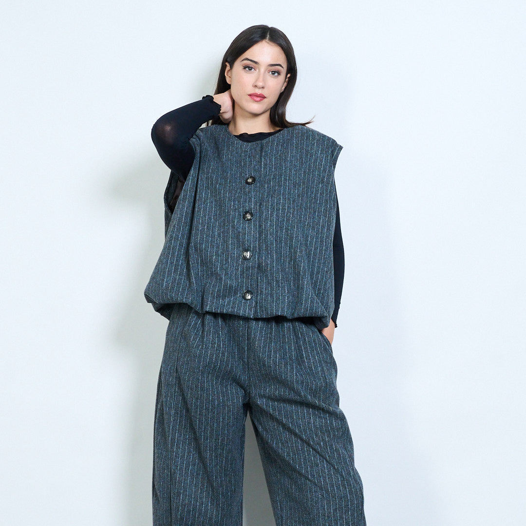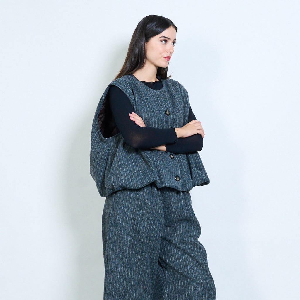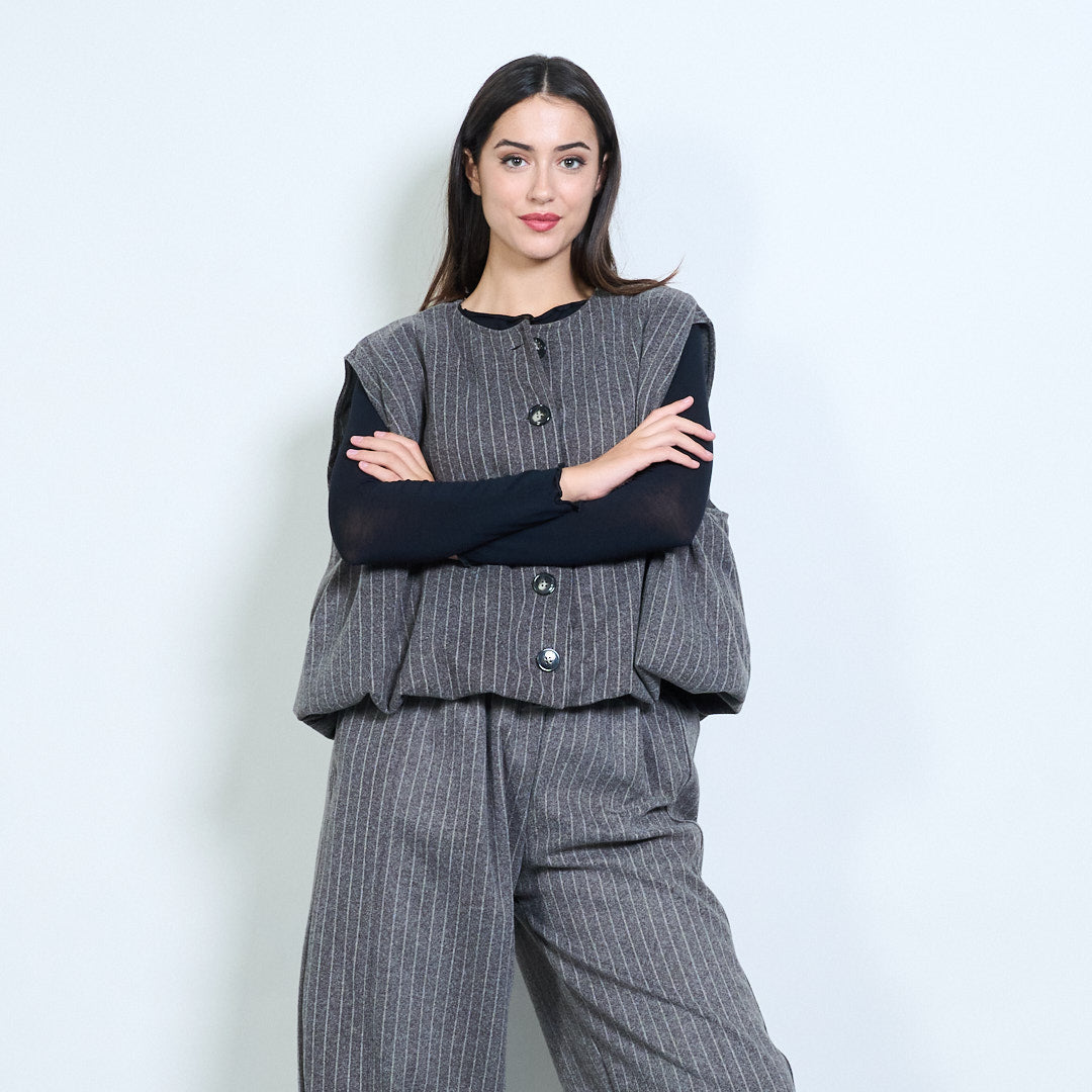 Hurtownia kamizelki o kroju oversize w prążki z przodu i zapinana na guziki