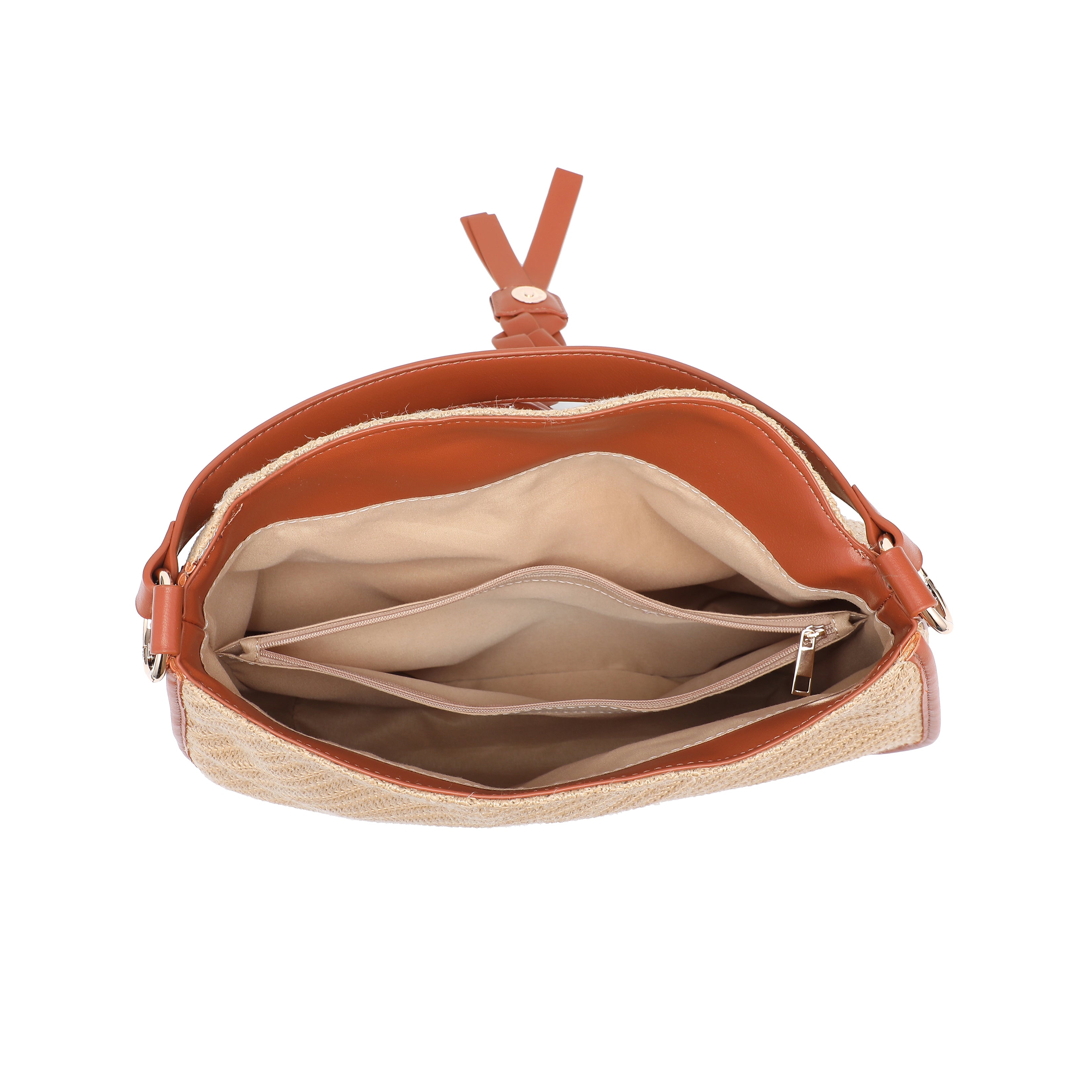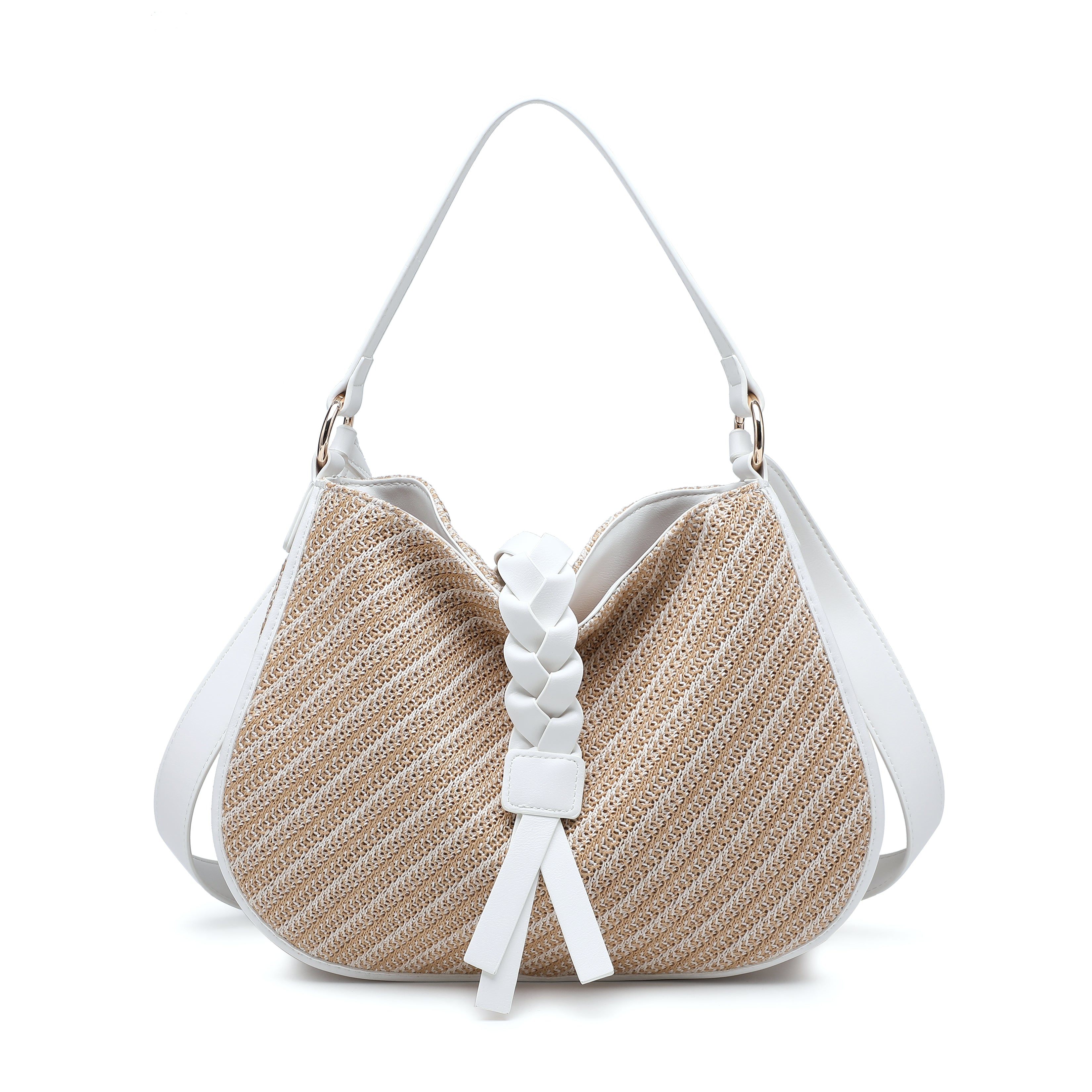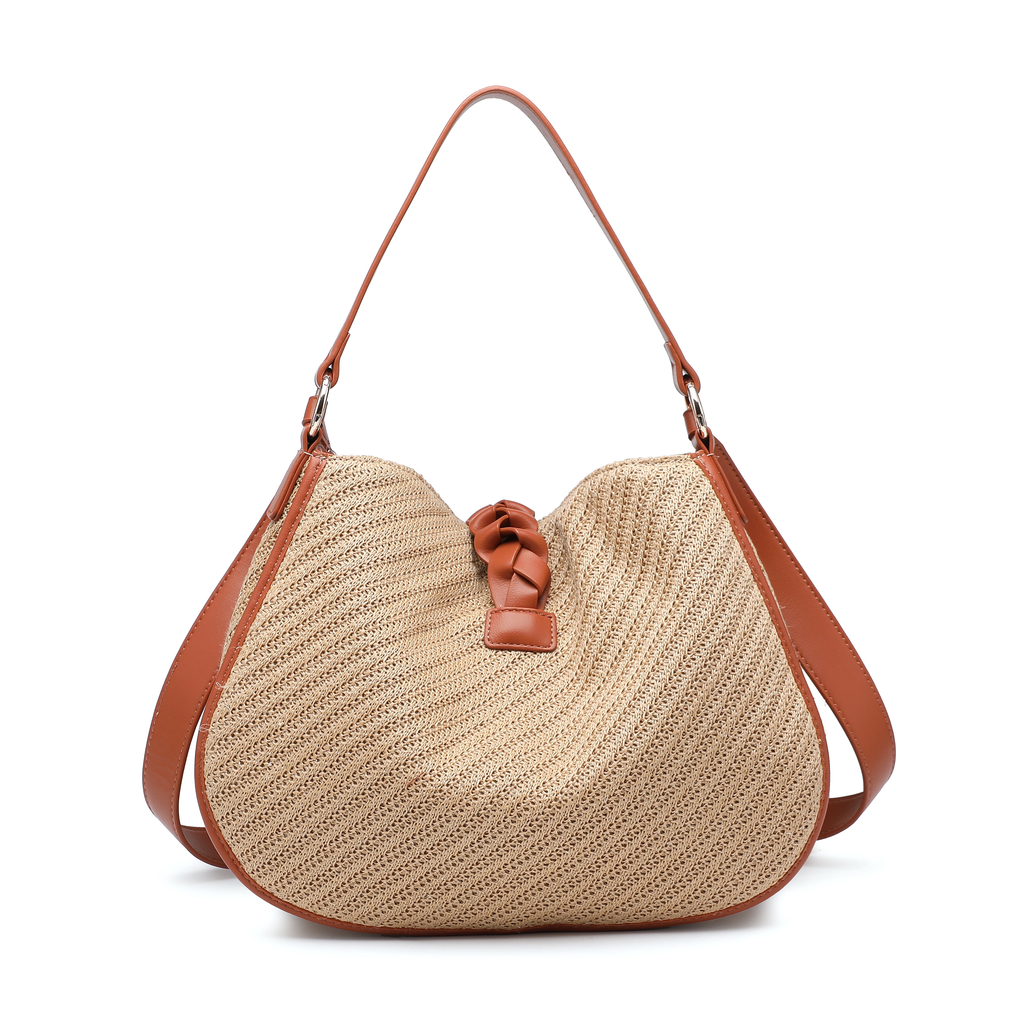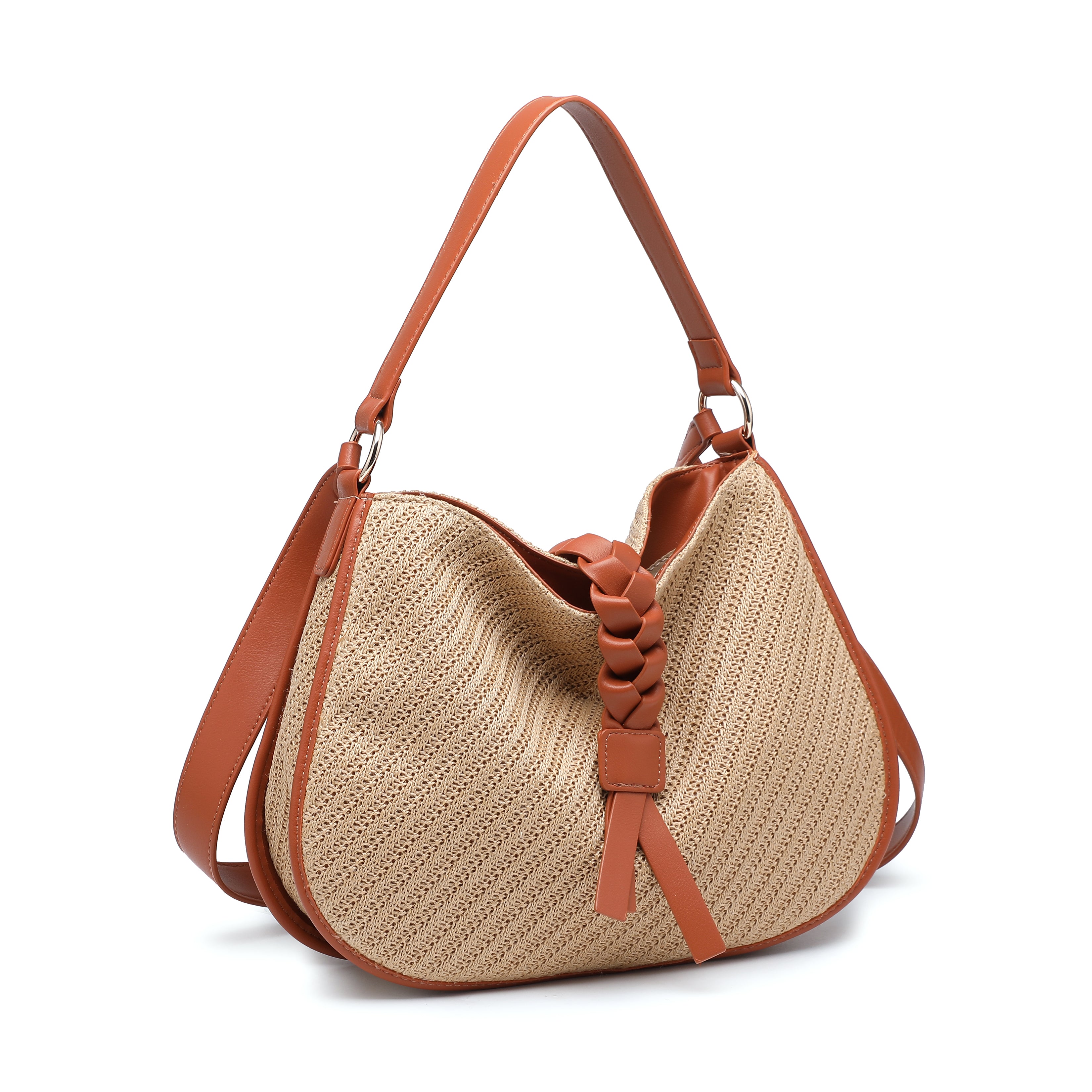 Torba na ramię z tkaniny ze skórzanymi plecionymi detalami hurtowo
