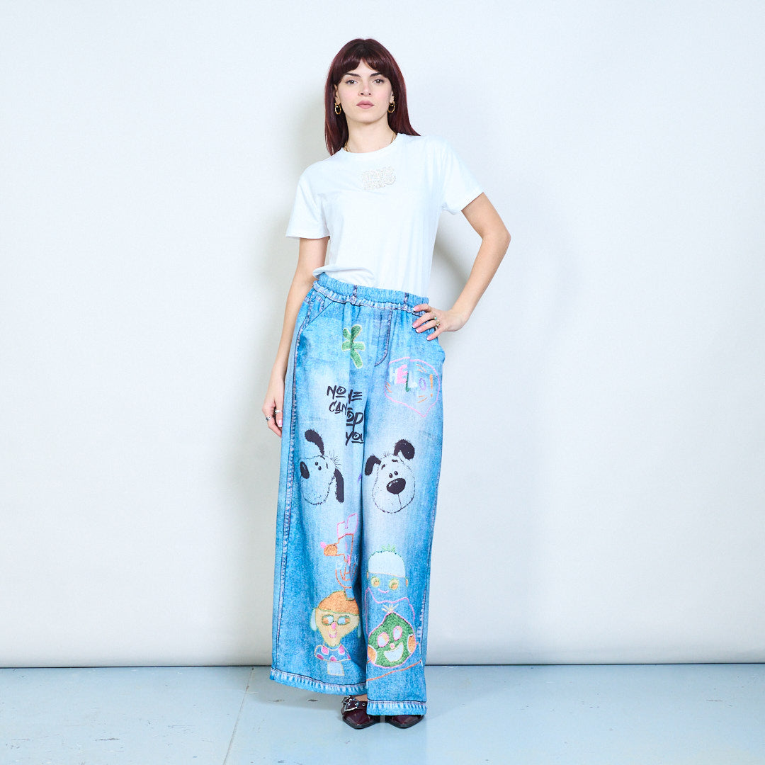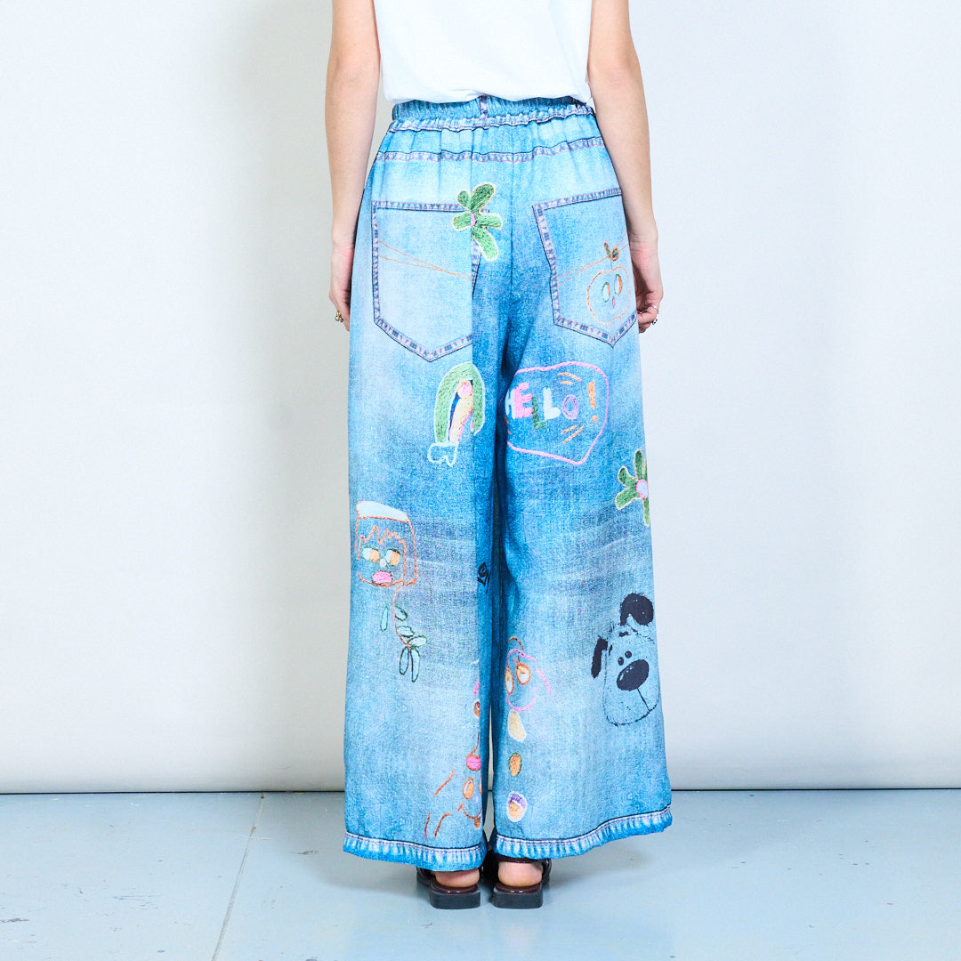 Hurtownia luźnych spodni dżinsowych o luźnym kroju z fantazyjnym szkicem i elastyczną talią