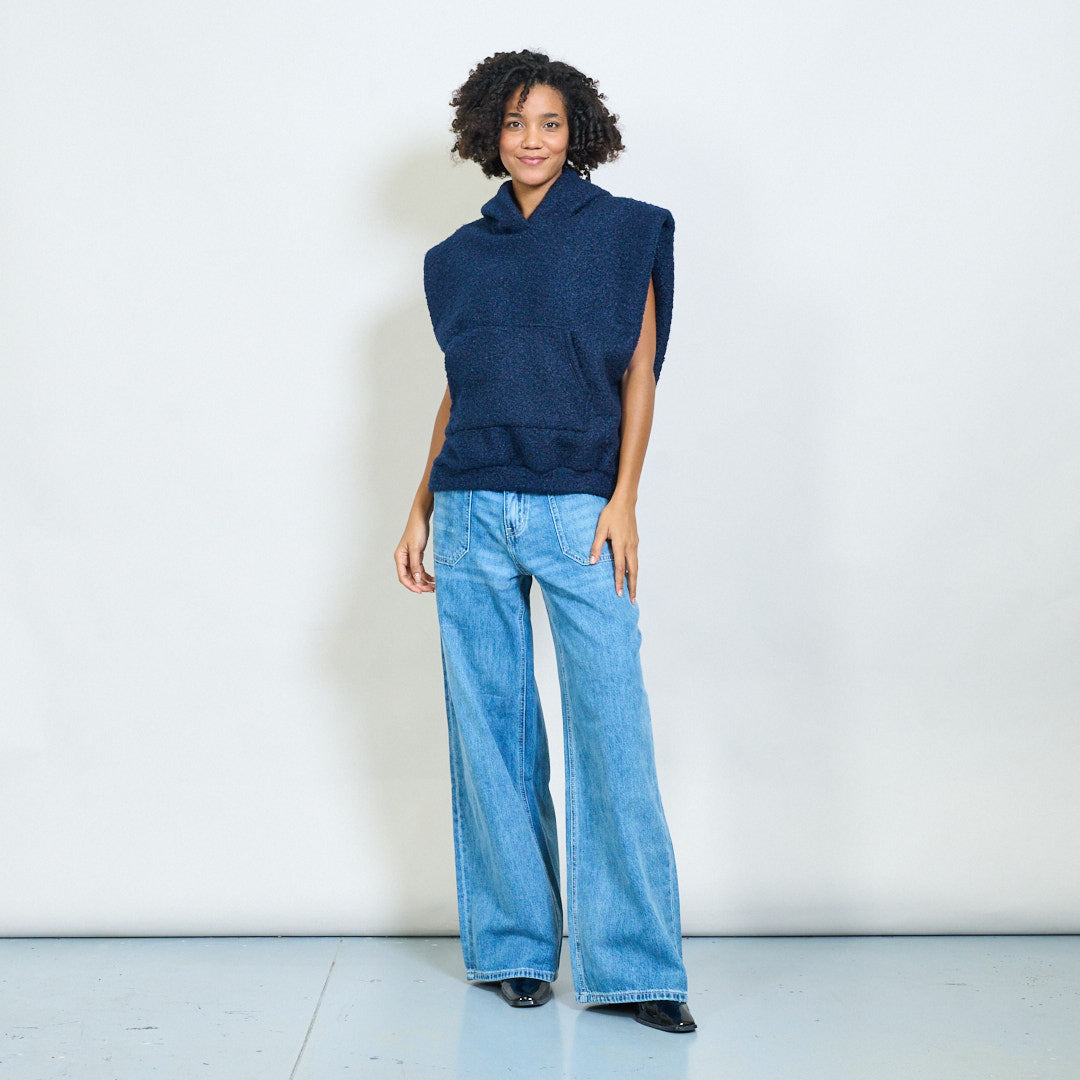 - Przytulny styl poncho z zrelaksowanym ponadgabarytowym kroju