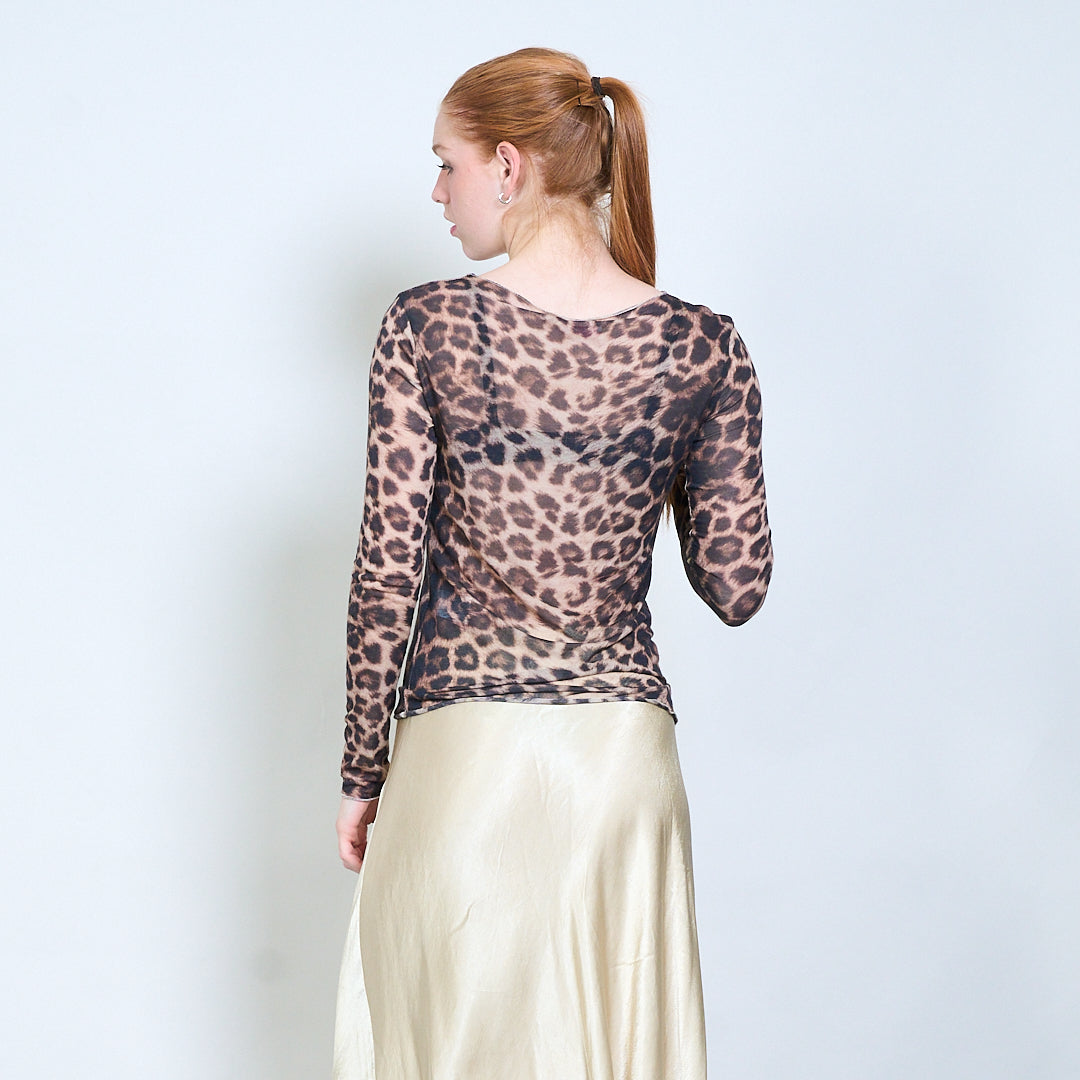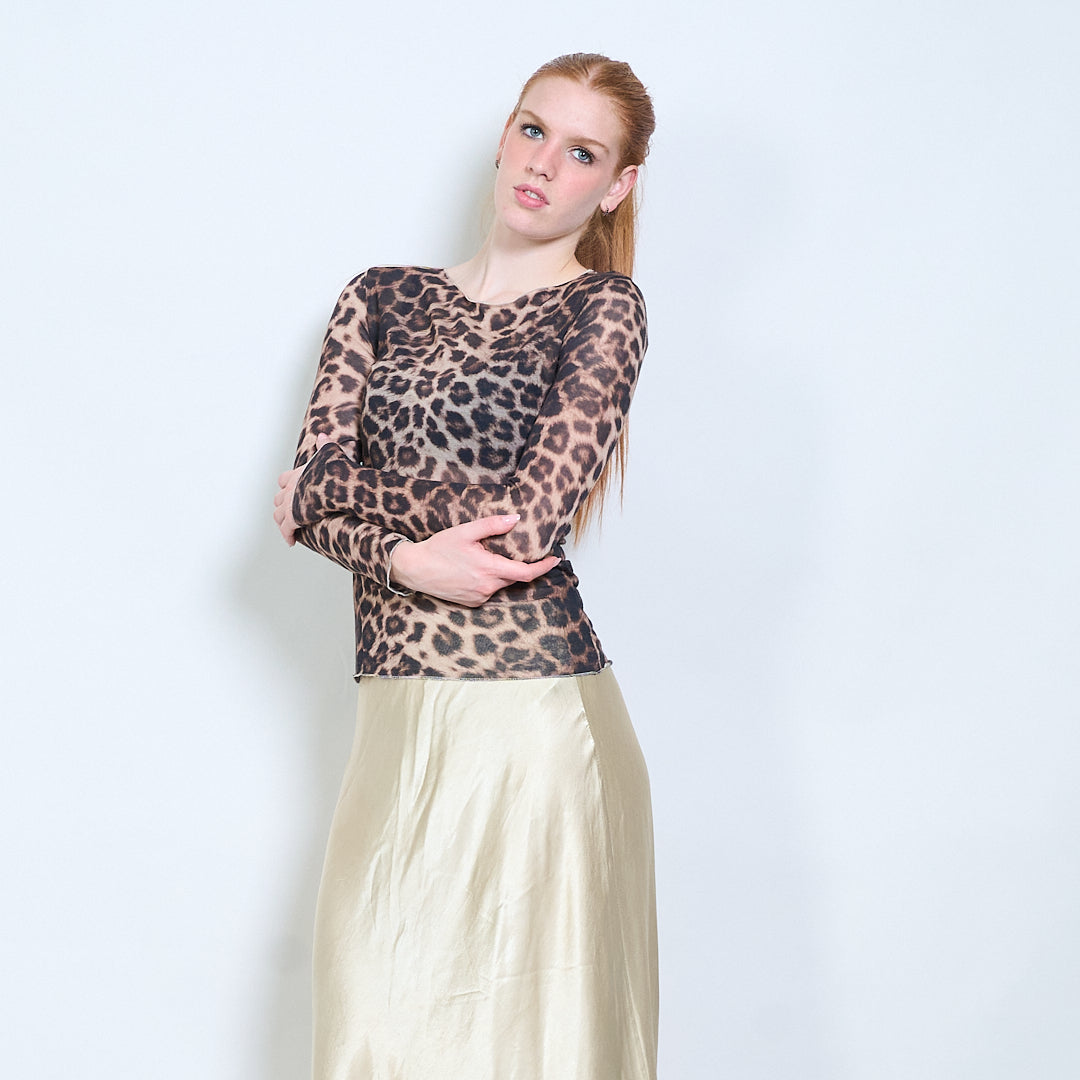 Dopasowany top Animalia z długim rękawem i nadrukiem w panterkę – hurt
