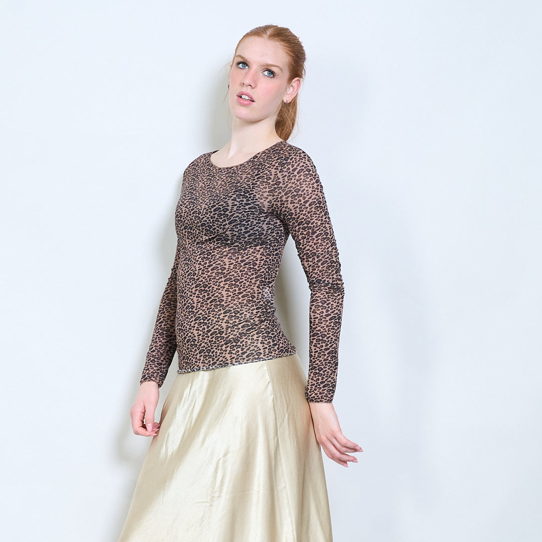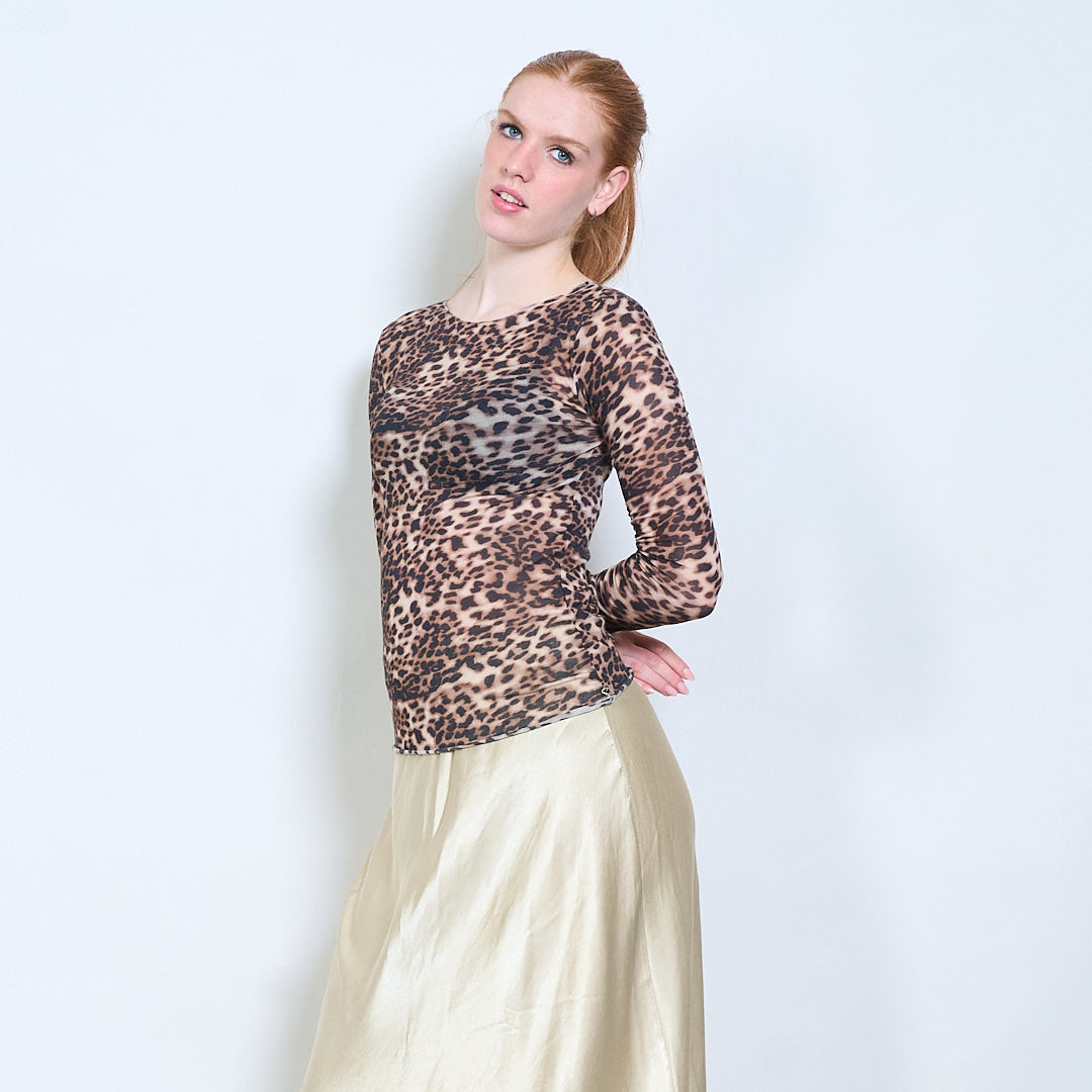 Klasyczna, przezroczysta, dopasowana bluzka z długim rękawem Animalia w panterkę. Hurtownia hurtowa