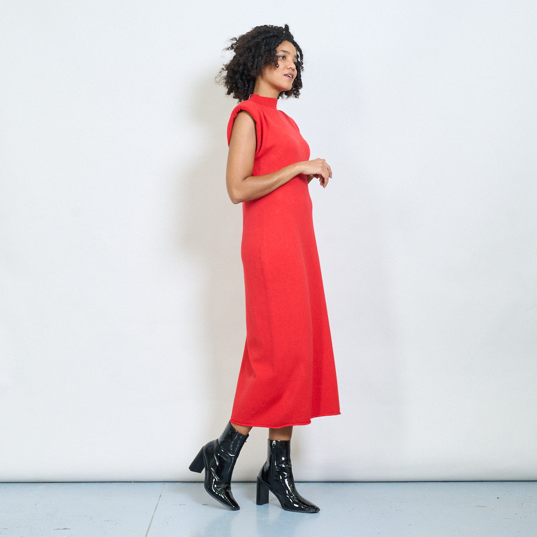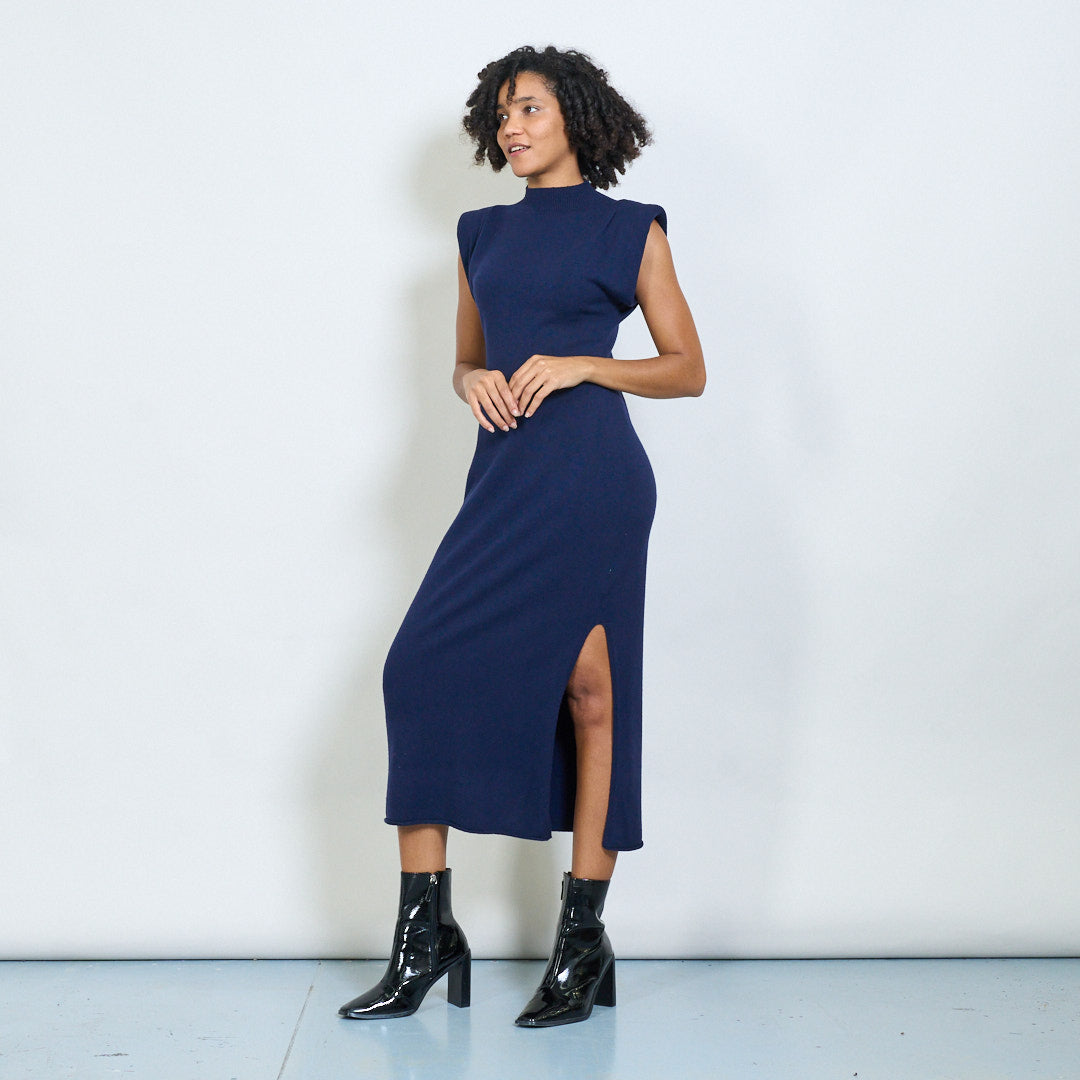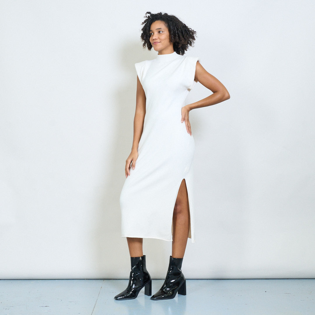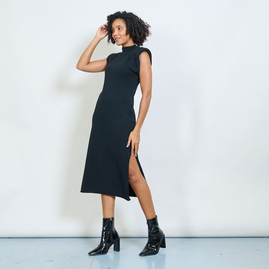 Bez rękawów podkładka na ramię wysoko szyi hurtowa sukienka