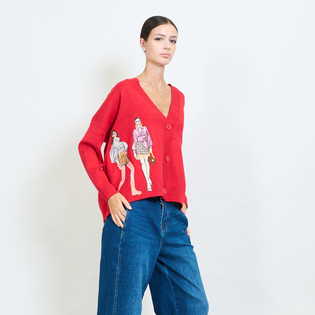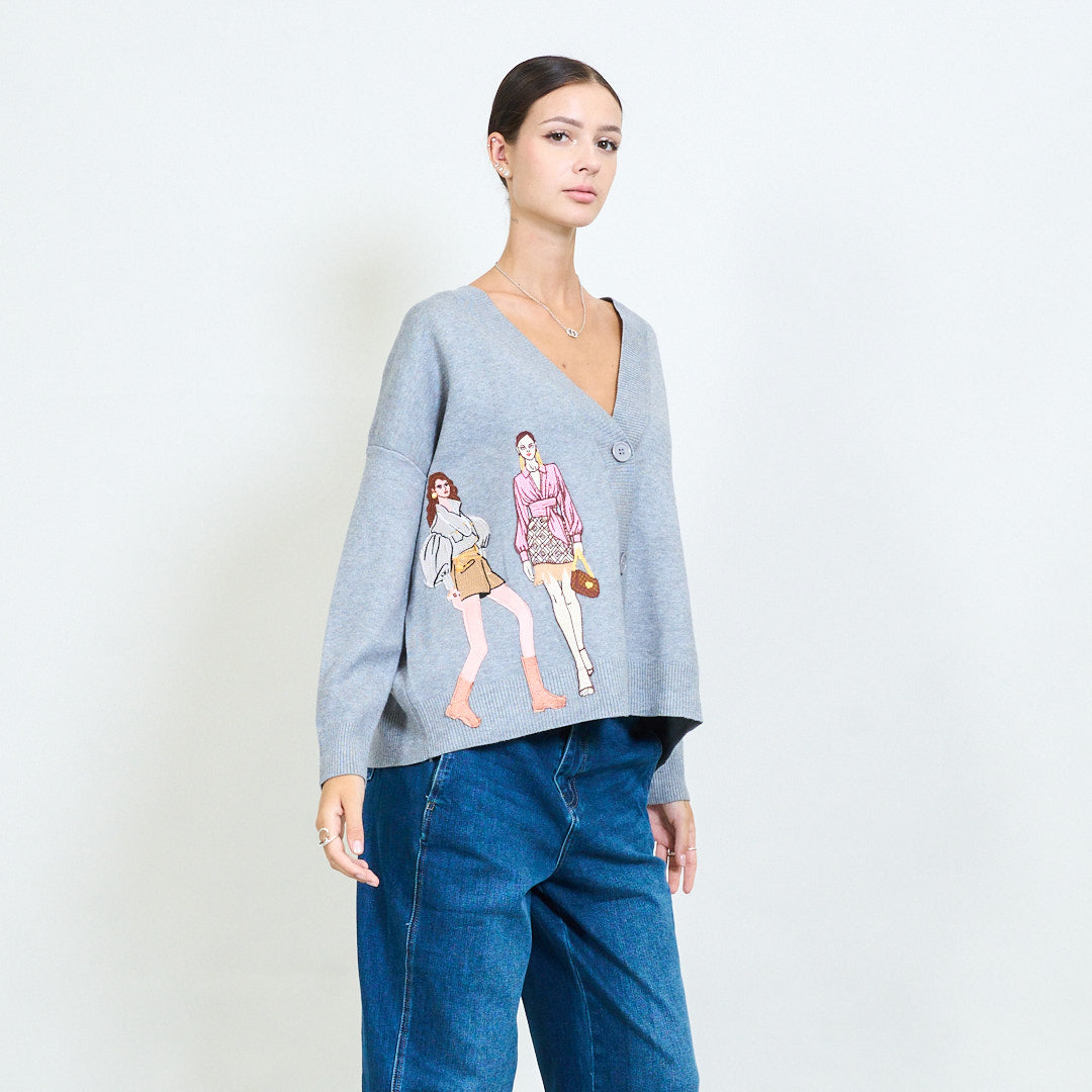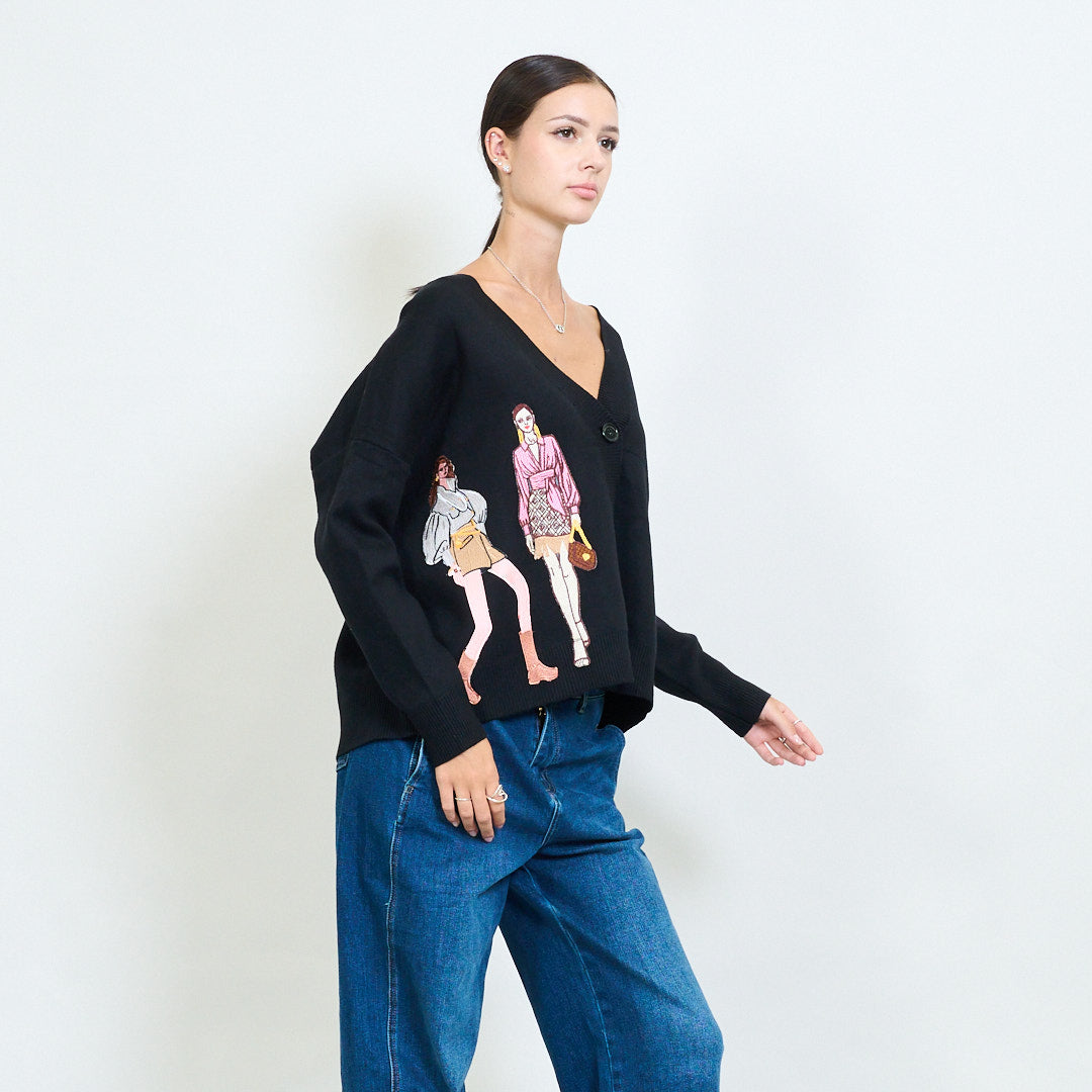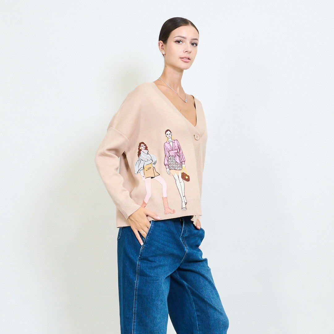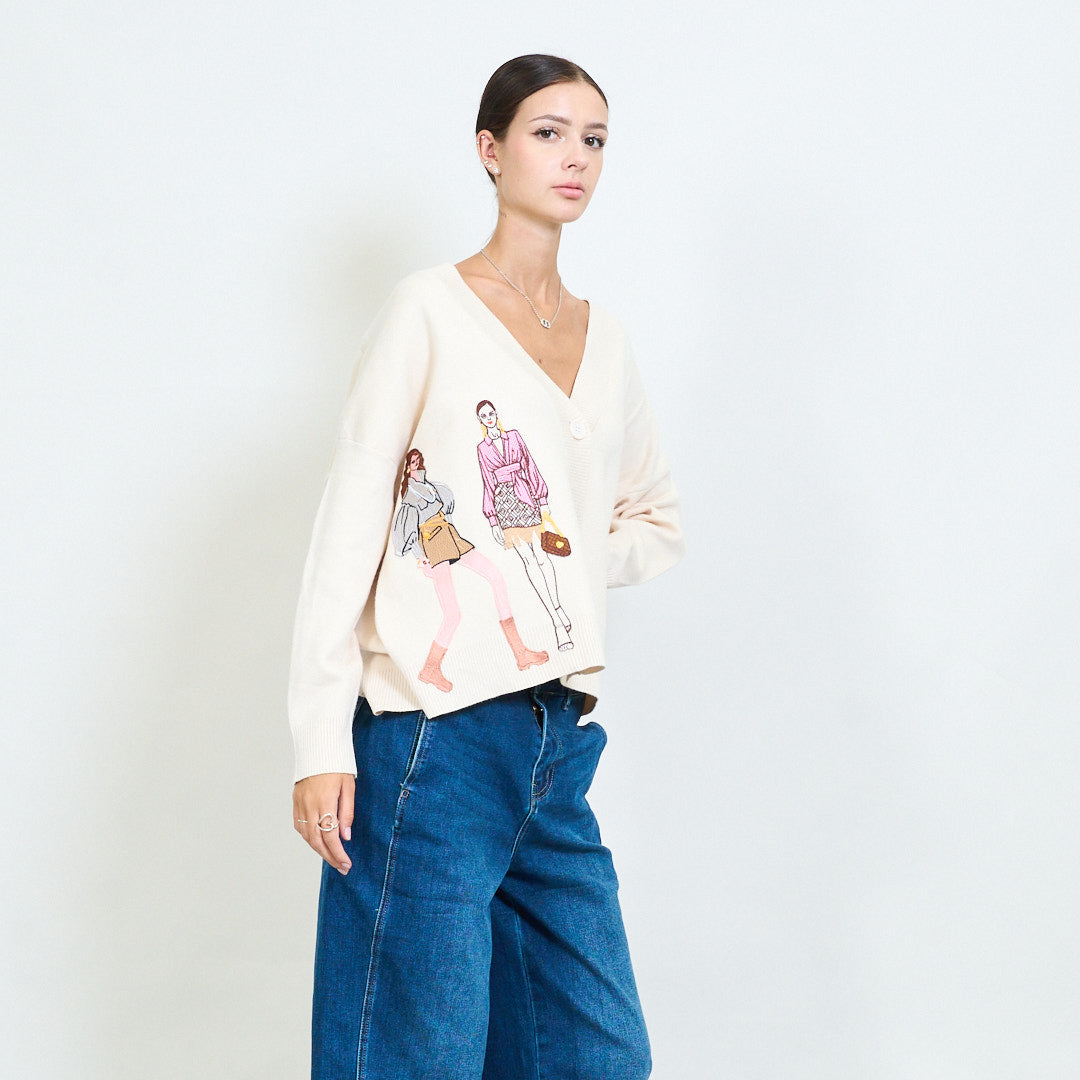 Fashion Girls Graphic V-Dnict Knit Sweter hurtowy