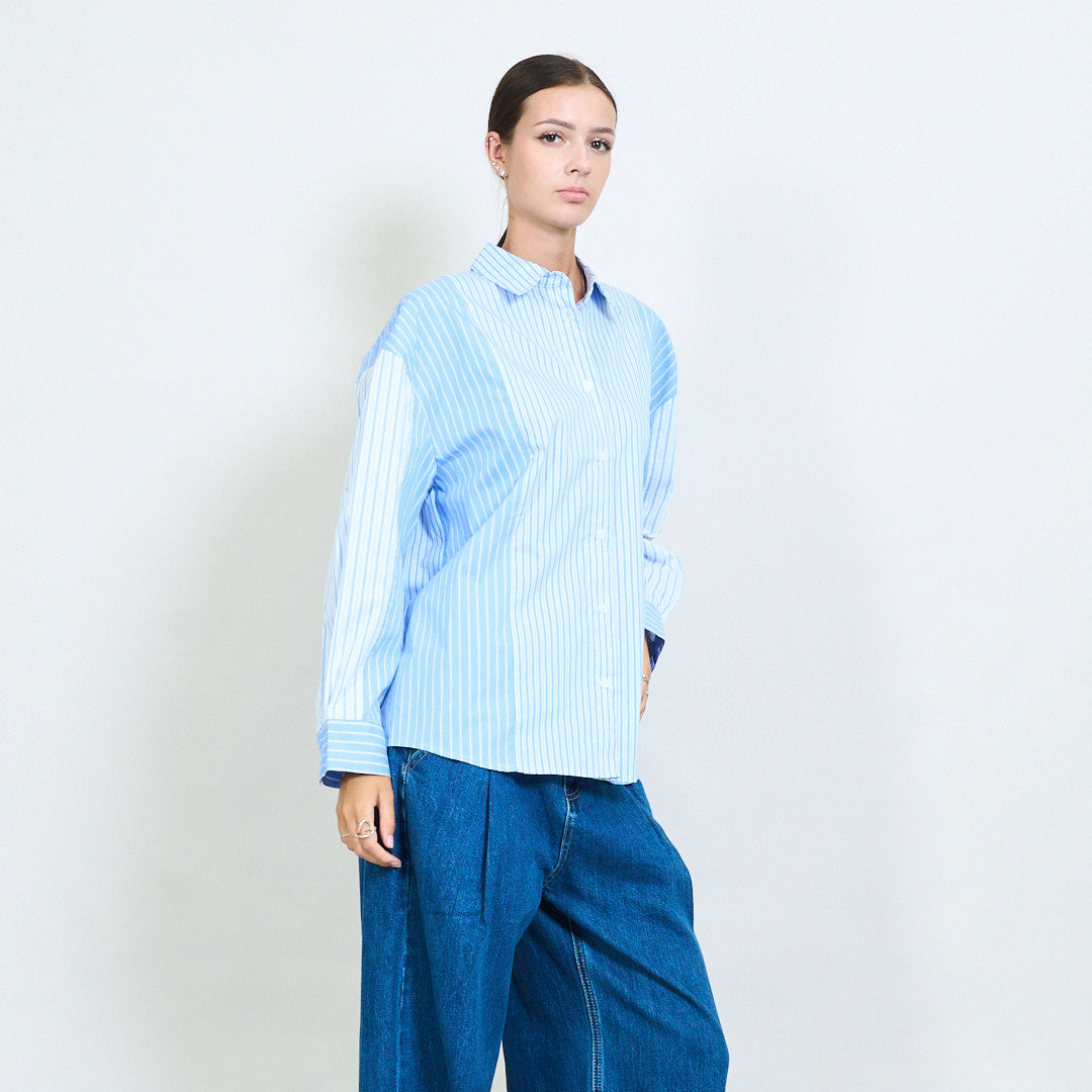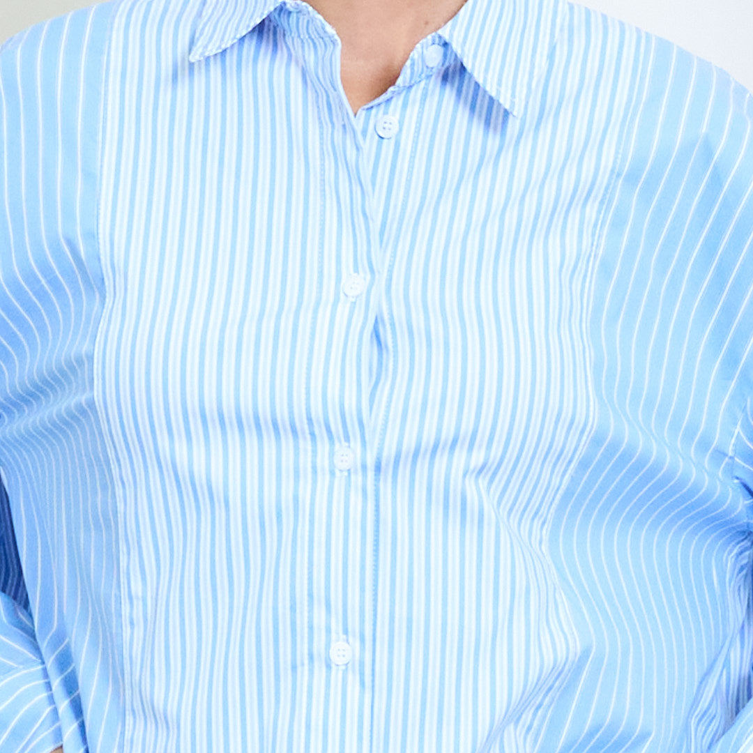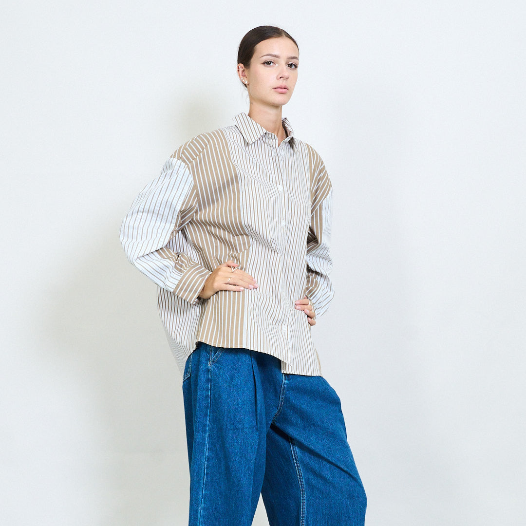 - Klasyczna konstrukcja koszuli z pionowym wzorem wielopasmowym