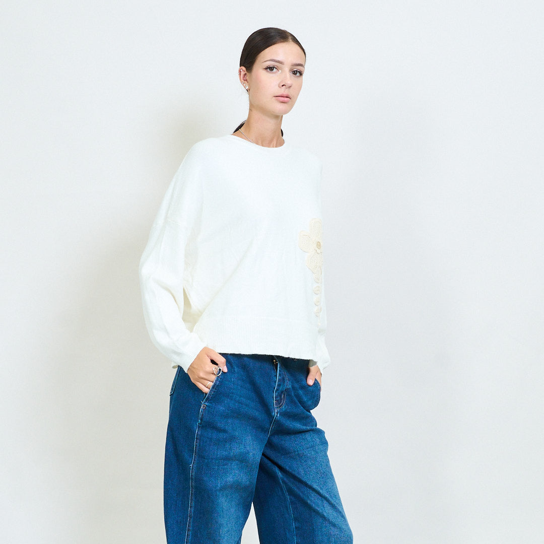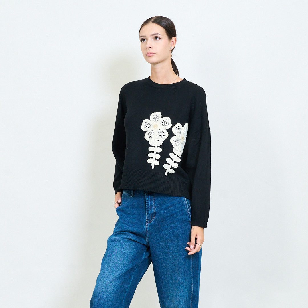 - Duże kwiatowe szczegóły aplikacji z przodu dodają wyjątkowości
