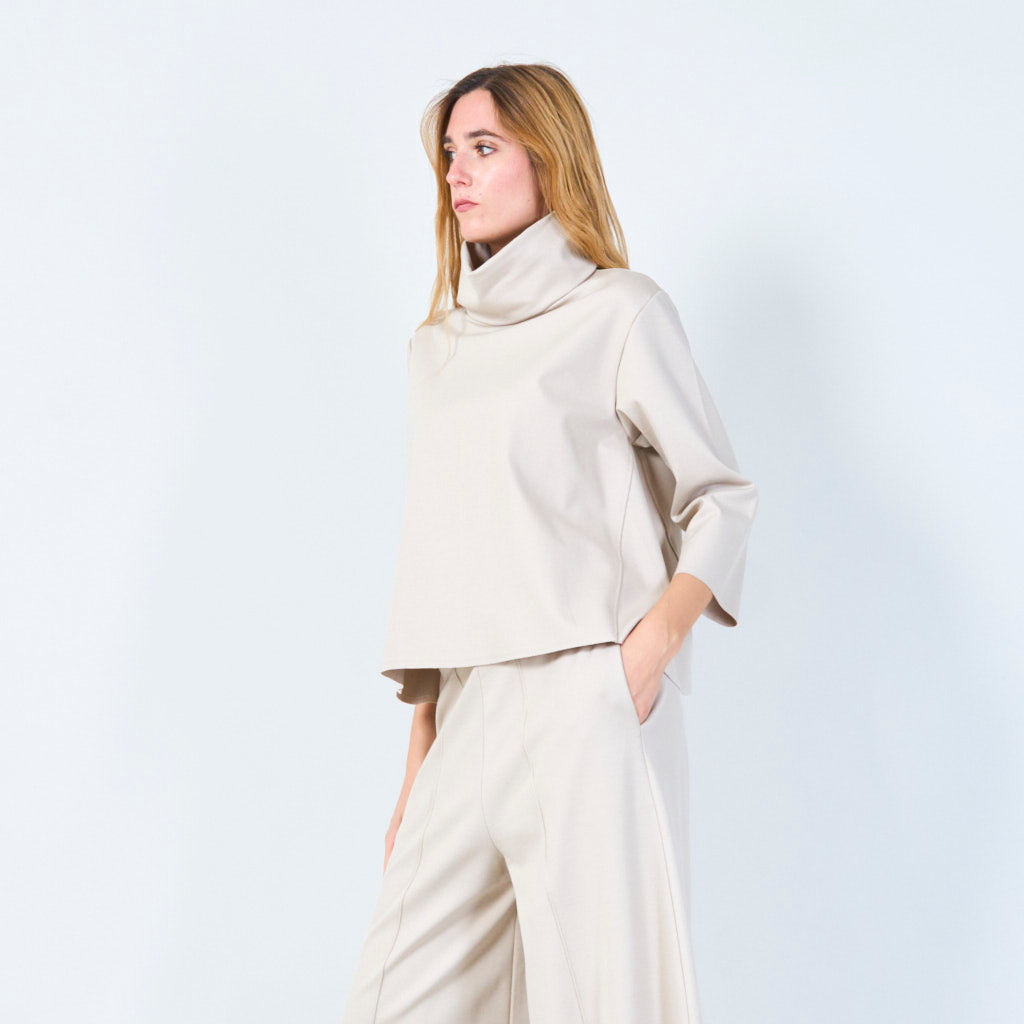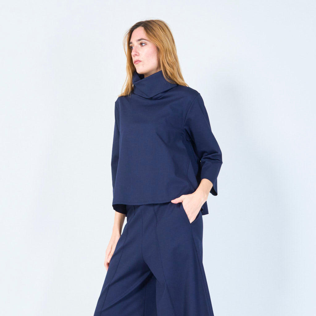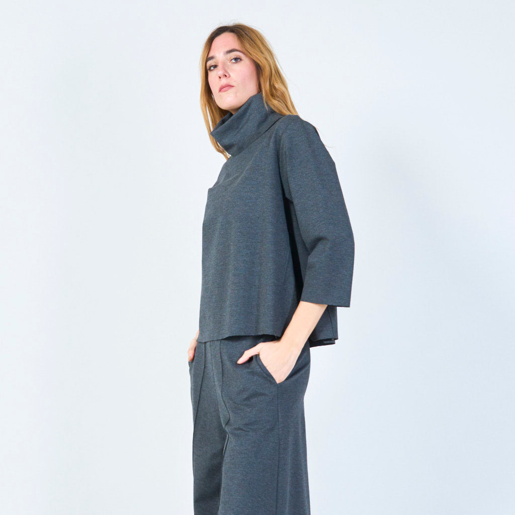 - Zrelaksowane dopasowanie z golfem do przytulnego wyczucia