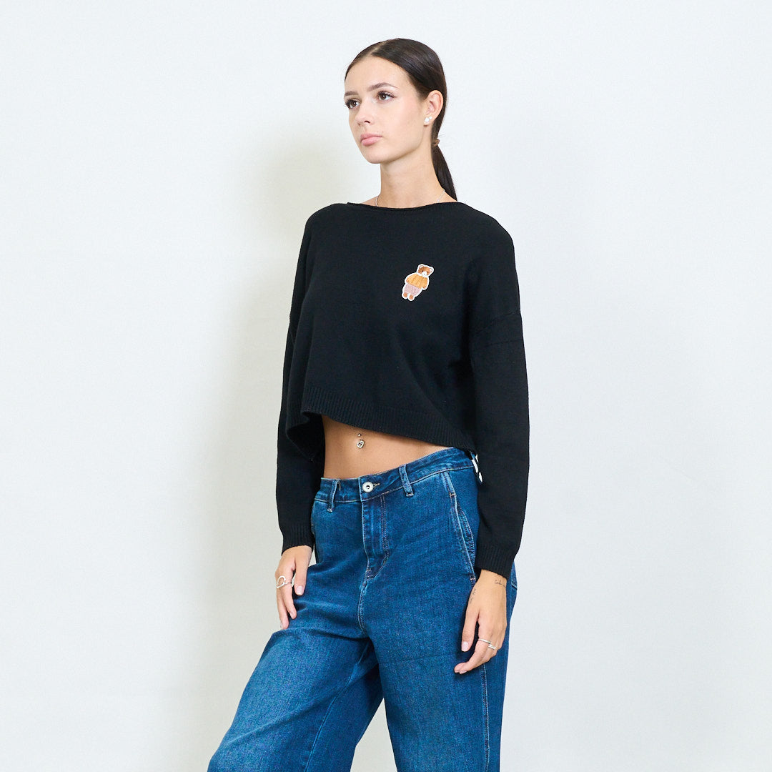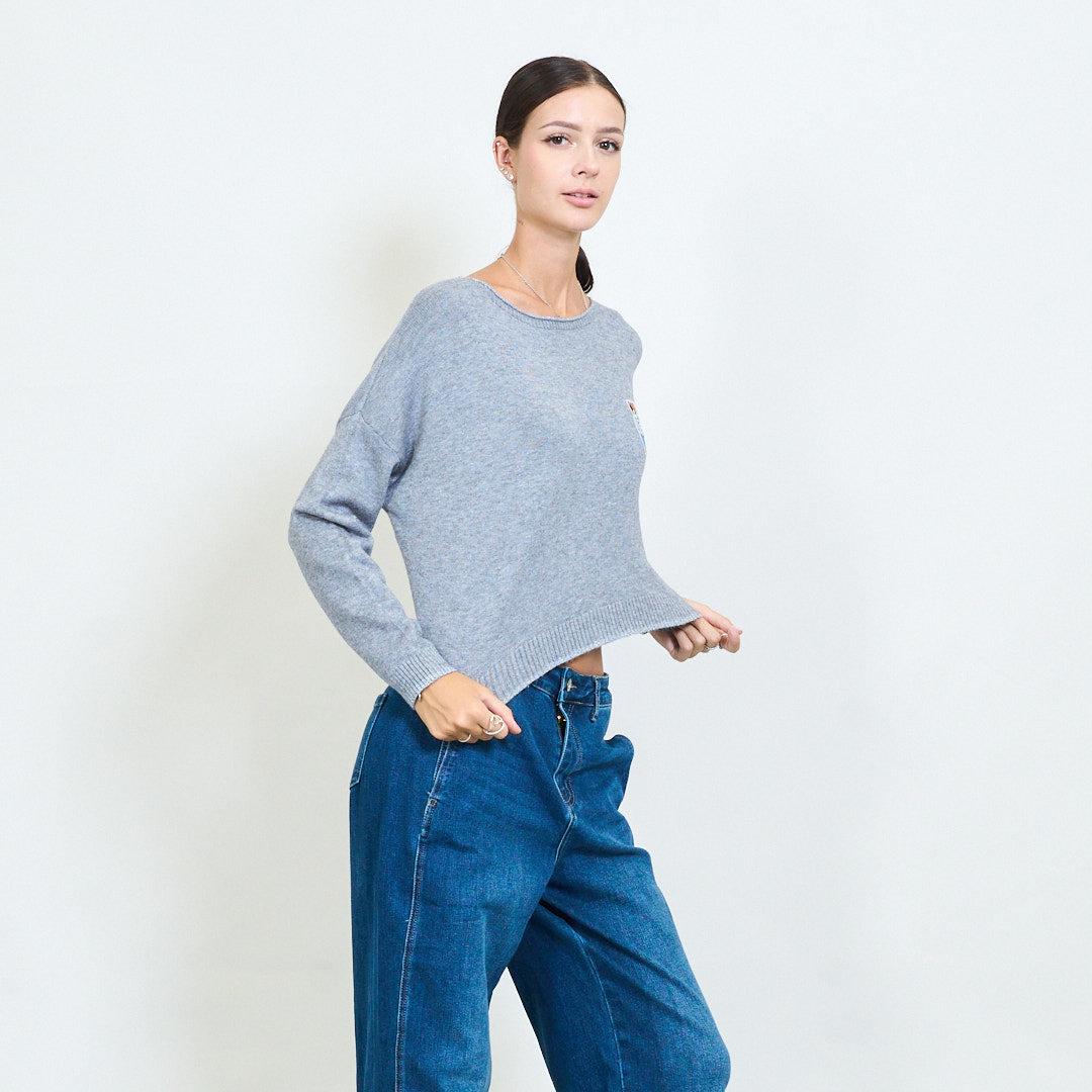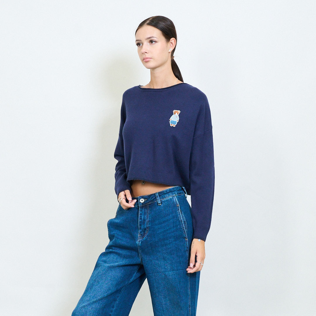 Przycięty misy haftowany sweter z dzianin