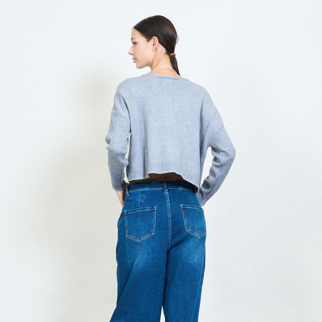 - Sweter z przyciętym długością z nowoczesnym swobodnym dopasowaniem