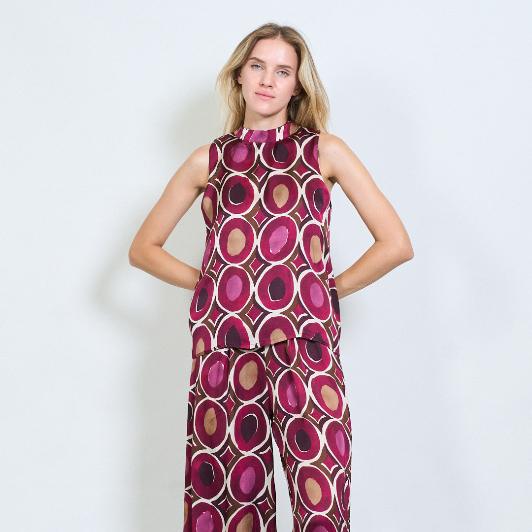 Retro Circle Print Bez rękaw
