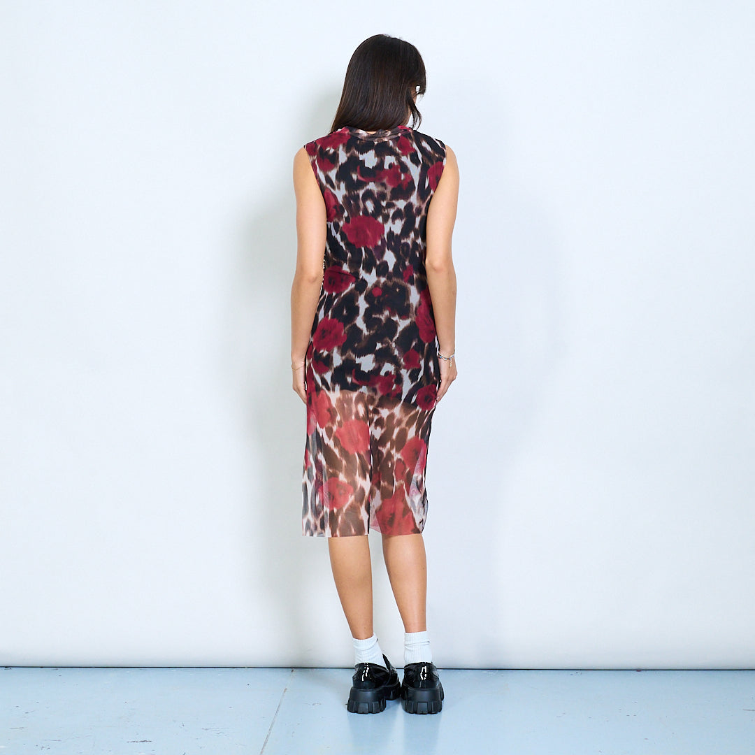 Sher Animal Rose Print Rose Mesh Bez rękawów z wewnętrzną podszewką hurtową