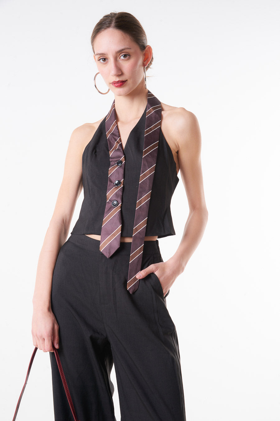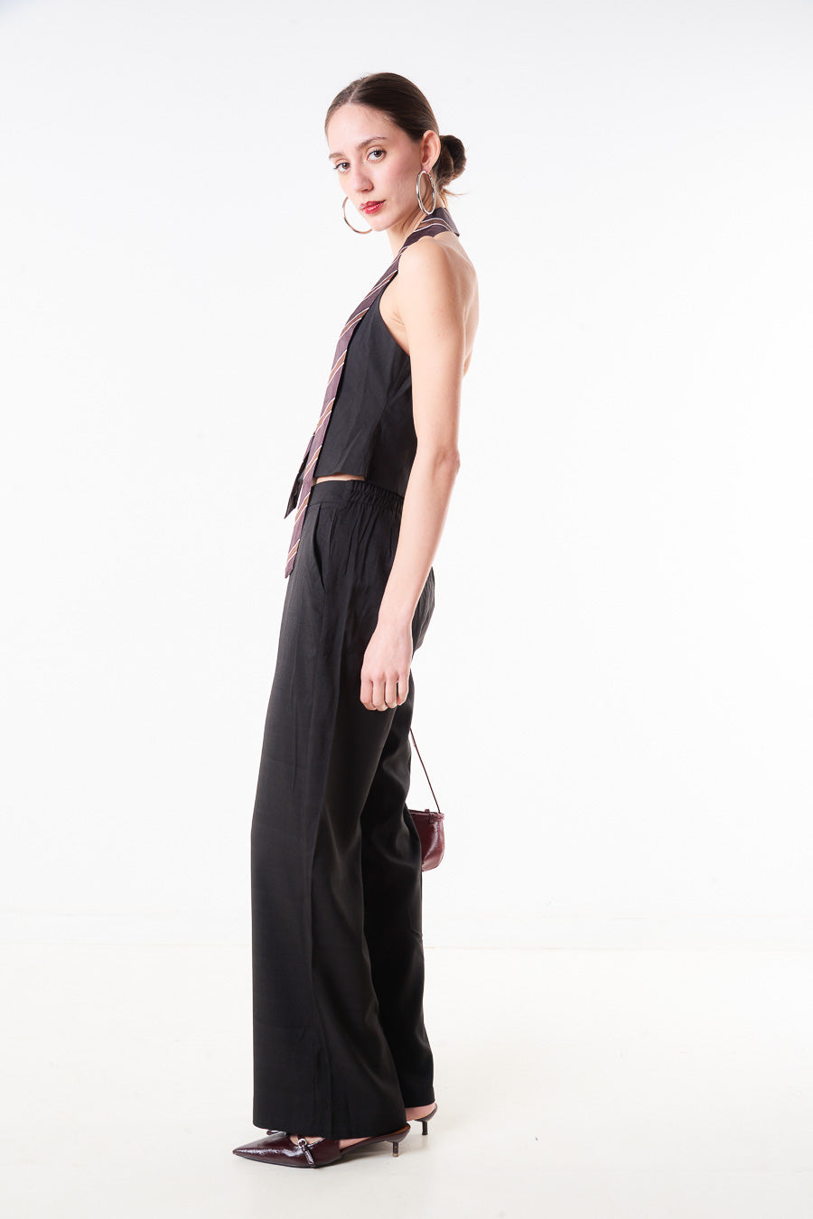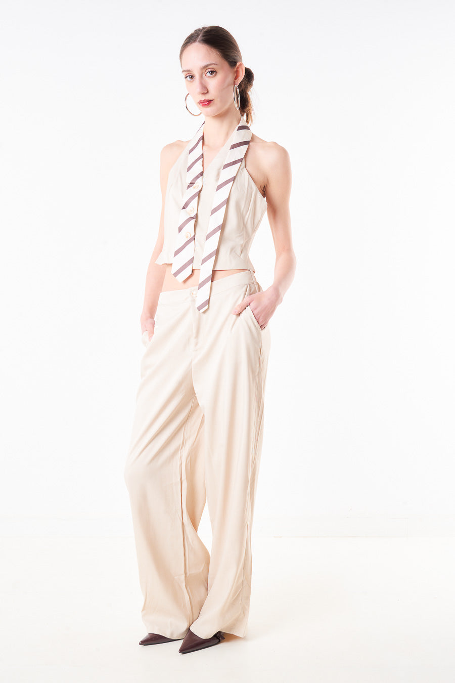 Dopasowana kamizelka i spodnie z szerokimi nogawkami – hurt