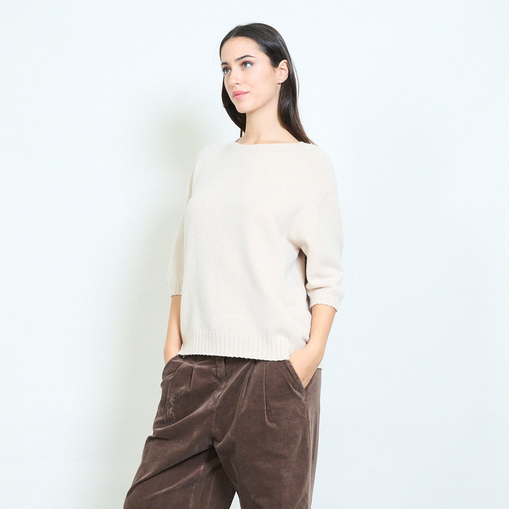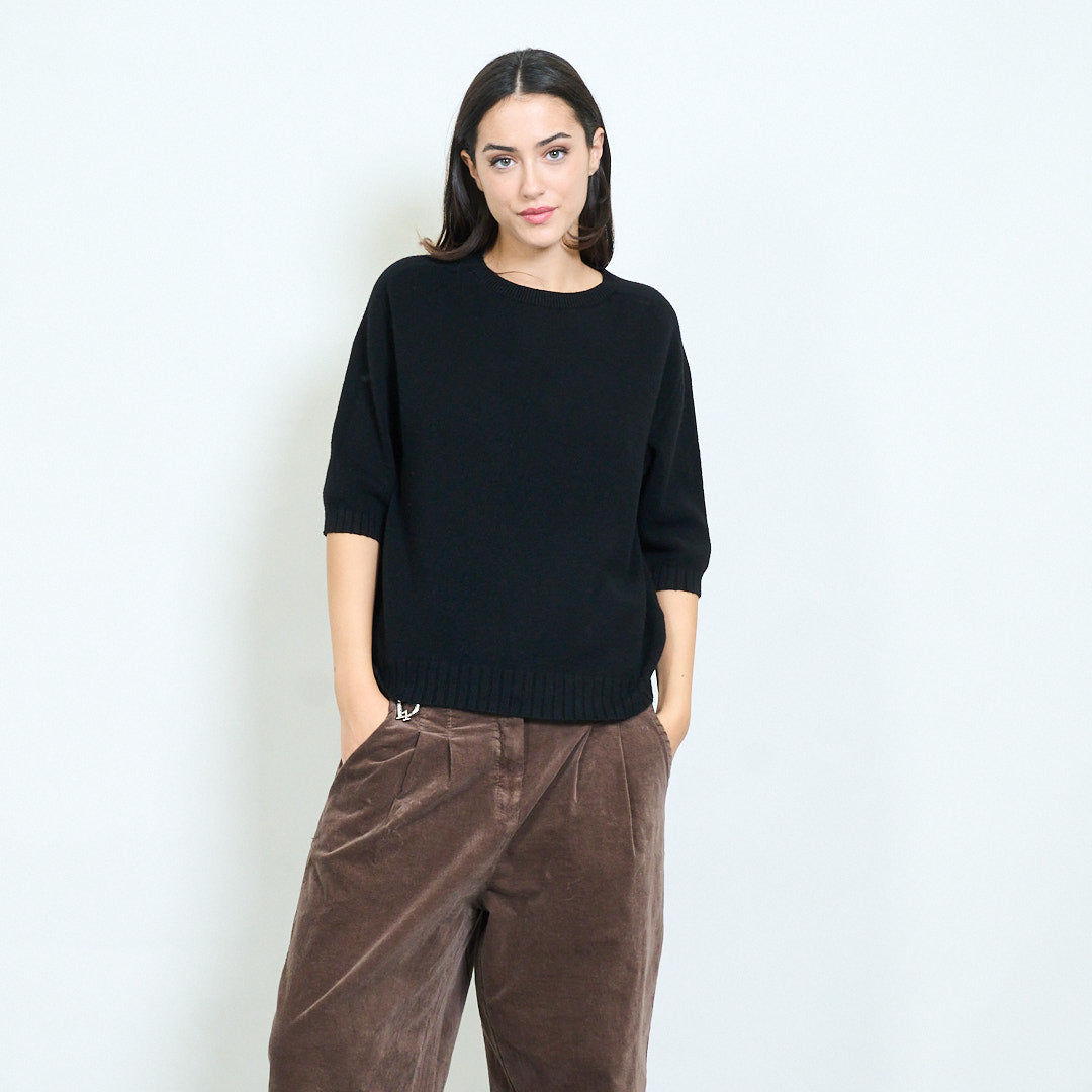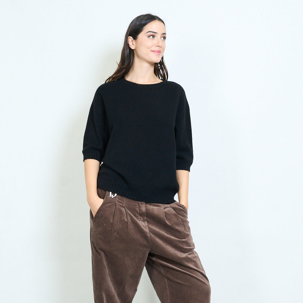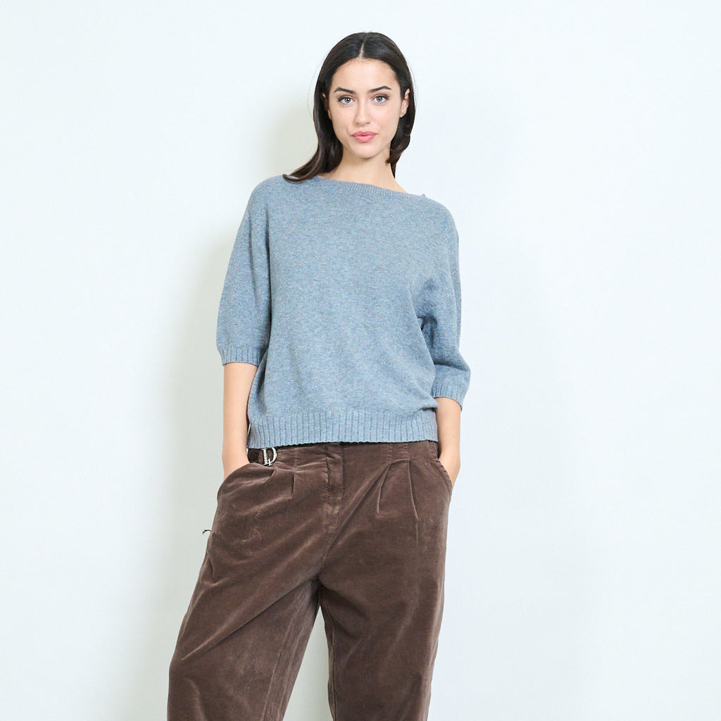- Klasyczna dzianina z okrągłym dekoltem i nowoczesną sylwetką z półrękawem