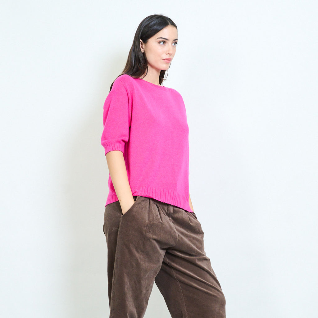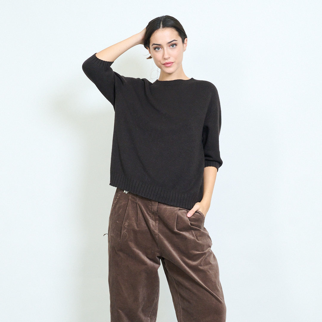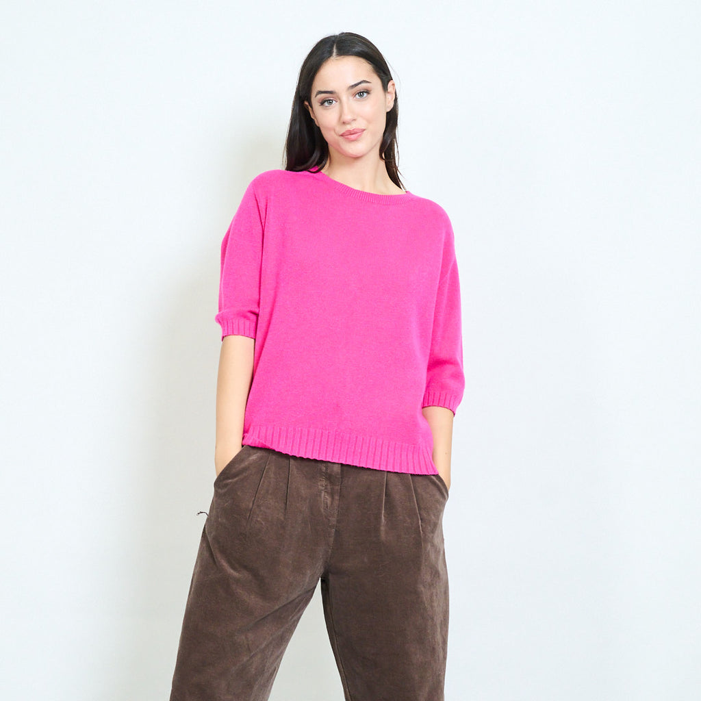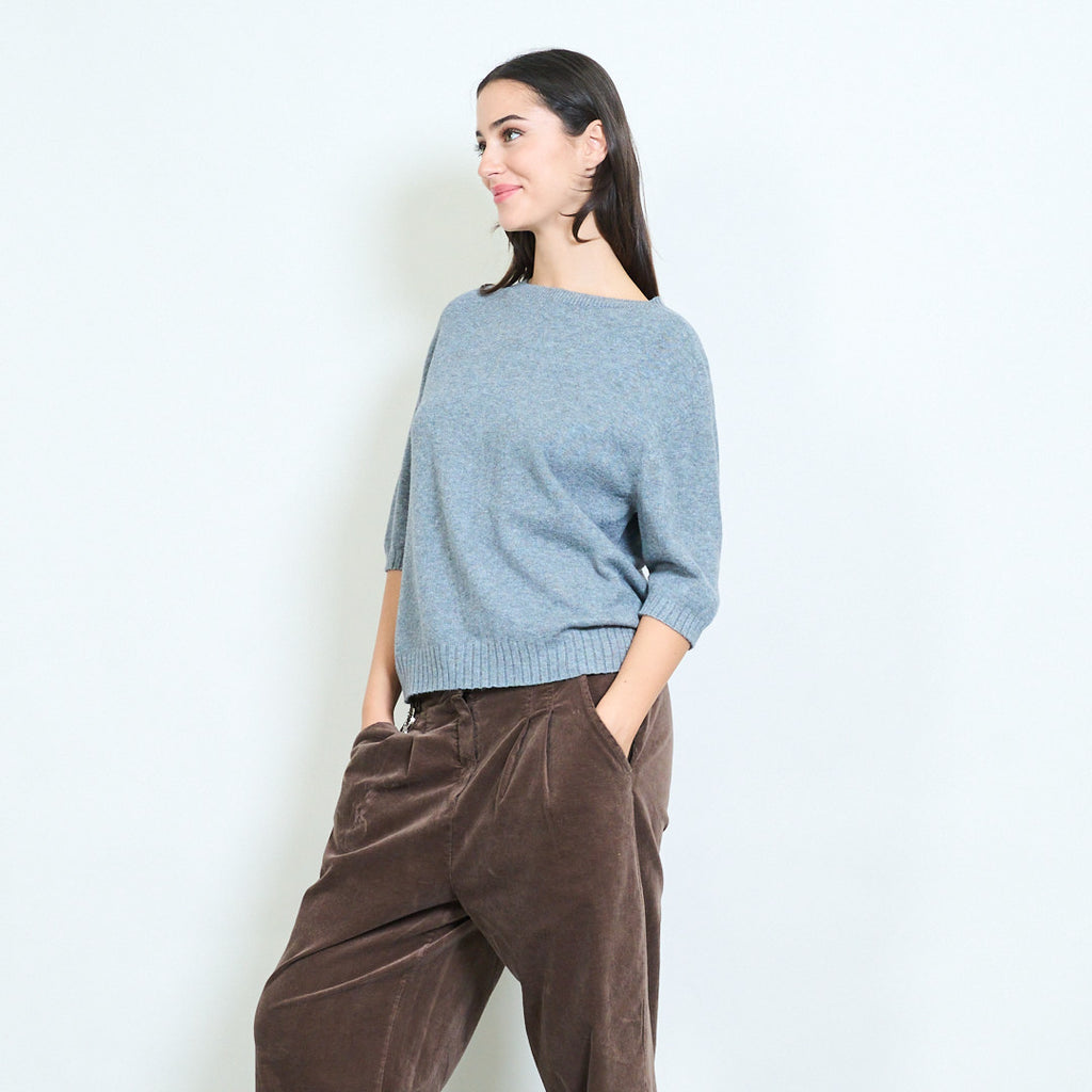 - Klasyczna dzianina z okrągłym dekoltem i nowoczesną sylwetką z półrękawem