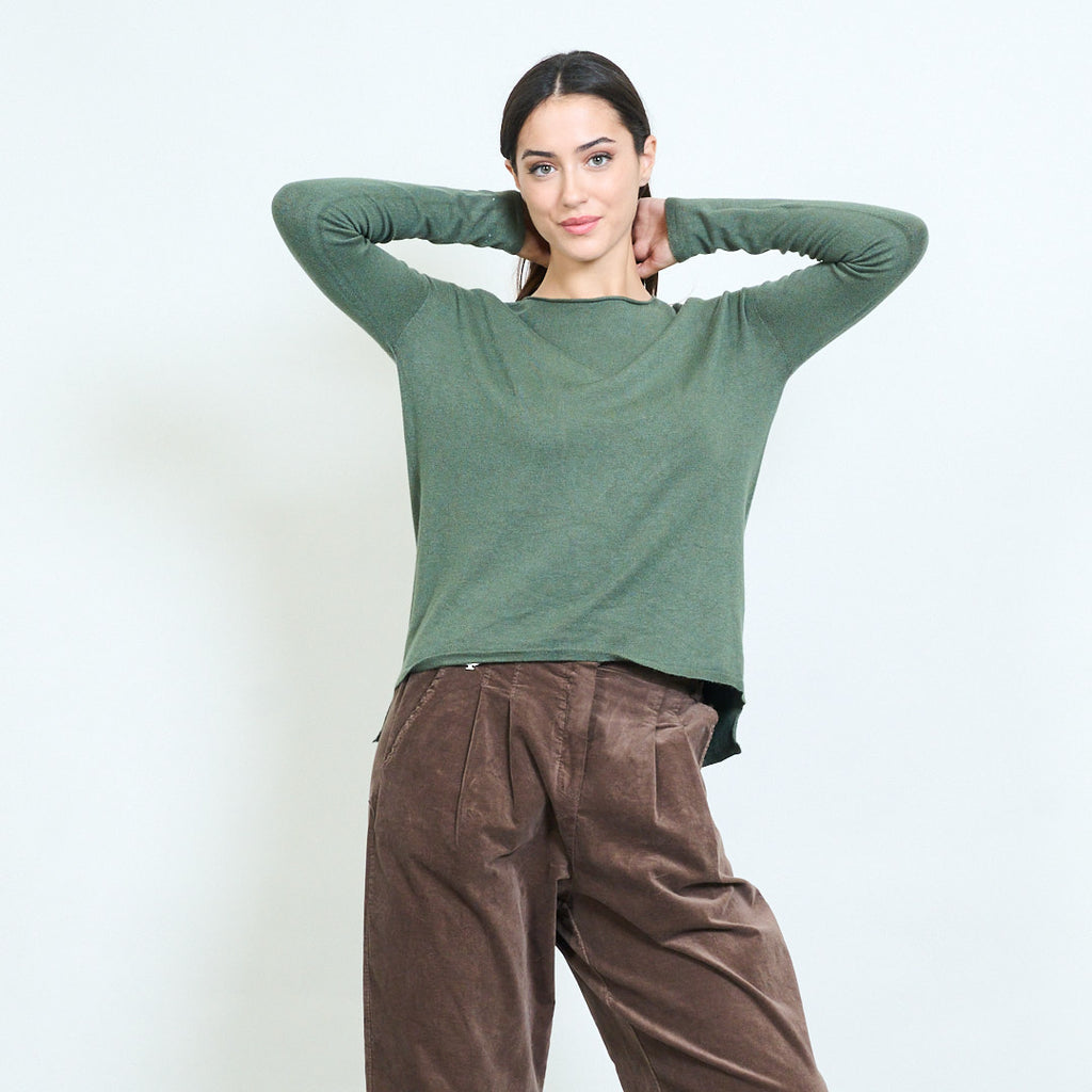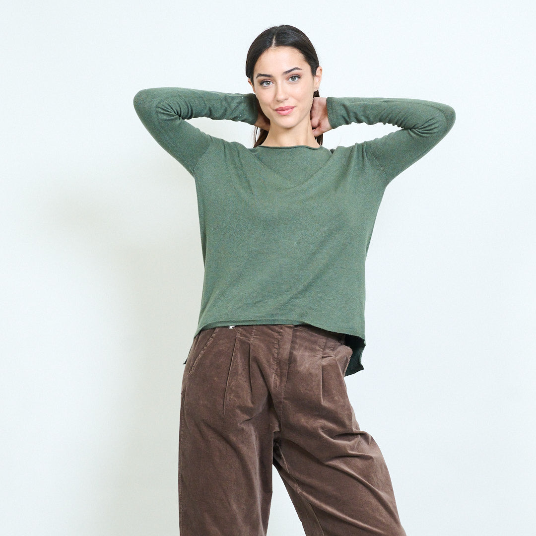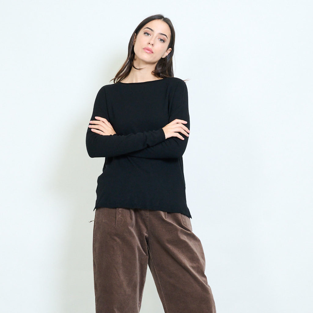 • Klasyczny okrągły dekolt tworzący czystą, wyrafinowaną sylwetkę