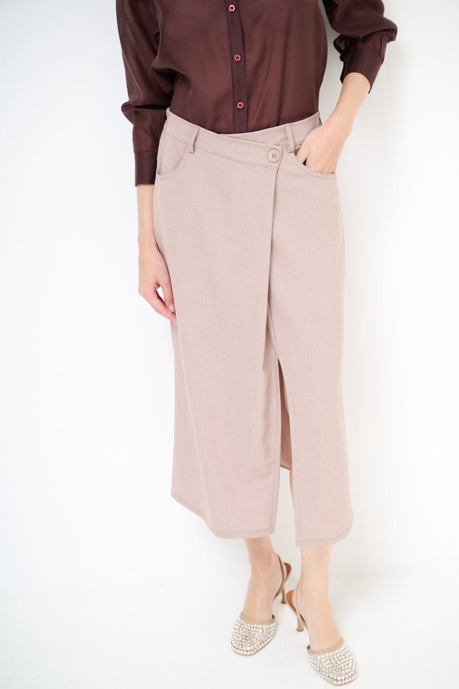 Asymetryczna spódnica midi z przednią szczeliną hurtową