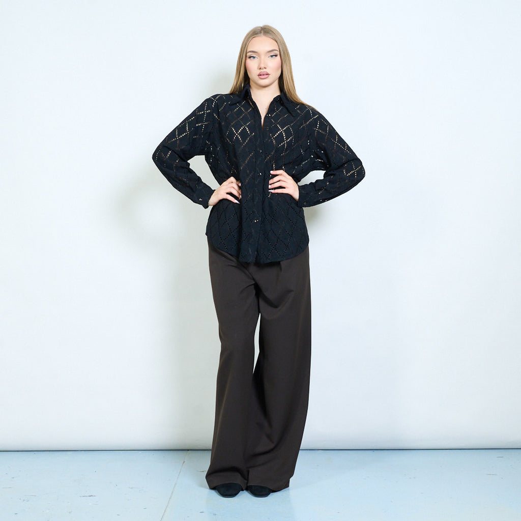 - Zaprojektowany z wyrafinowanym plisowanym przodem, który podnosi uporządkowaną sylwetkę