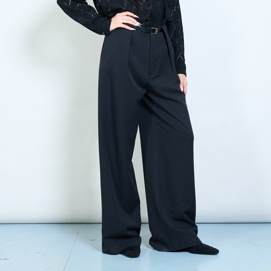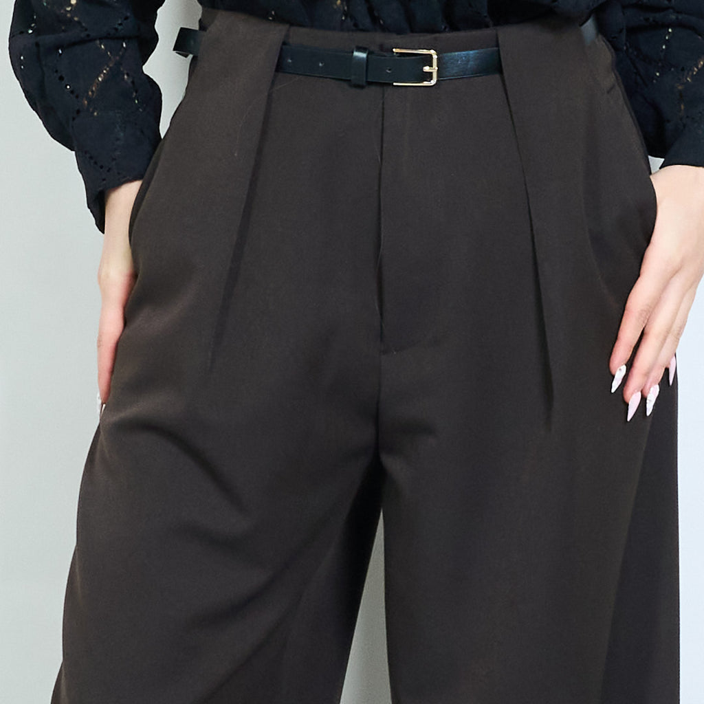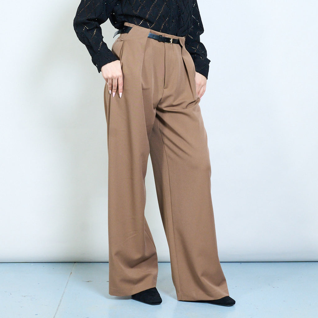 Sprzedam hurtowo plisowane, dopasowane, minimalistyczne spodnie z wysokim stanem i akcentami paska