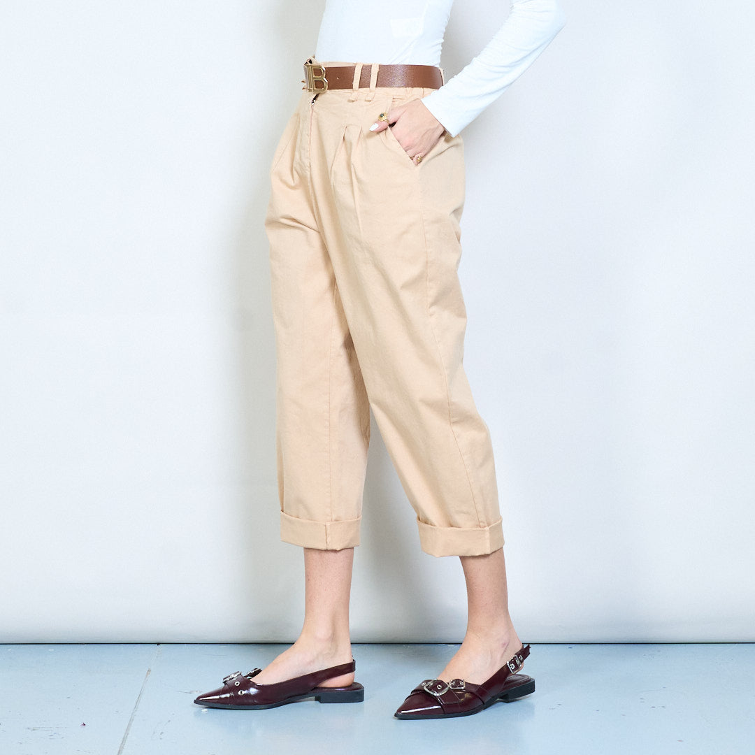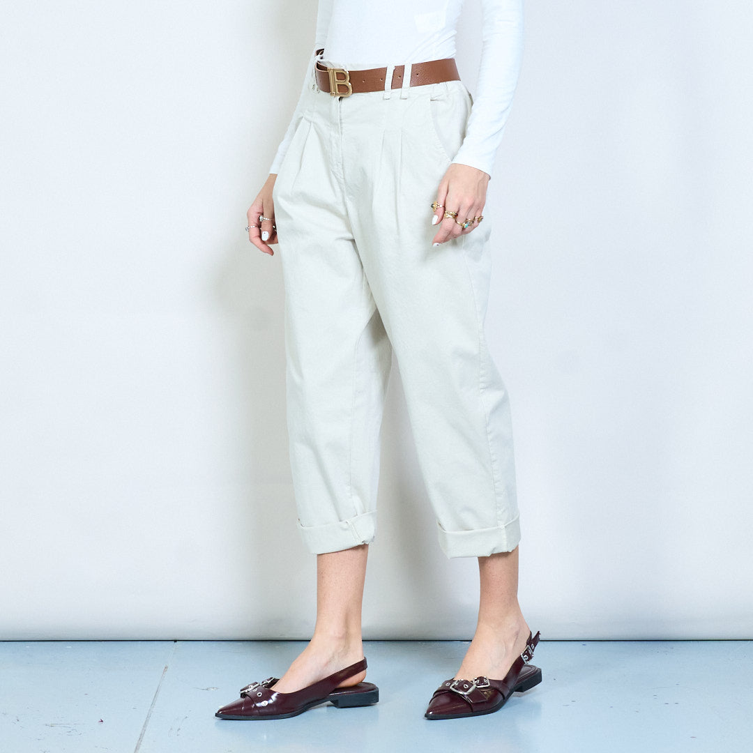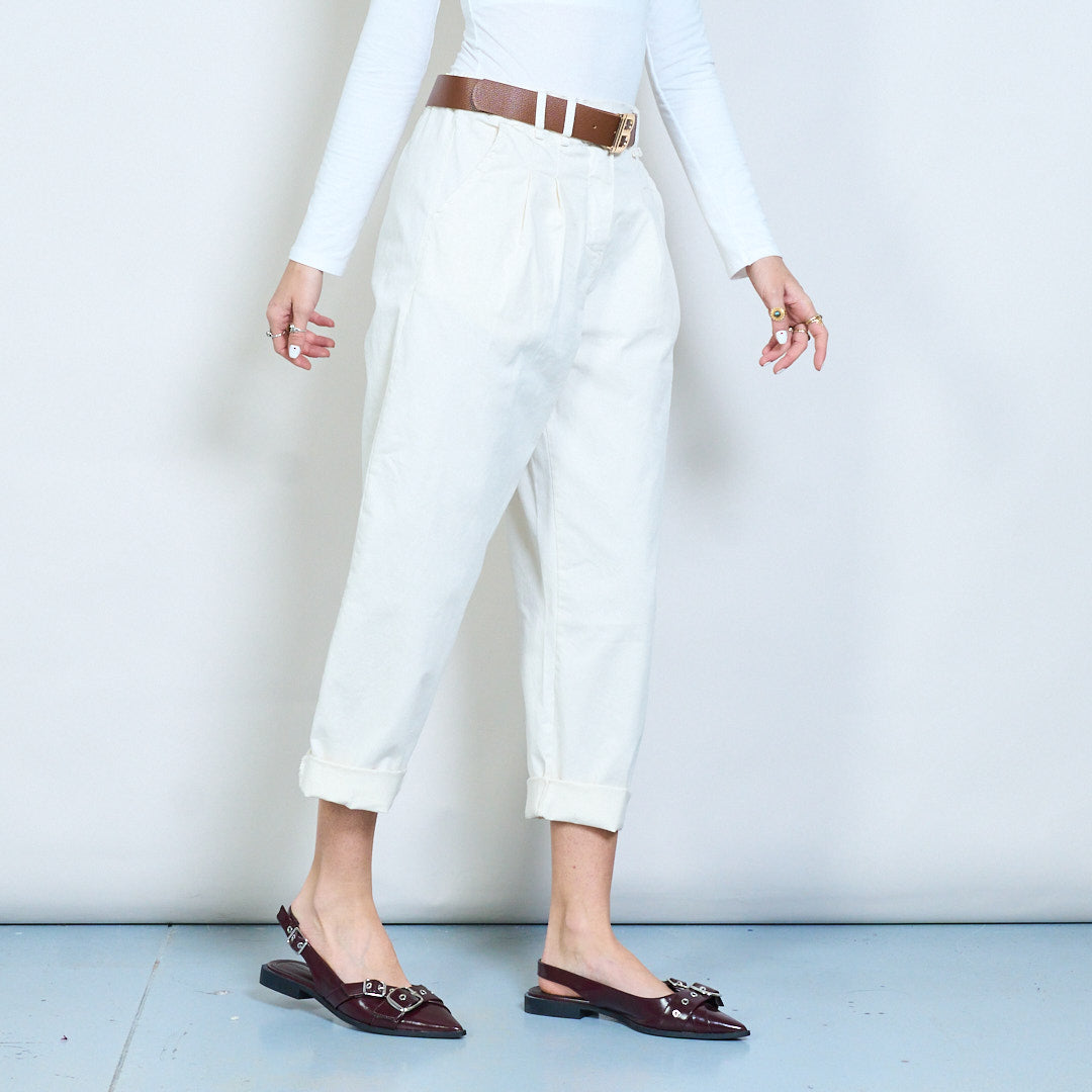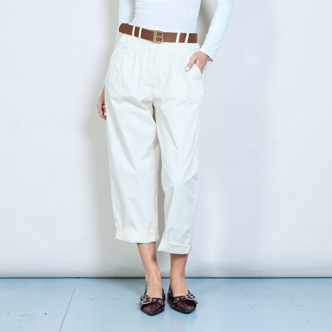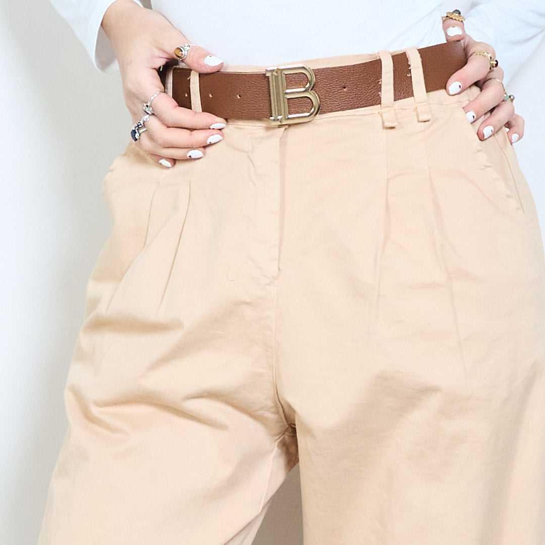 Sprzedam hurtowo plisowane spodnie z prostymi nogawkami i wyrazistym paskiem z klamrą
