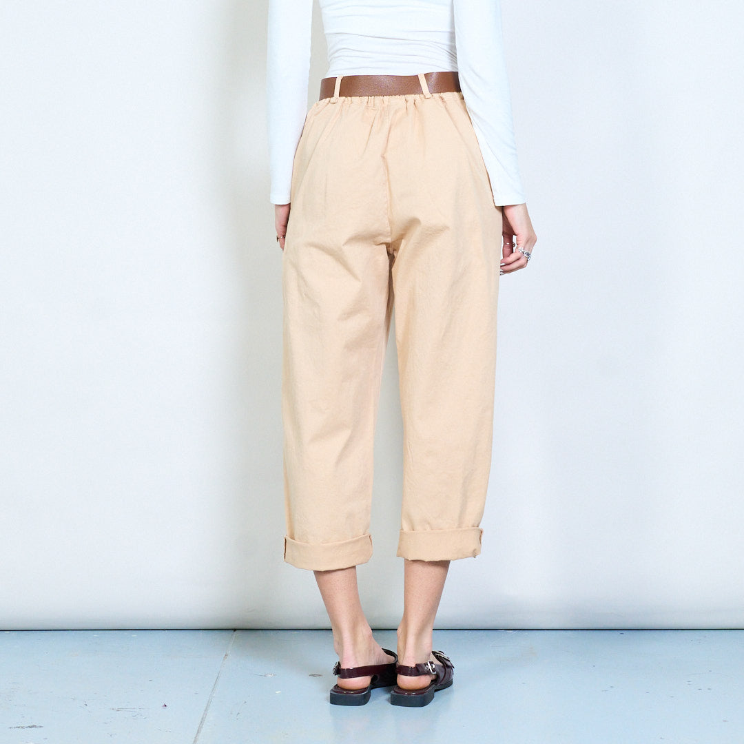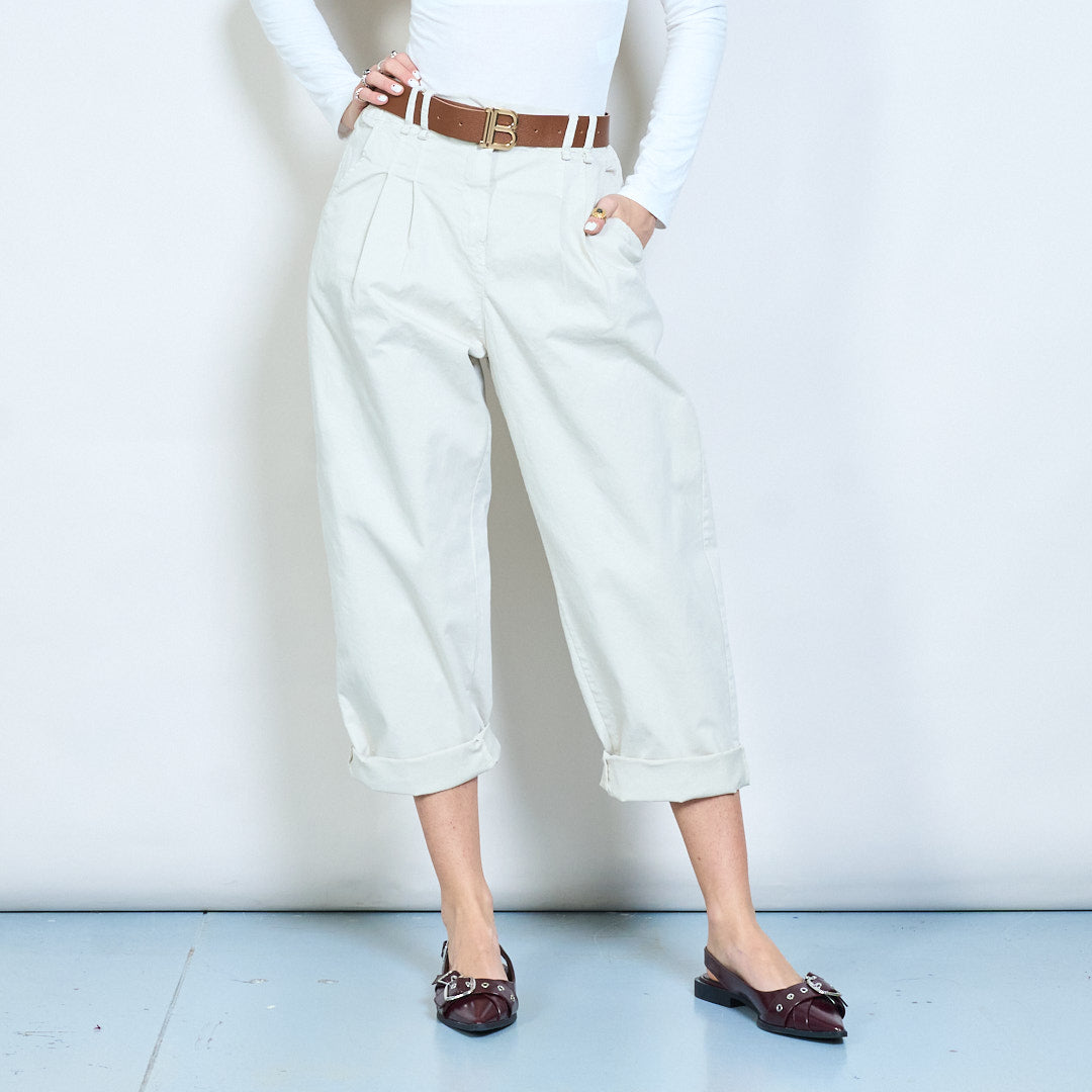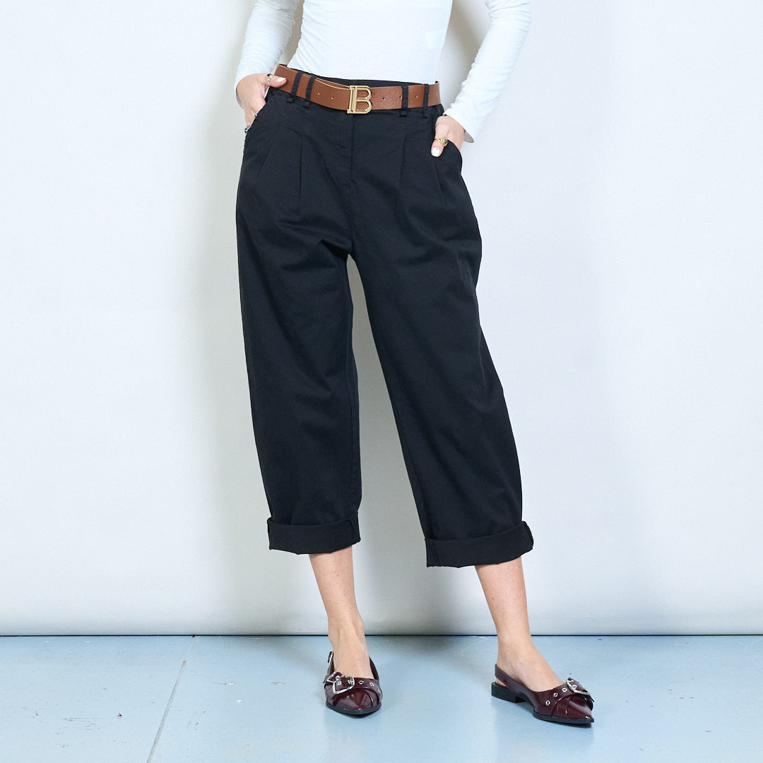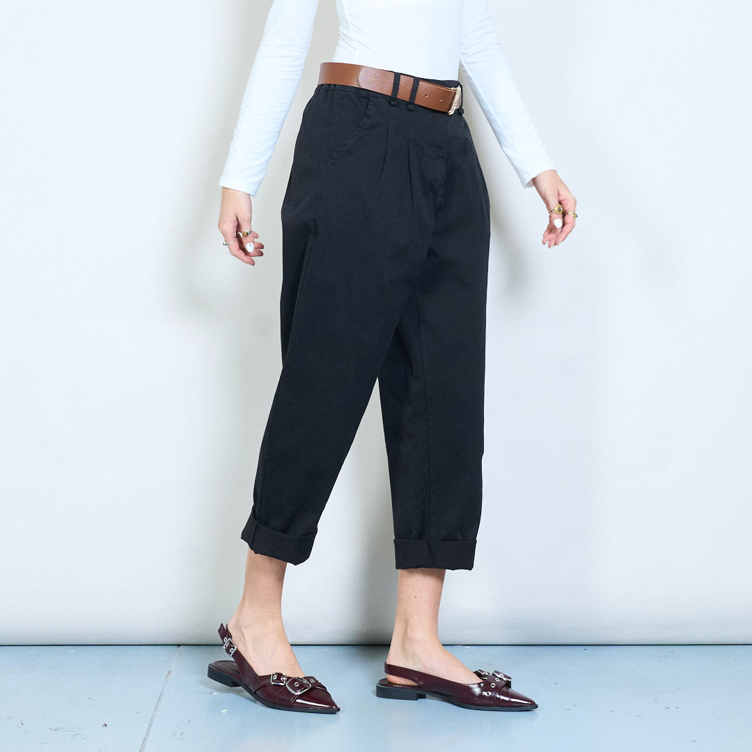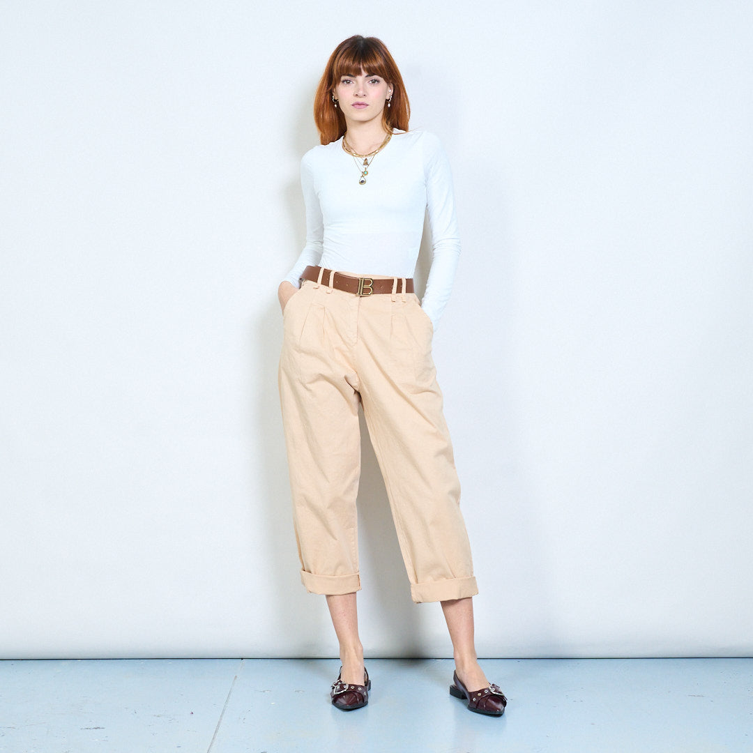 Sprzedam hurtowo plisowane spodnie z prostymi nogawkami i wyrazistym paskiem z klamrą