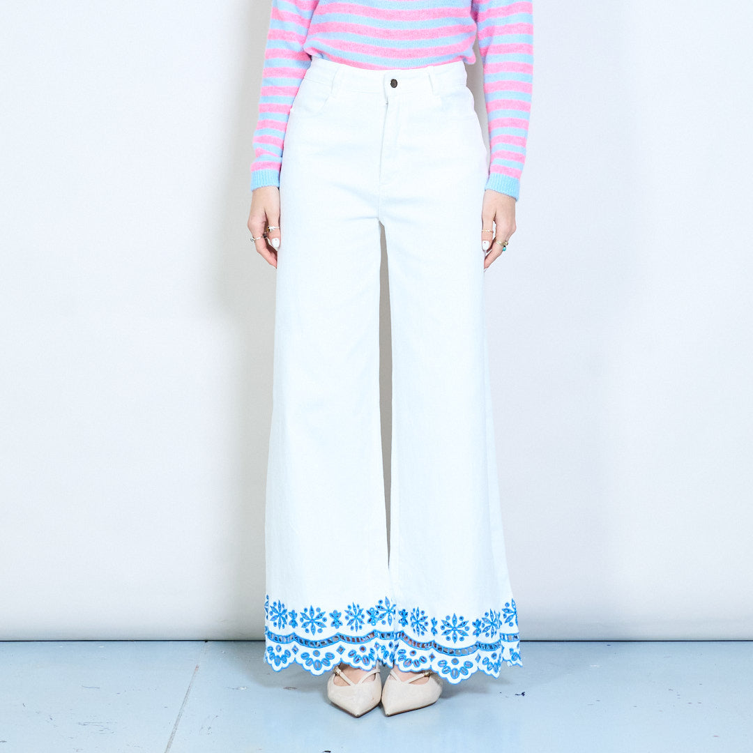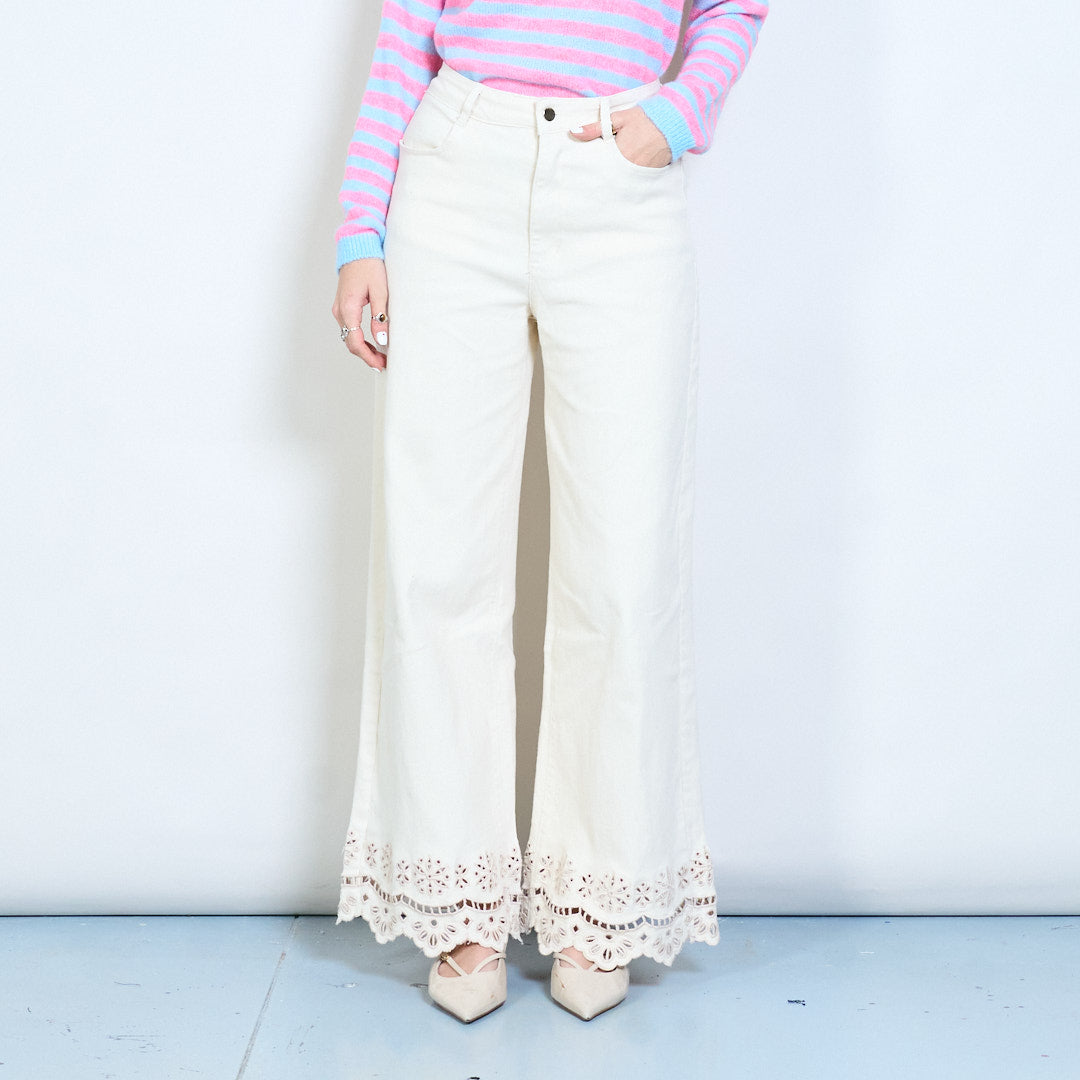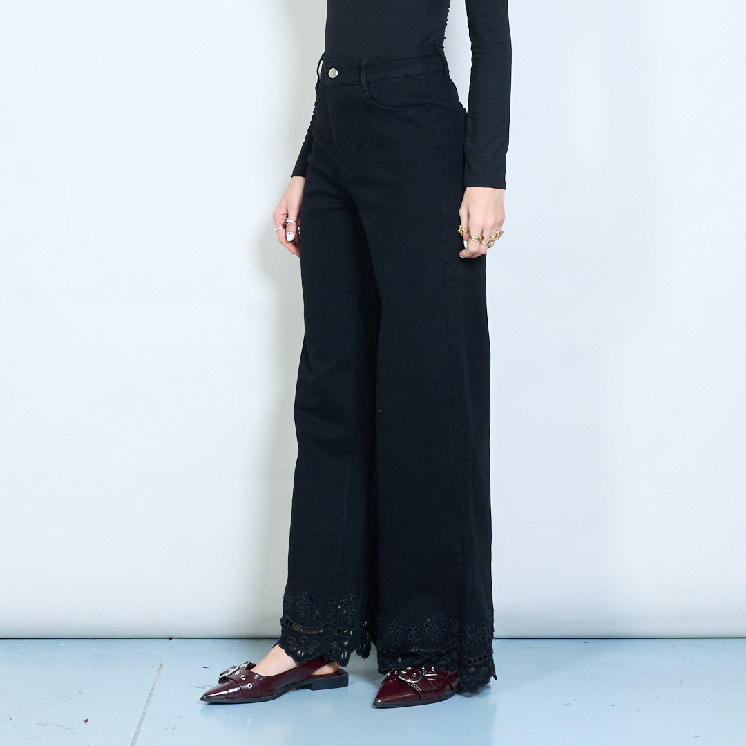 Sprzedam hurtowo spodnie z prostymi nogawkami i ozdobnym obszyciem