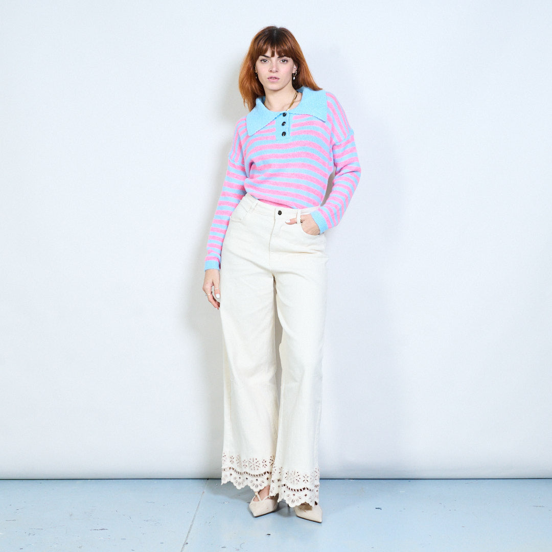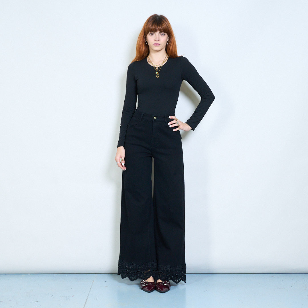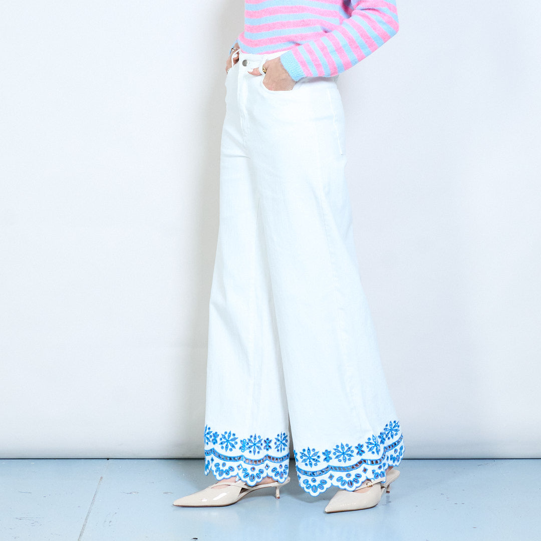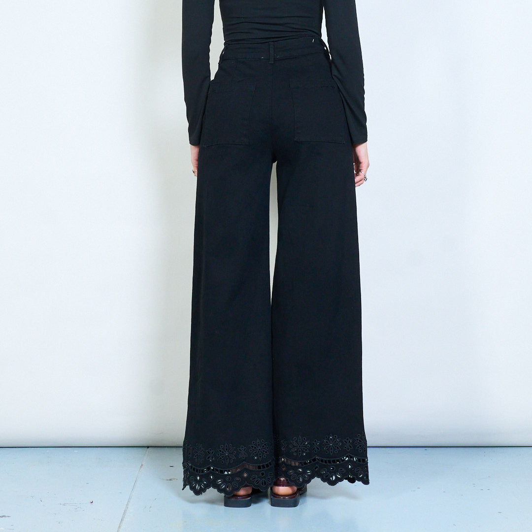 Sprzedam hurtowo spodnie z prostymi nogawkami i ozdobnym obszyciem