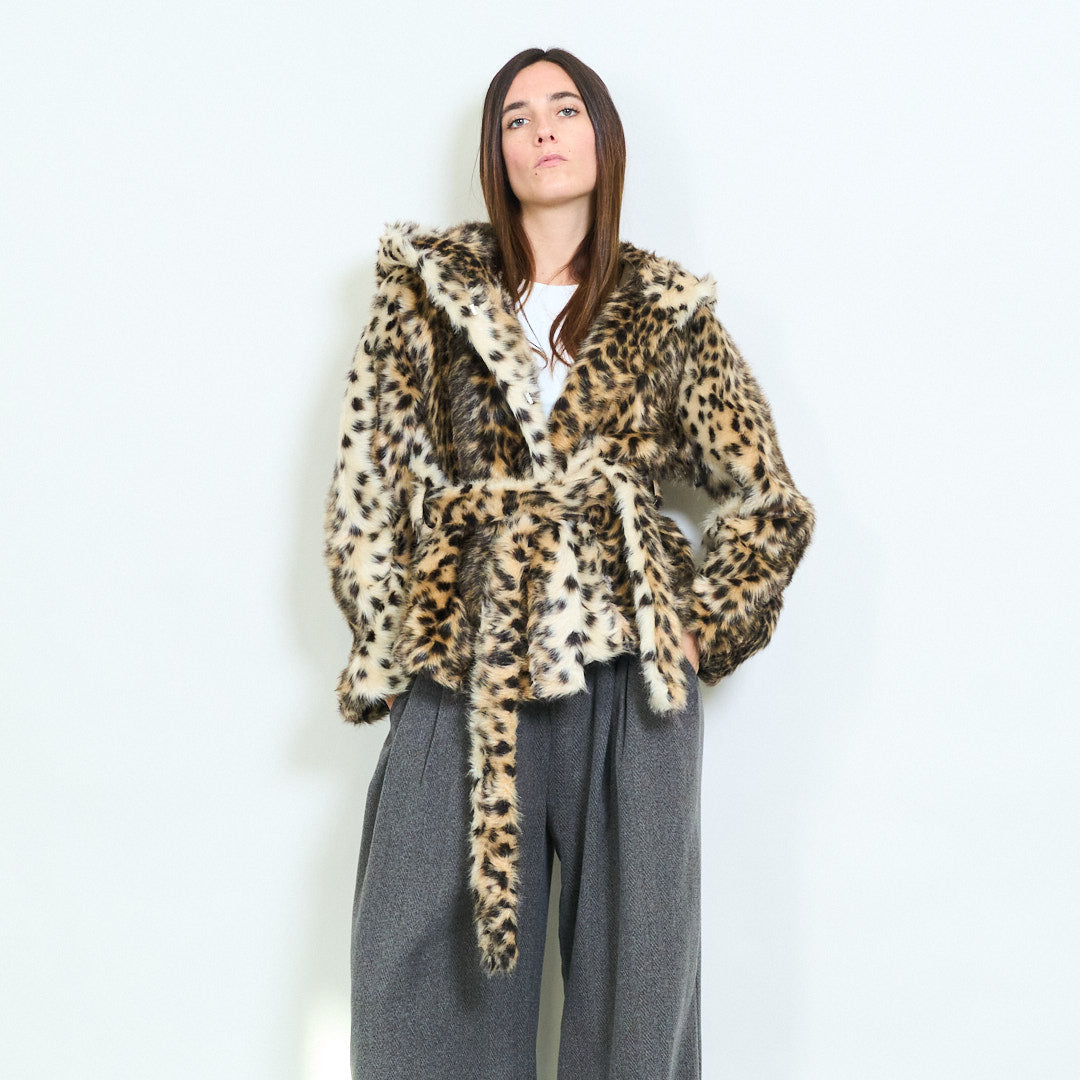 Hurtownia płaszcza z kapturem ze sztucznego futra w panterkę