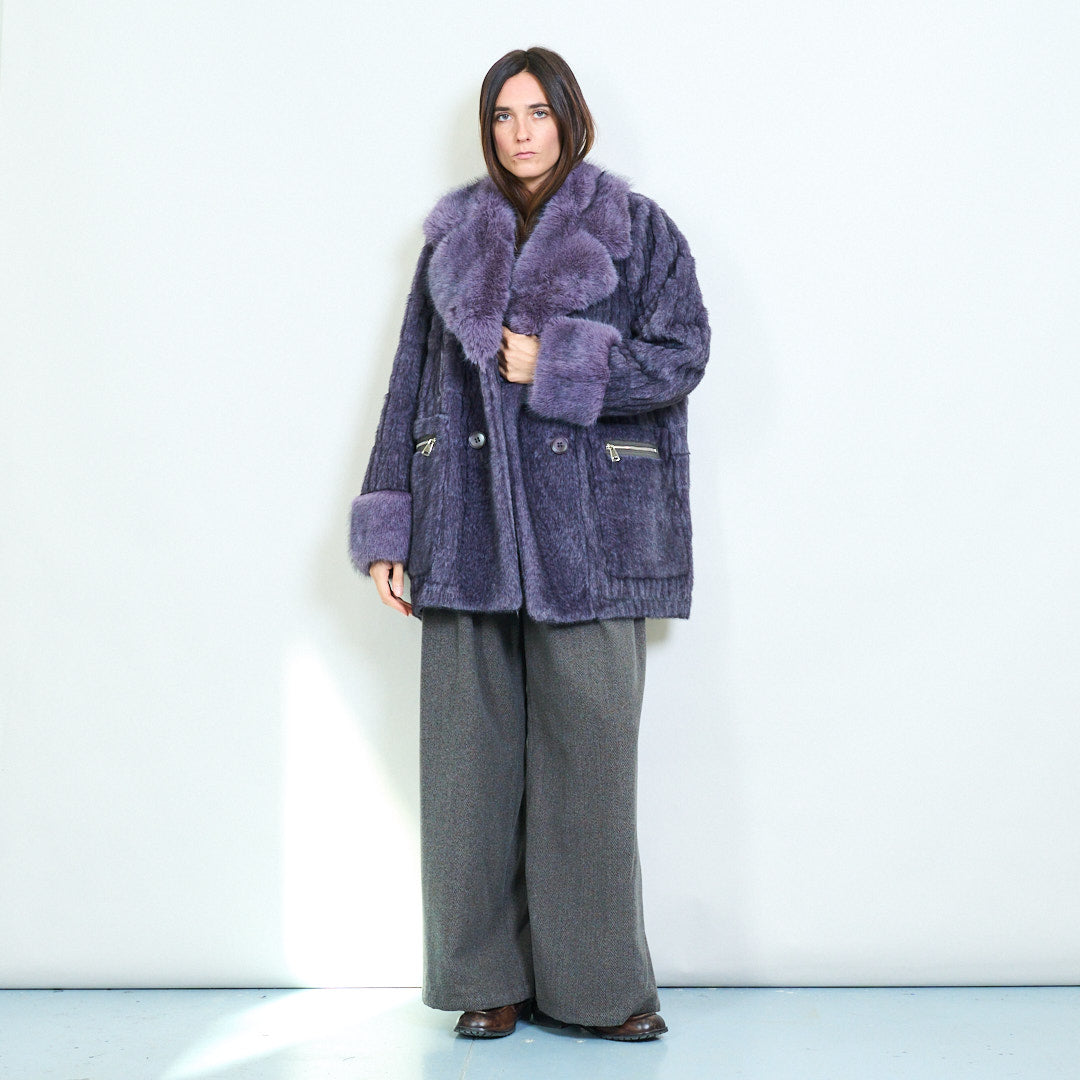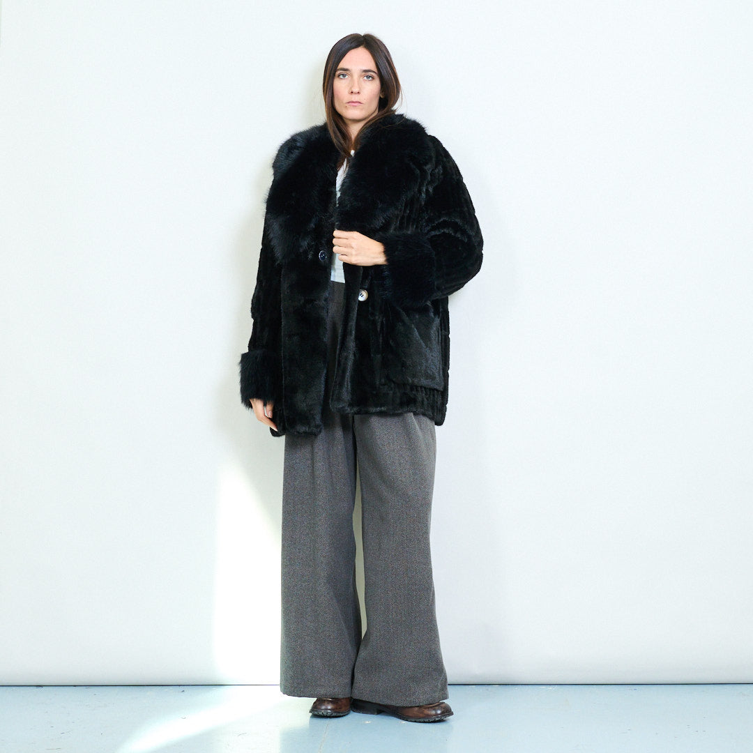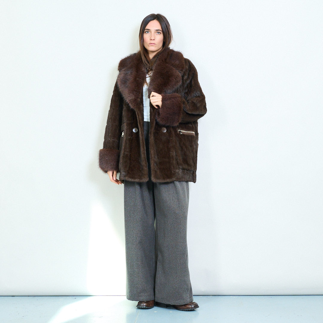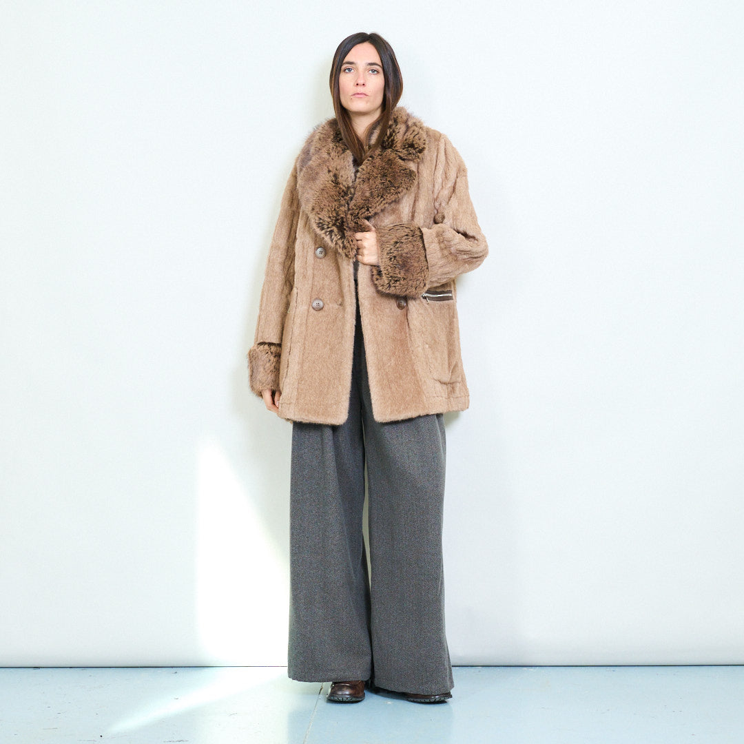 Hurtownia pluszowego, oversize'owego, teksturowanego, dwurzędowego płaszcza ze sztucznego futra