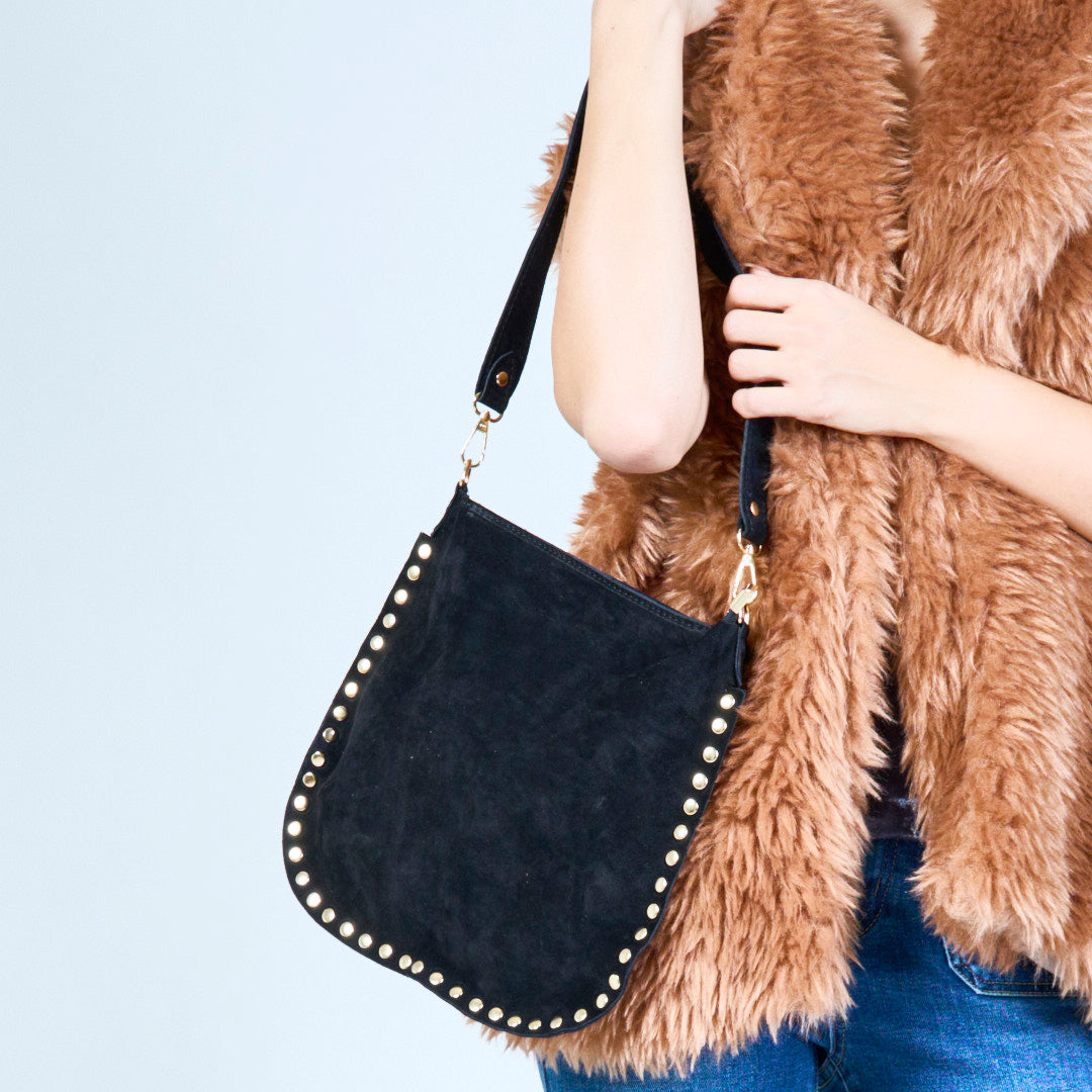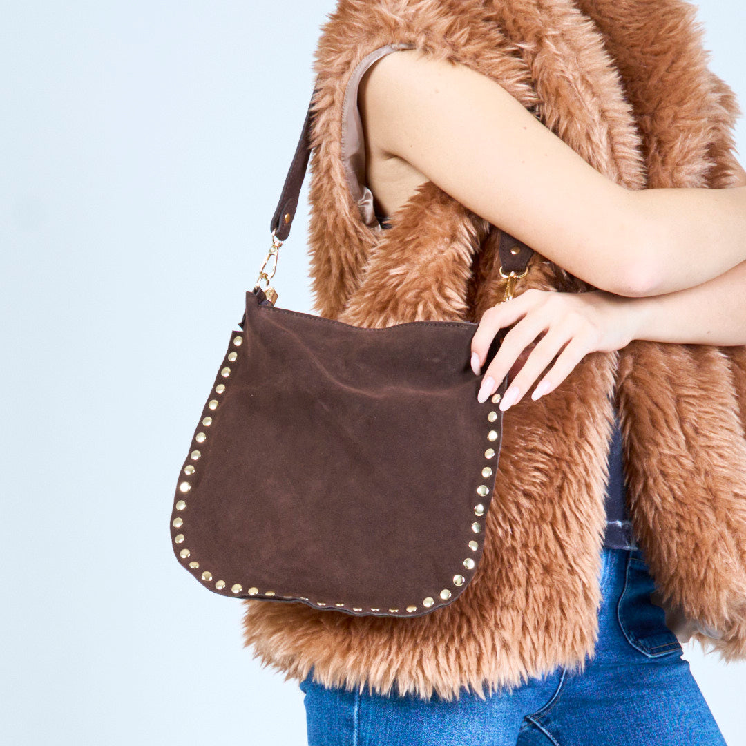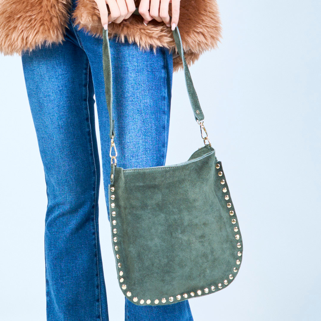 - Klasyczne korpus w kratę z skórzanym akcentem klapy