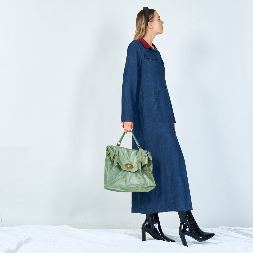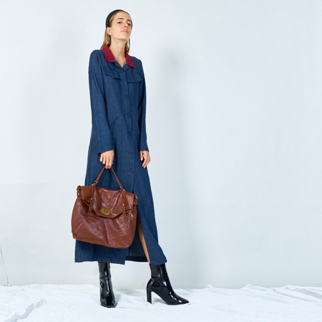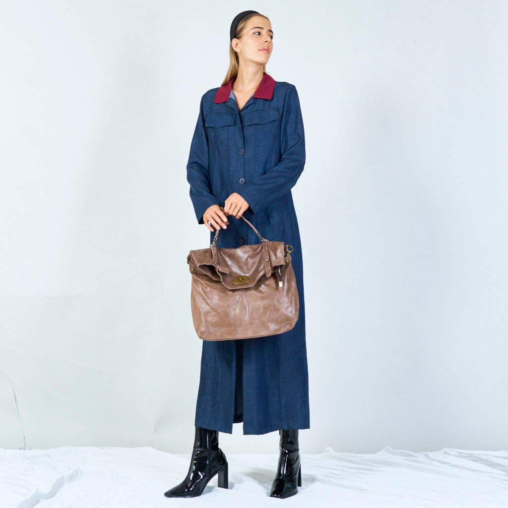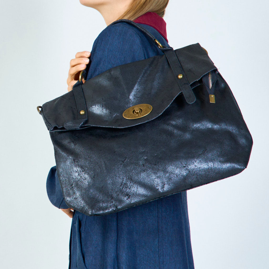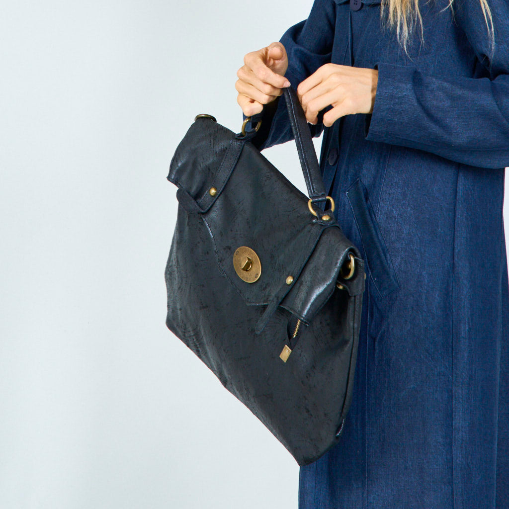 W trudnej skórzanej torbie na ramię z mosiężnymi akcentami hurtowymi