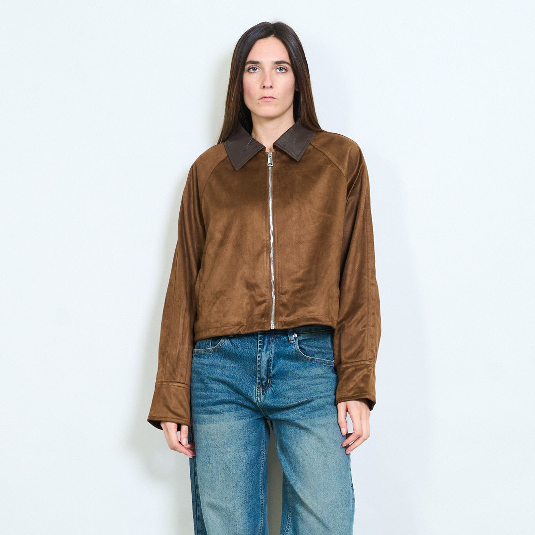 Hurtownia dwukolorowej kurtki z kołnierzem i zamkiem z przodu z efektem zamszu