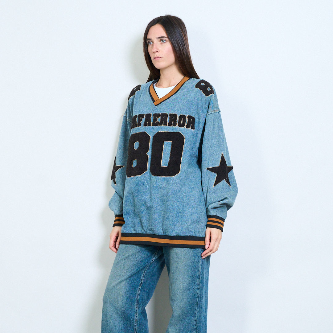 Hurtownia dżinsowej bluzy oversize z grafiką w gwiazdki Varsity